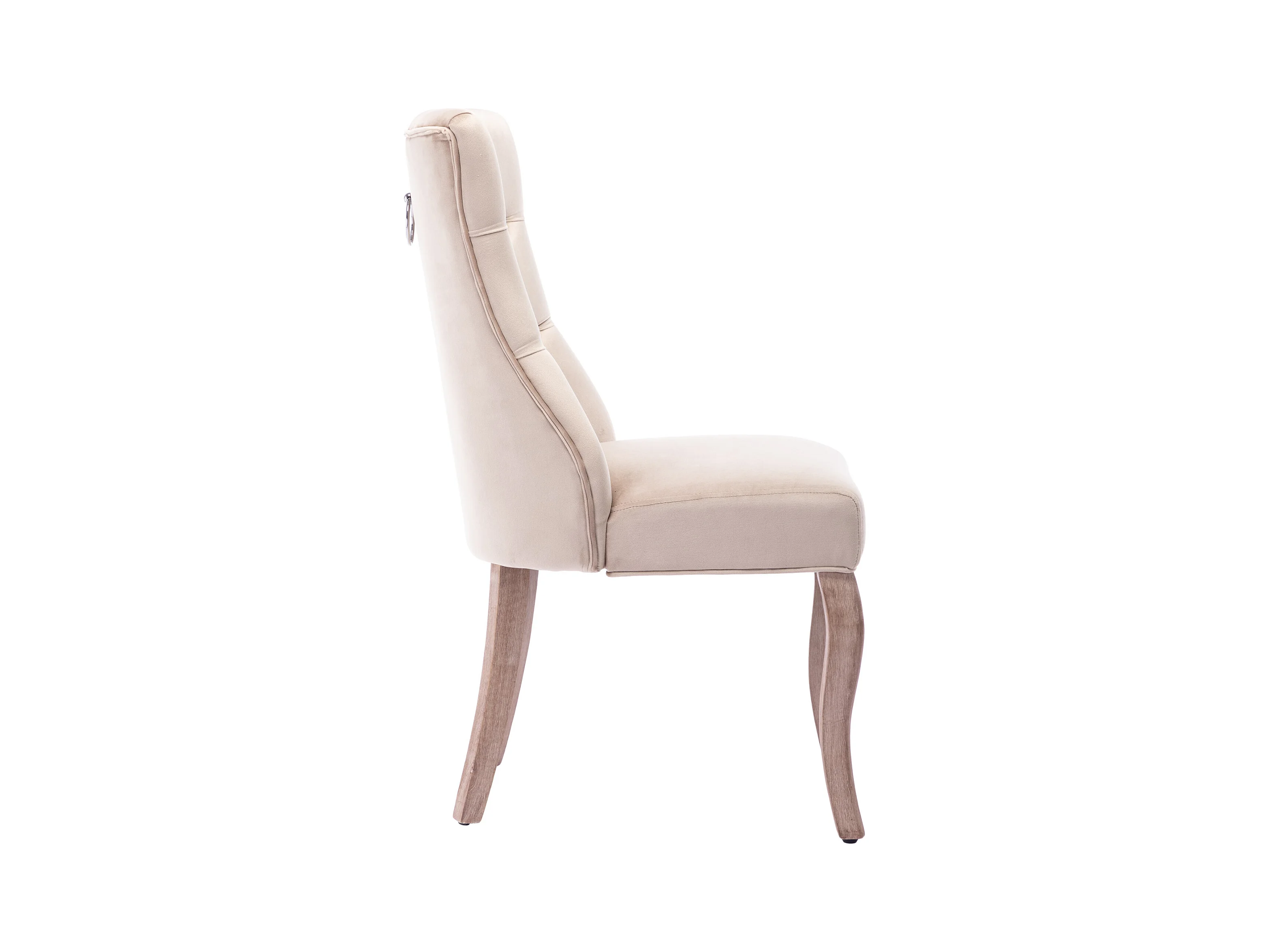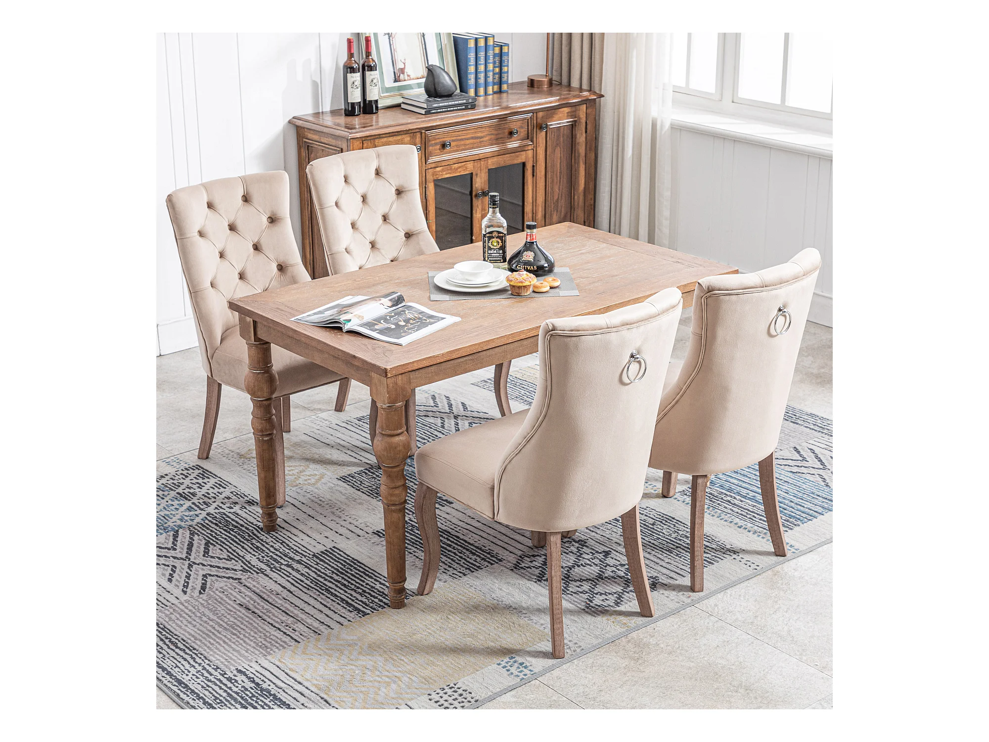 Lot de 4 chaises de salle à manger en velours - dossier haut et pieds en bois - Beige