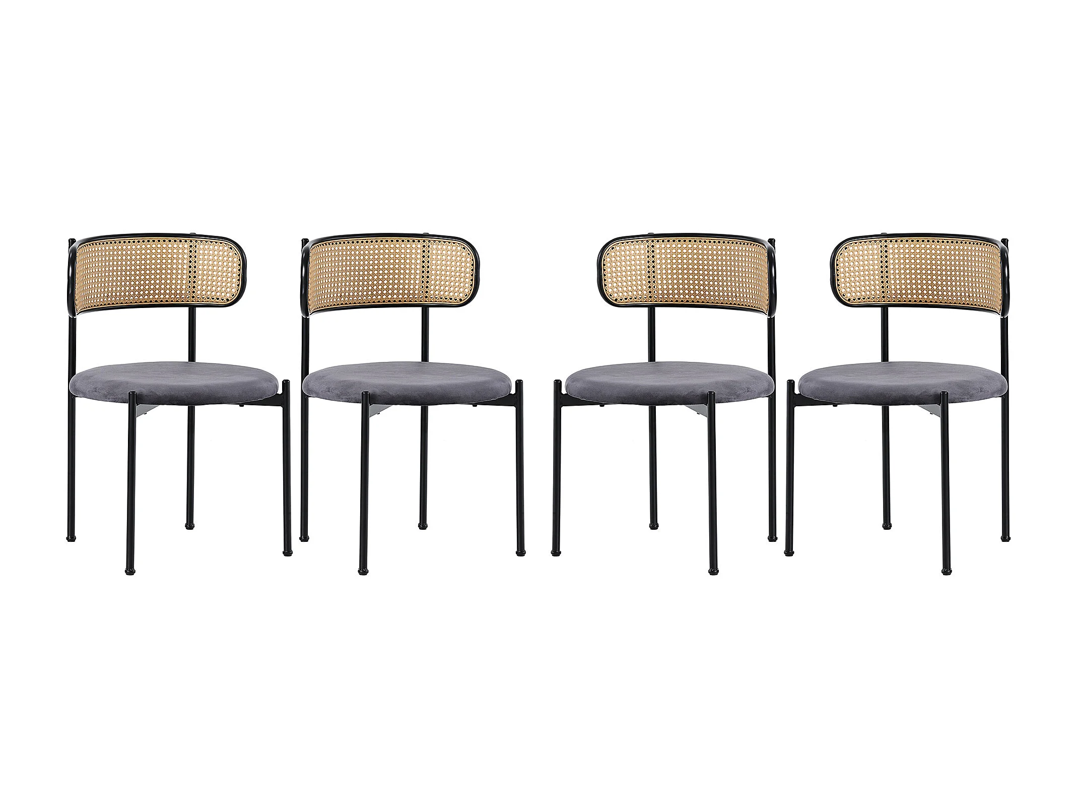 Lot de 4 Chaises de salle à manger en Velours et Rotin avec pieds en Métal - Gris