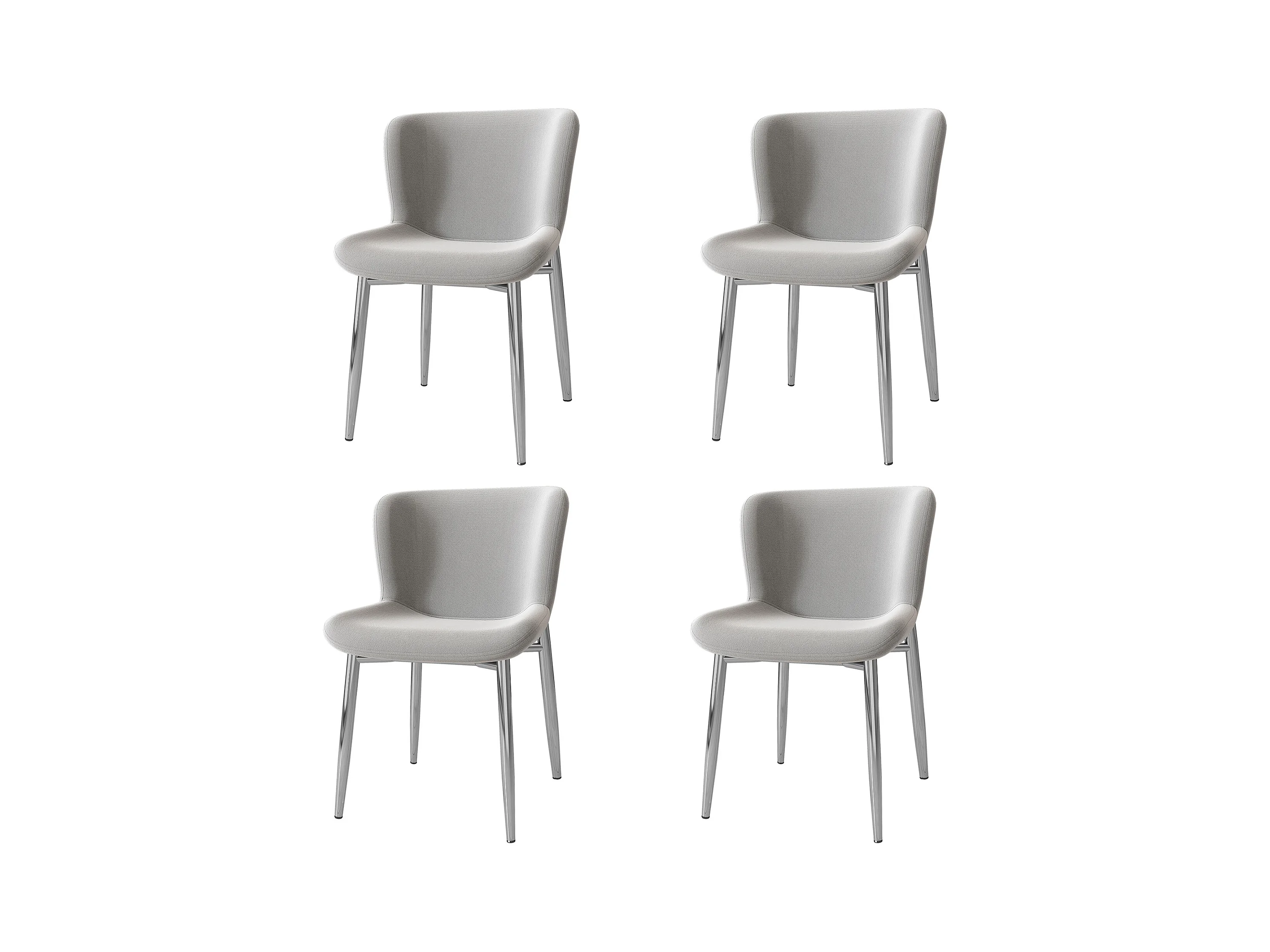 Lot de 4 chaises de salle à manger en velours gris, dossier rembourré et pieds en métal argenté
