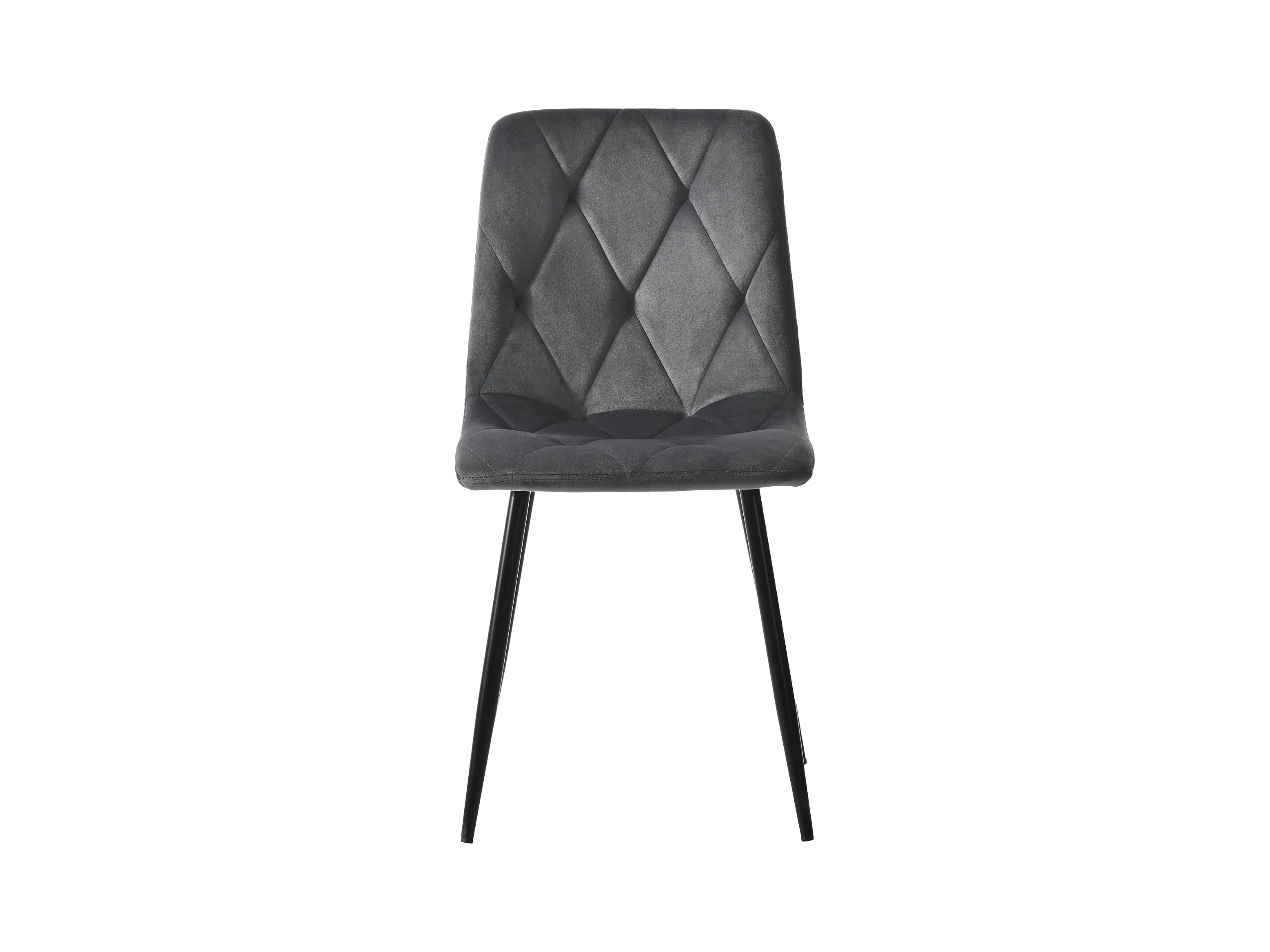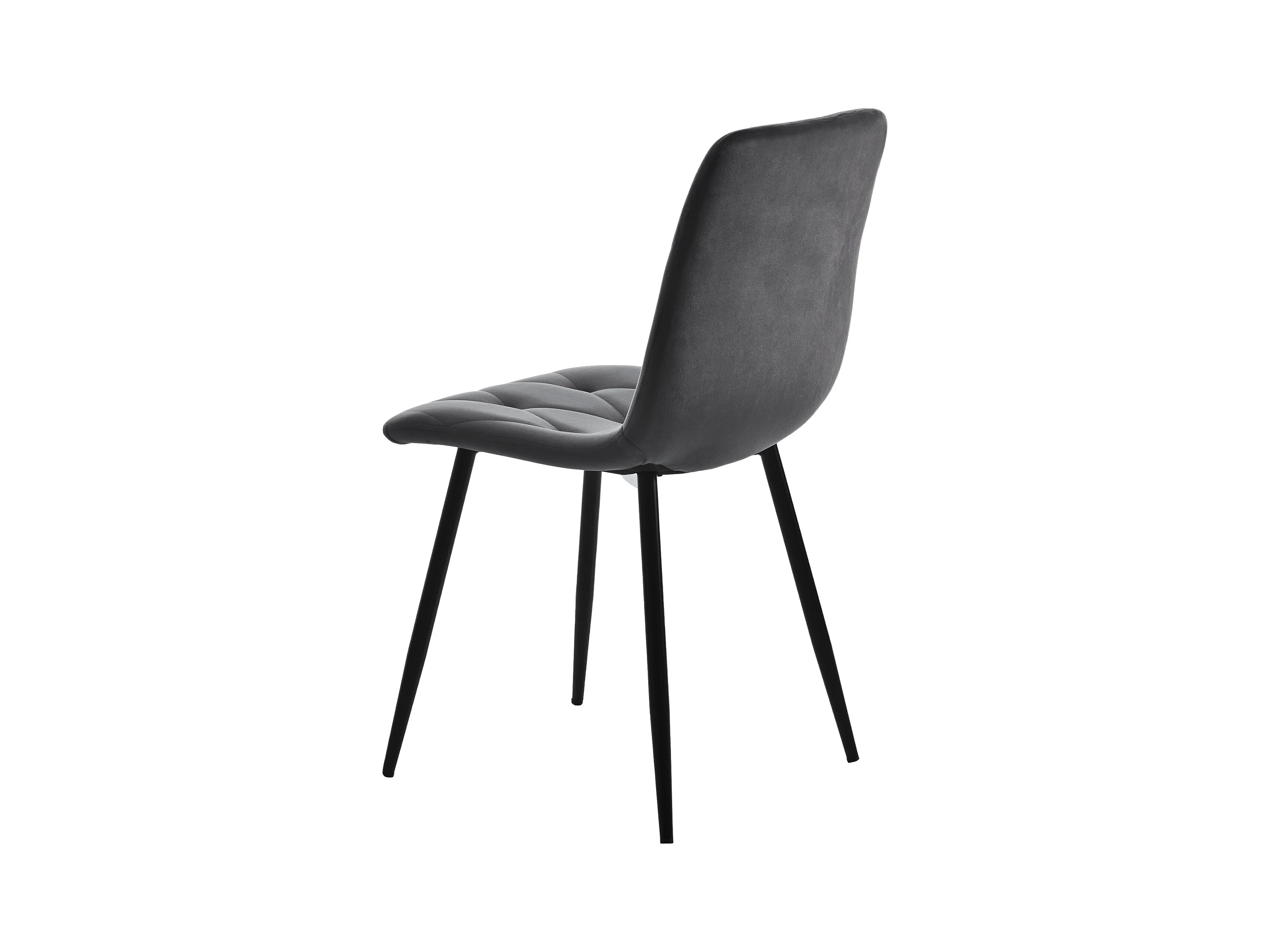 Lot de 4 chaises de salle à manger en velours gris foncé avec dossier rembourré, pieds en métal noir