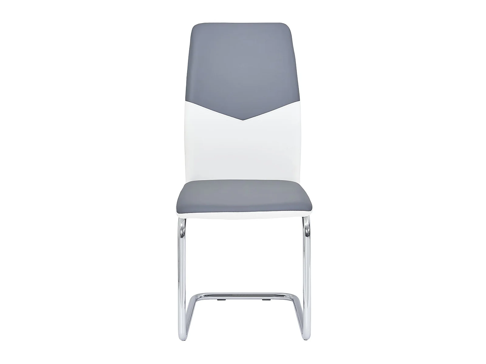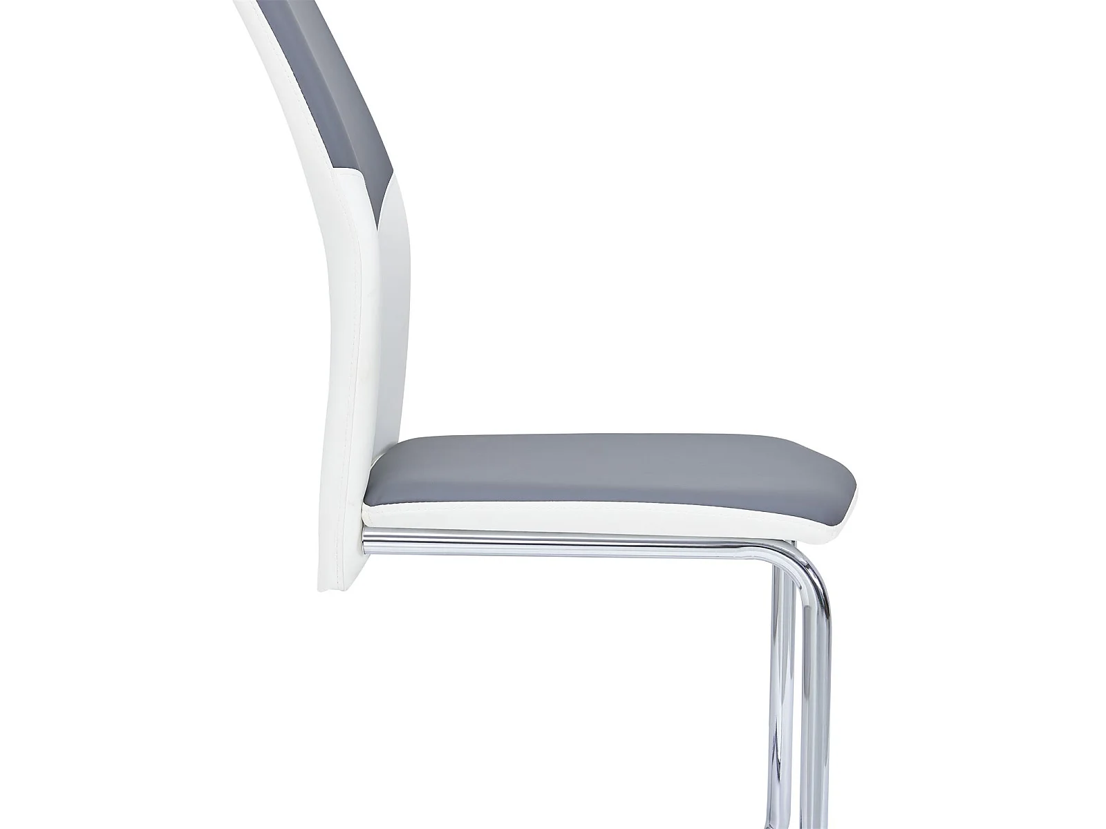 Lot de 4 chaises de salle à manger LEONA piètement chromé revêtement synthétique bicolore blanc et gris