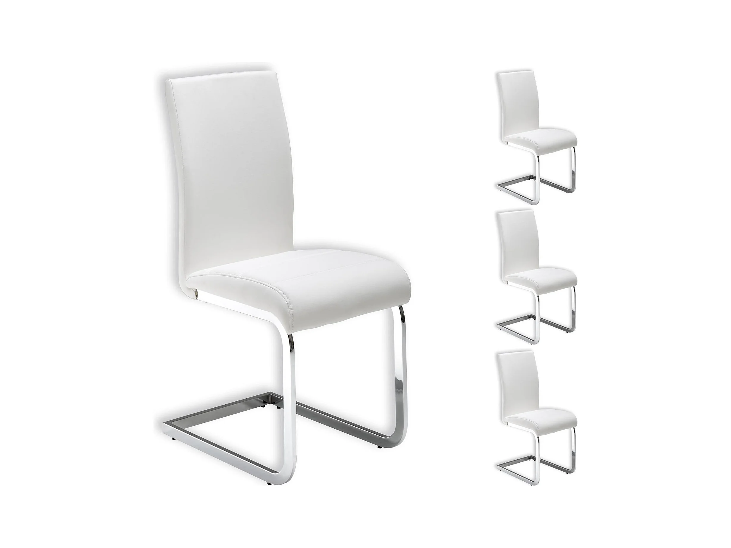 Lot de 4 chaises de salle à manger LETICIA piètement chromé et revêtement synthétique blanc