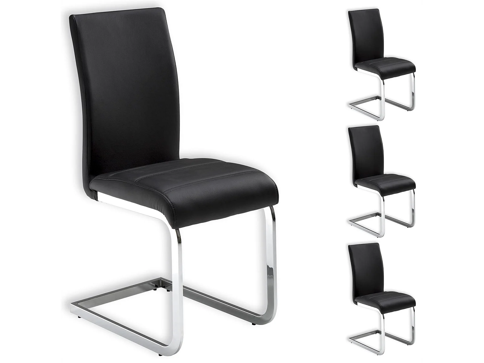 Lot de 4 chaises de salle à manger LETICIA piètement chromé et revêtement synthétique noir
