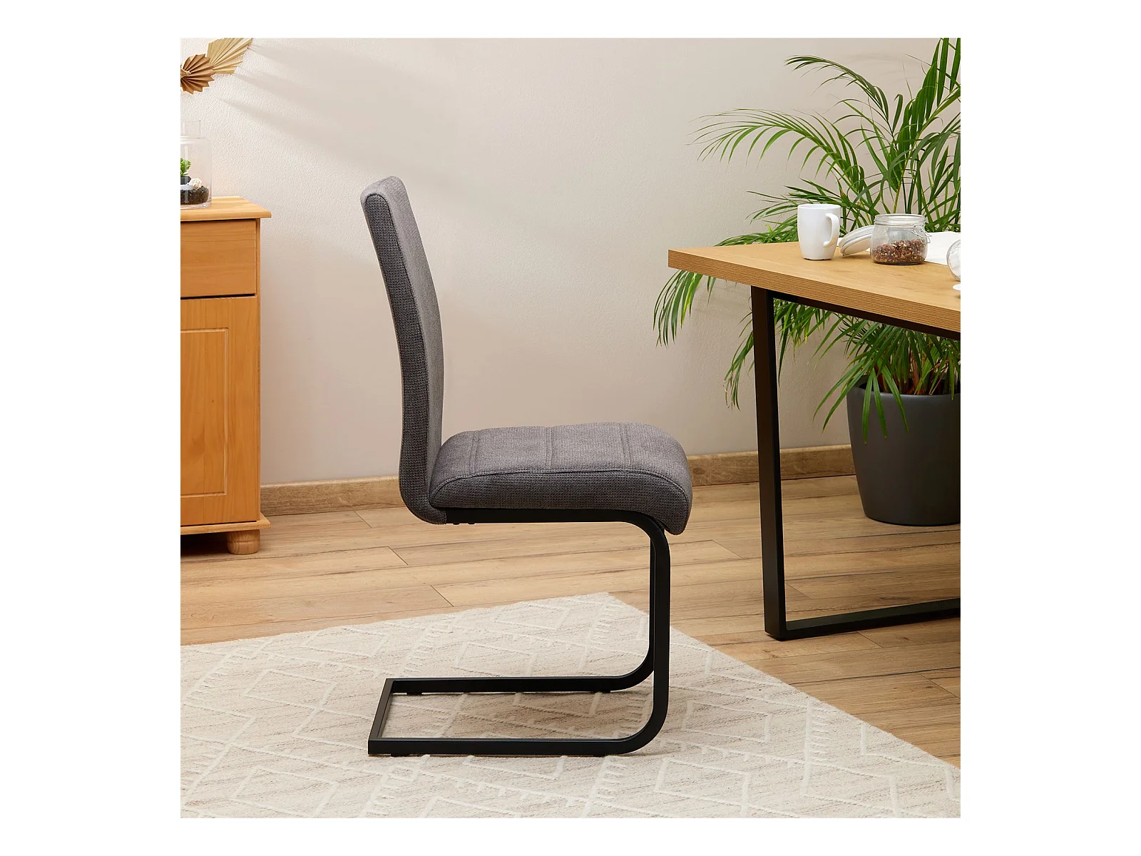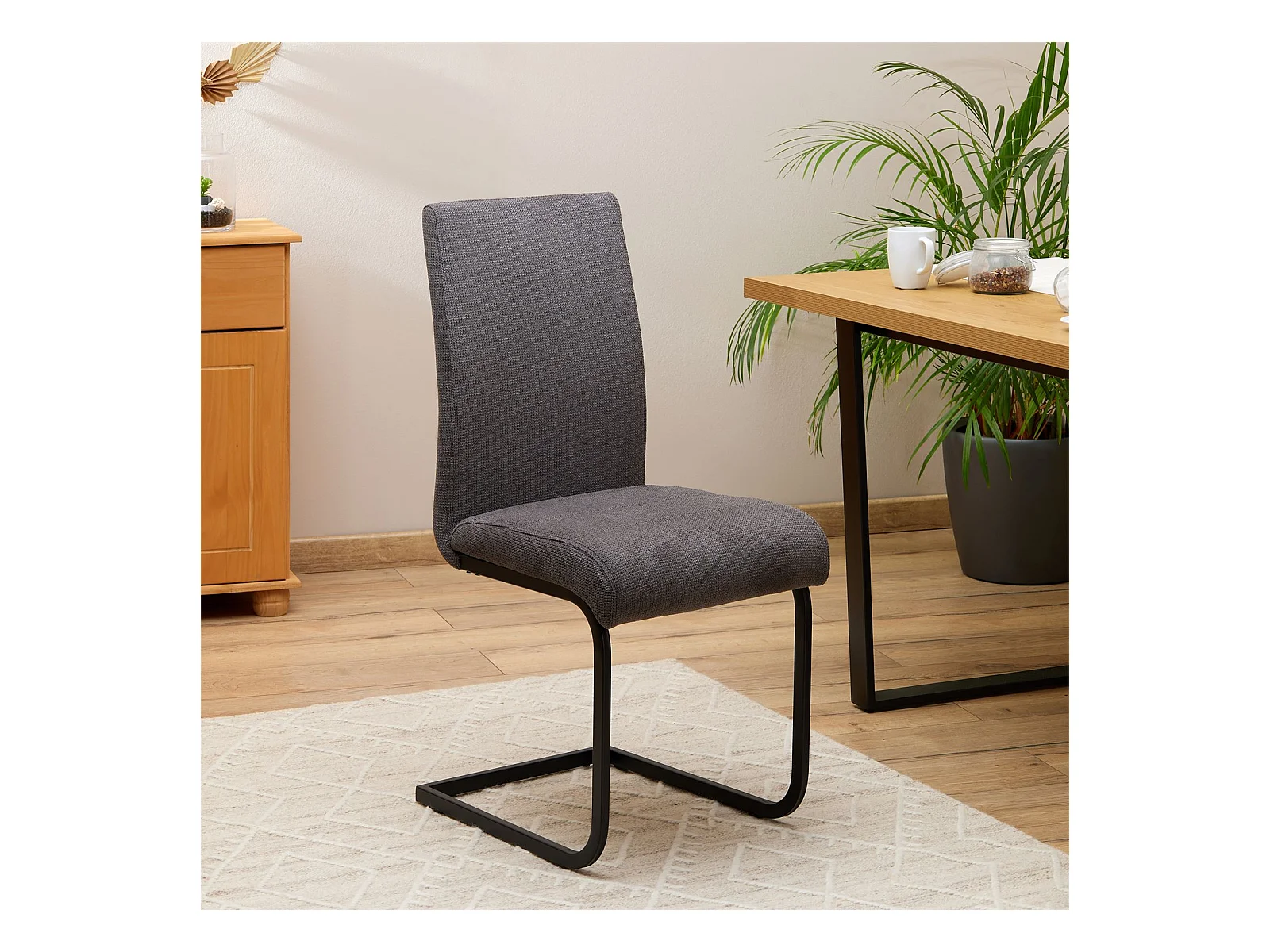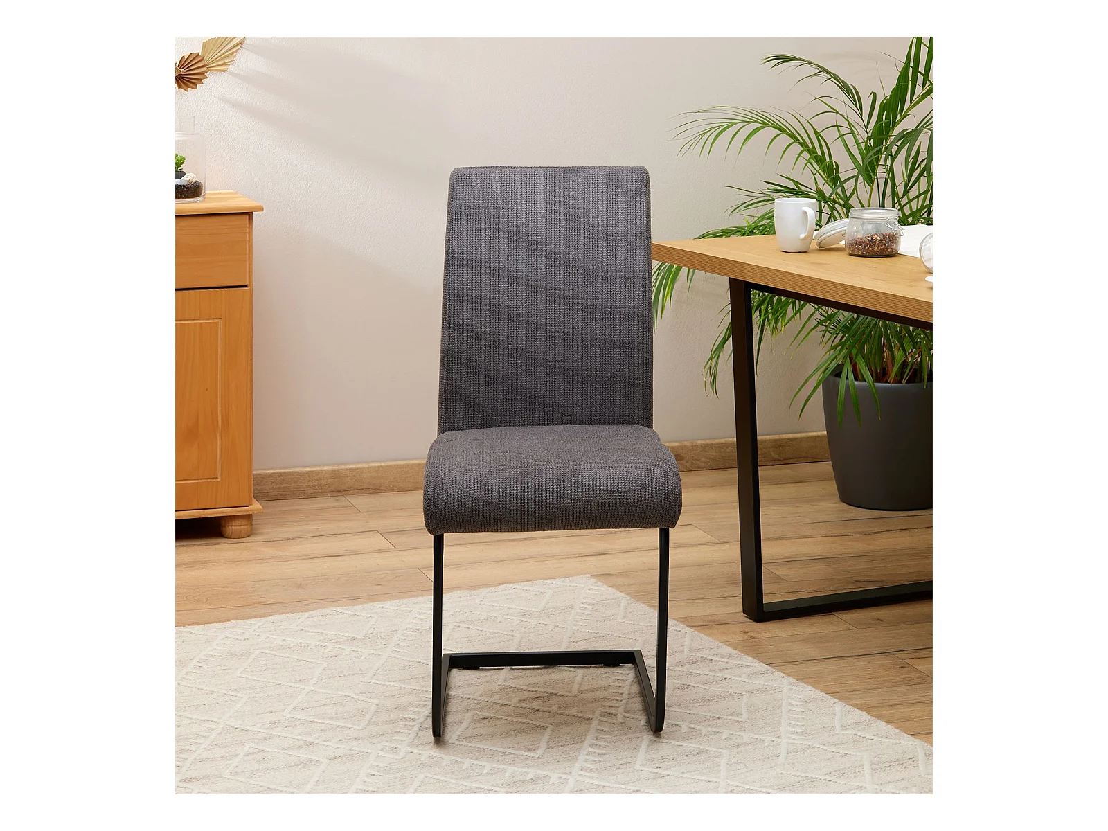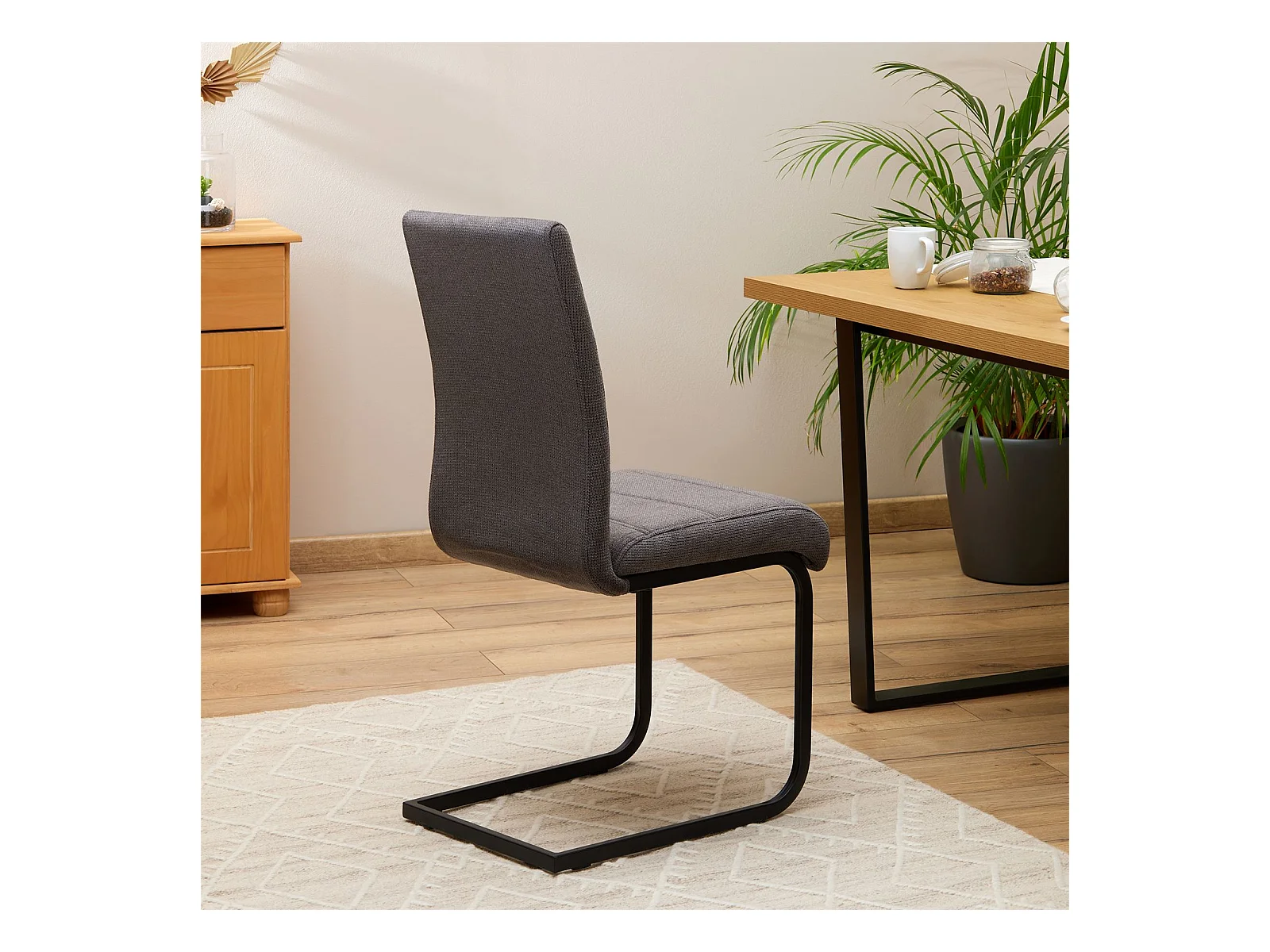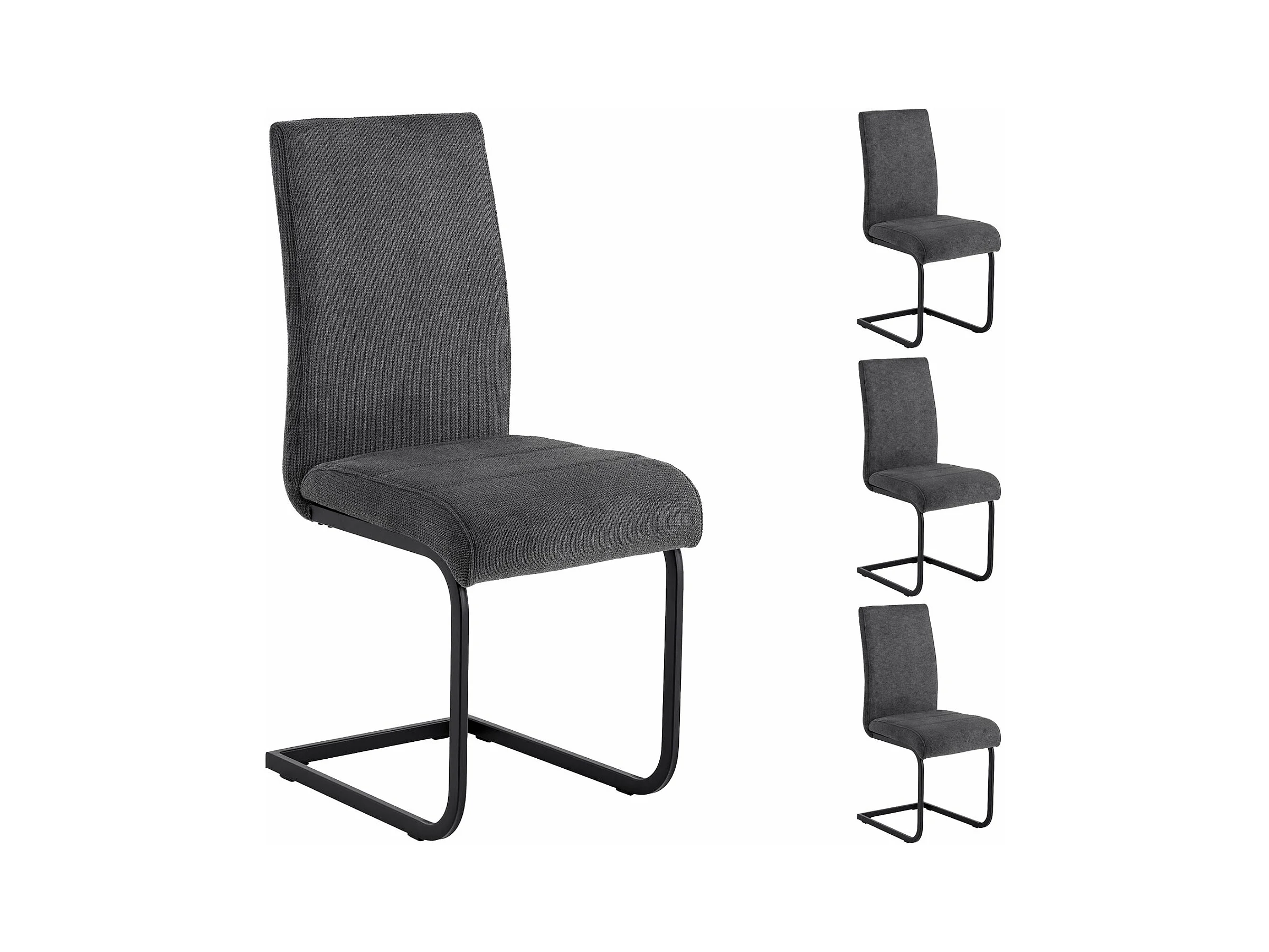 Lot de 4 chaises de salle à manger LETICIA piètement en métal noir et revêtement en tissu anthracite