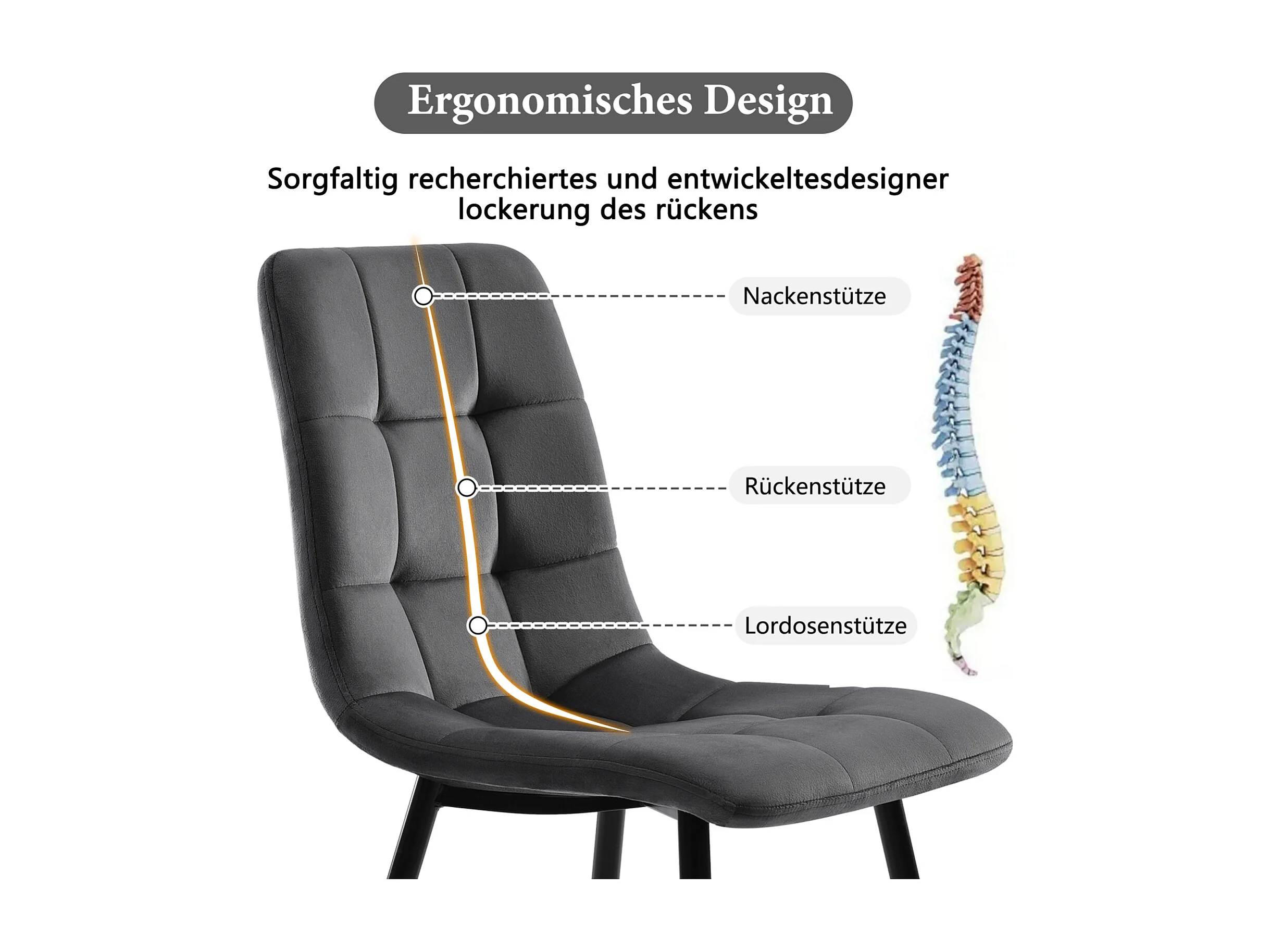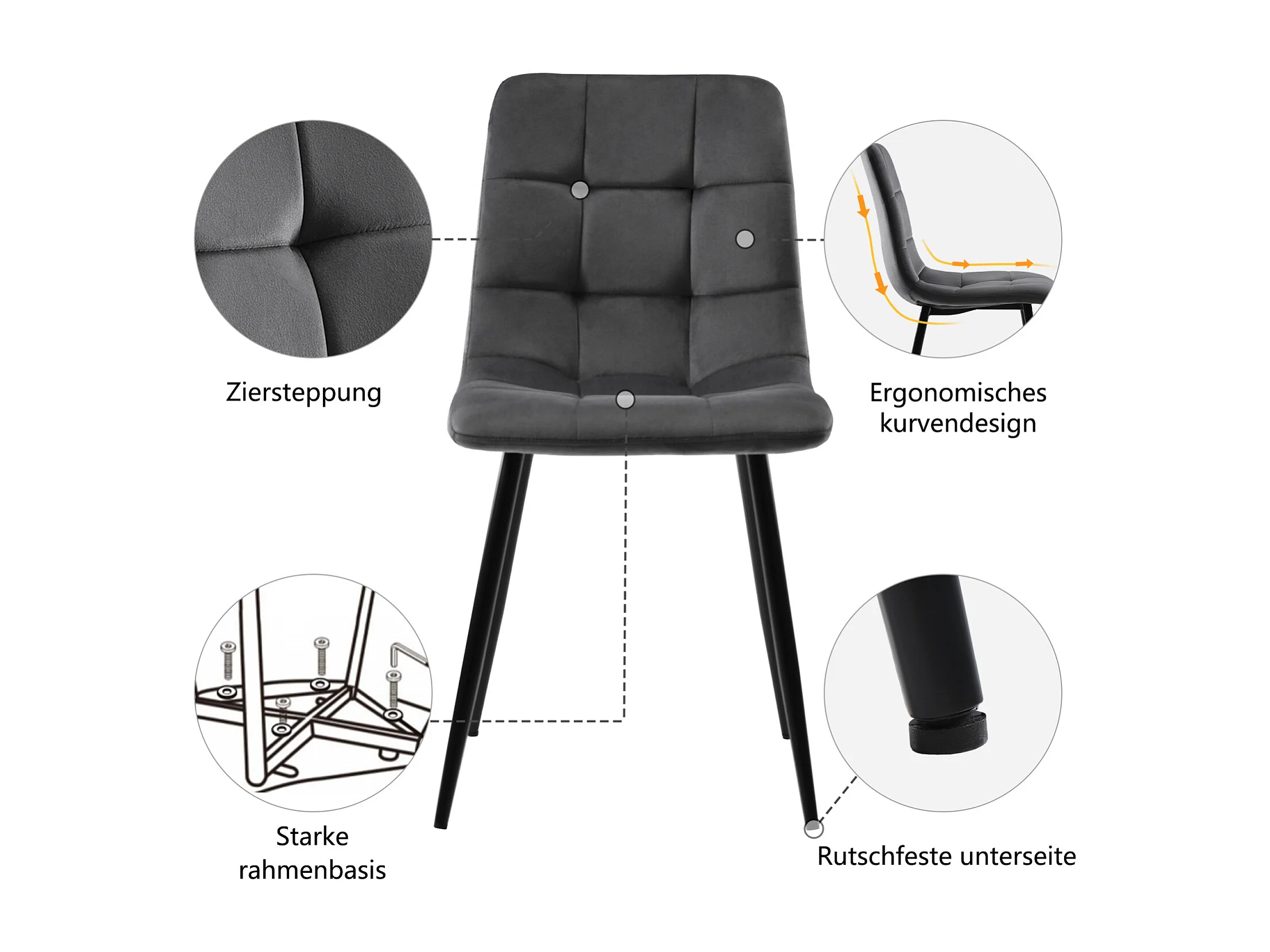 Lot de 4 chaise salle à manger - Velours - Gris foncé - Dijon
