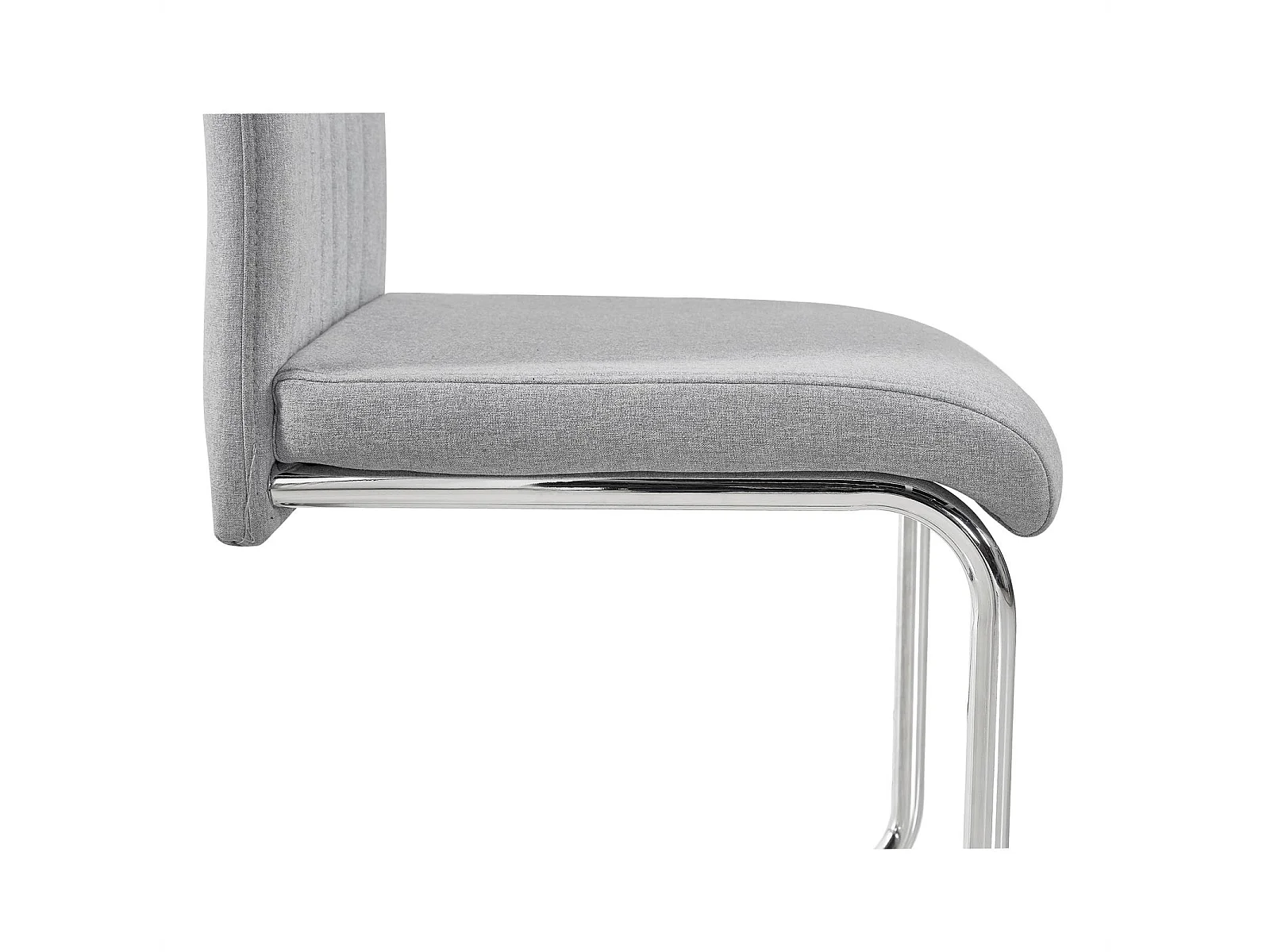 Lot de 4 chaises de salle à manger ou cuisine ERICA avec assise rembourrée poignée et piètement chromé, revêtement tissu gris clair
