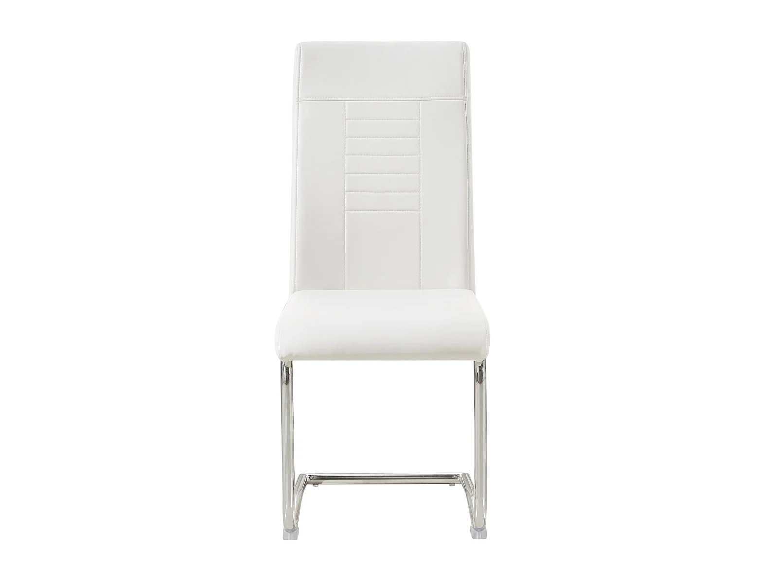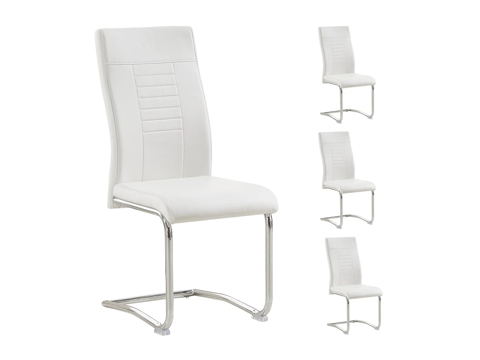Lot de 4 chaises de salle à manger ou cuisine LOANO, Chaise cantilever avec assise rembourrée et piètement en métal chromé, Blanc