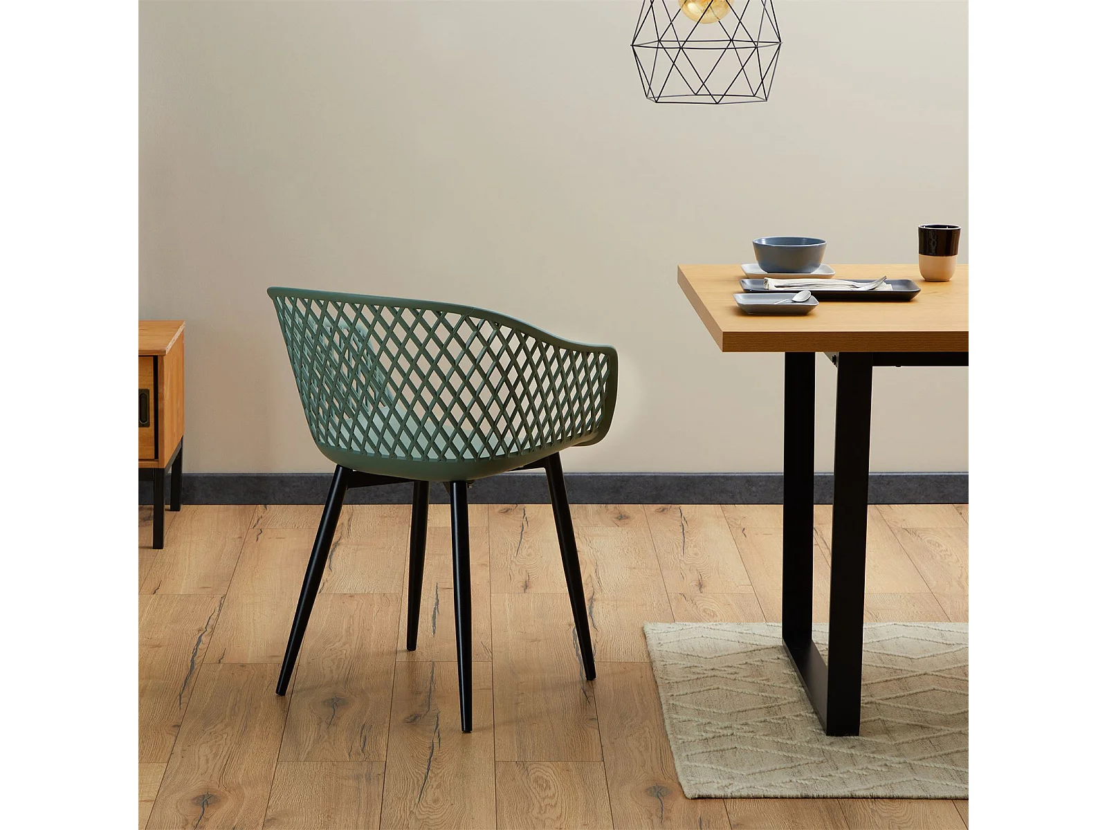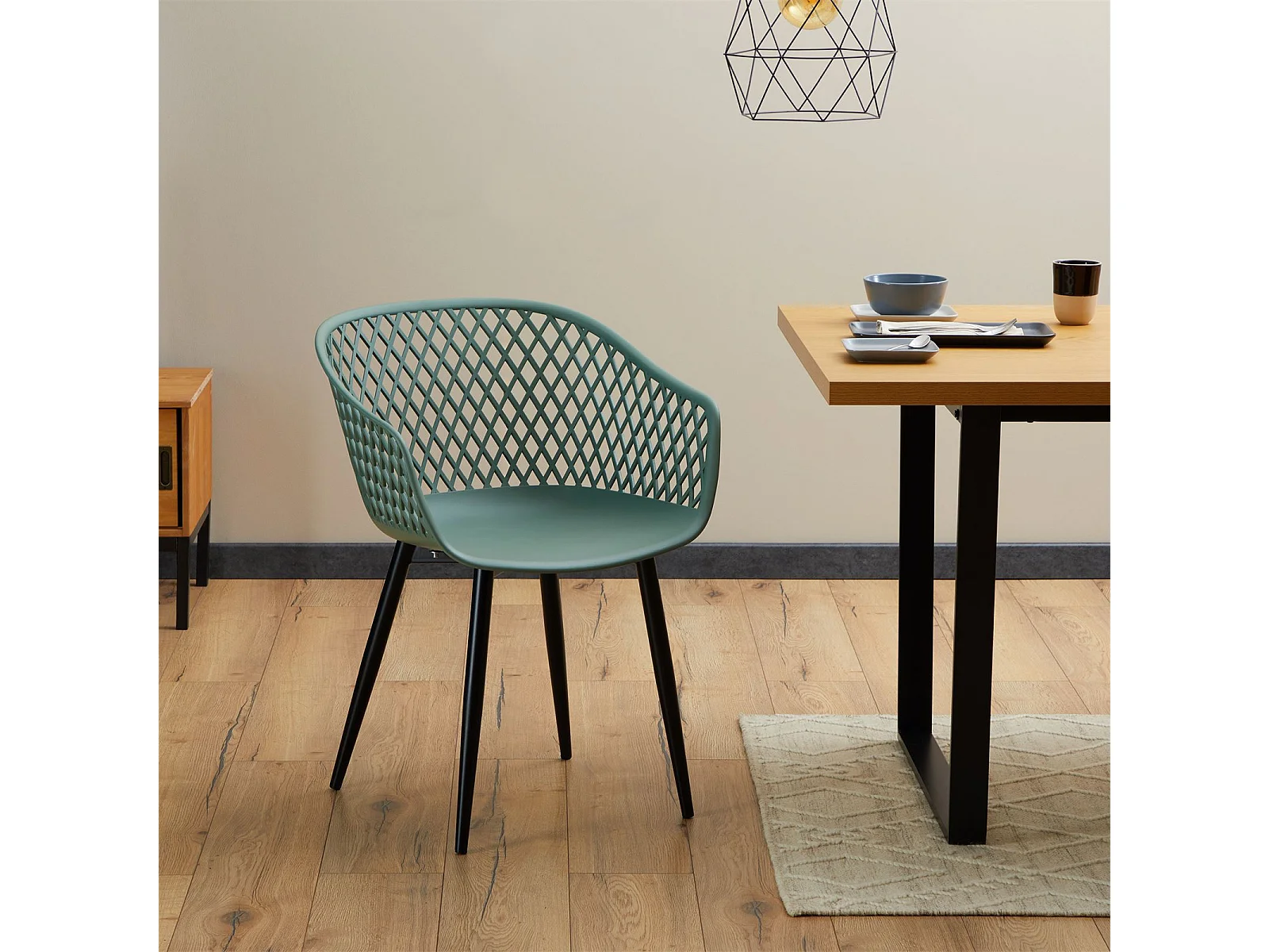 Lot de 4 chaises de salle à manger ou cuisine MADEIRA en plastique vert de gris