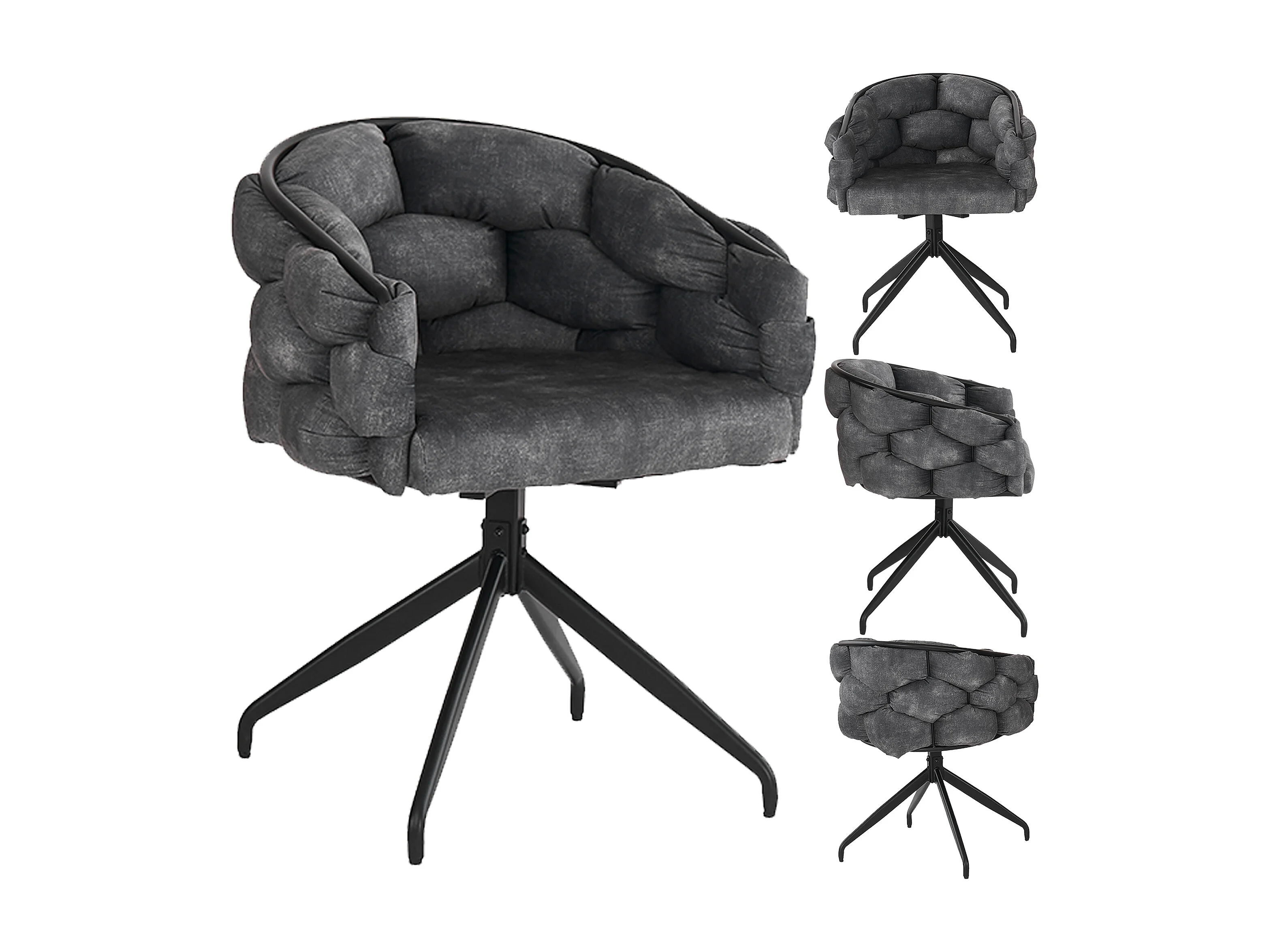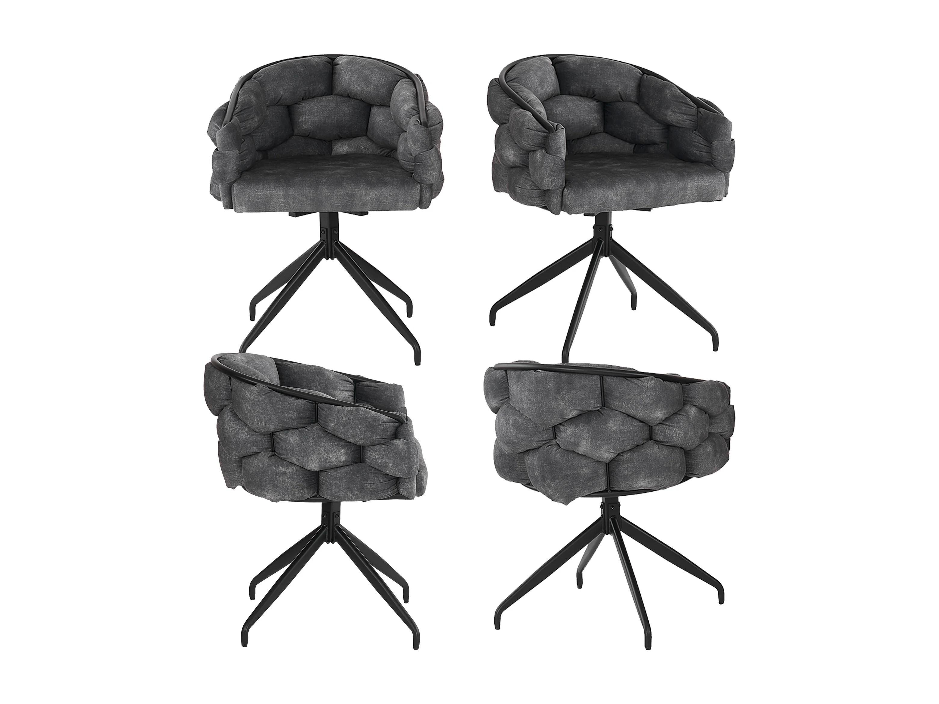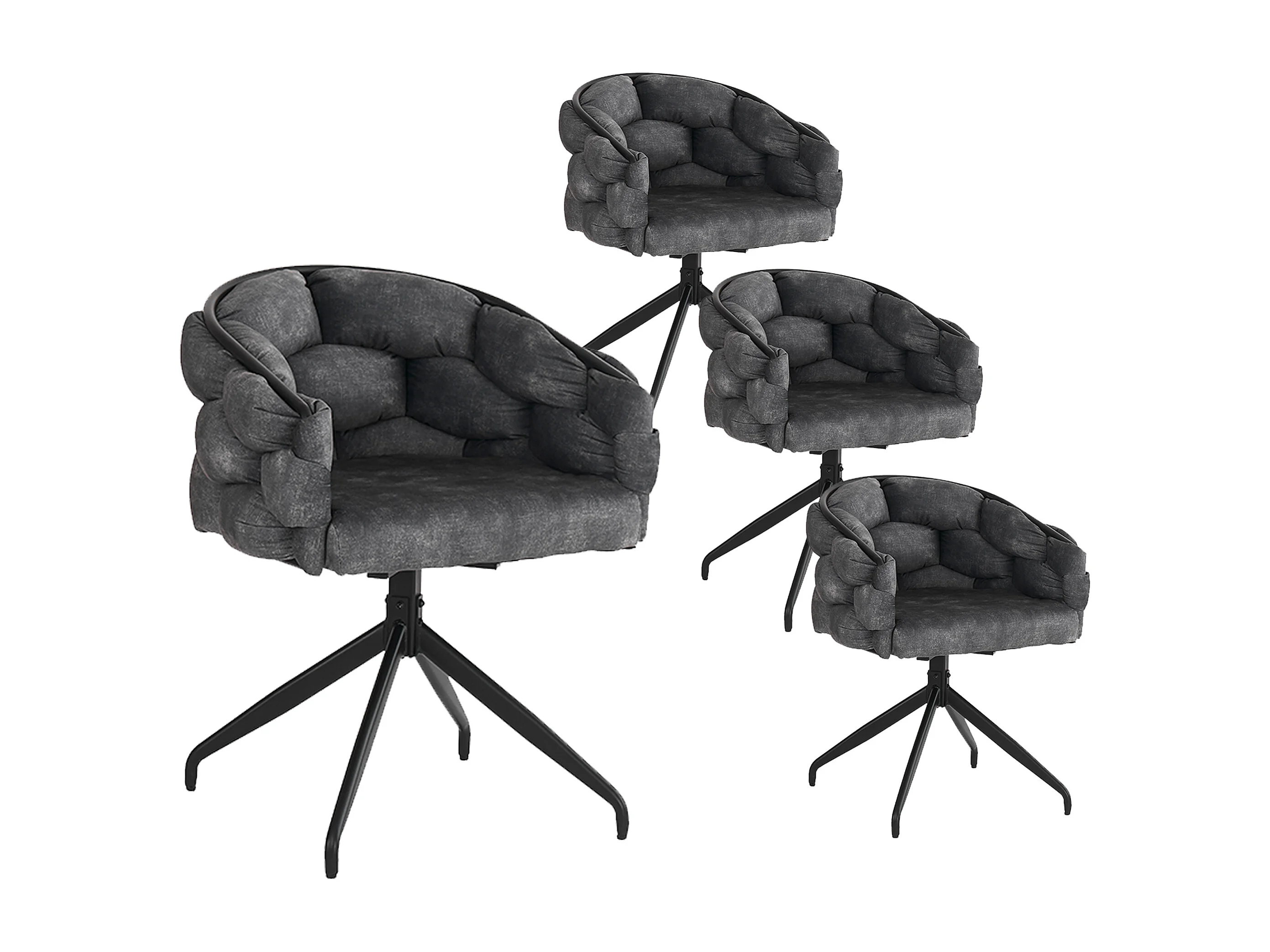 Lot de 4 chaises de salle à manger pivotantes - 61 x 59 x 77.5 cm - Velours et pieds en métal - Gris