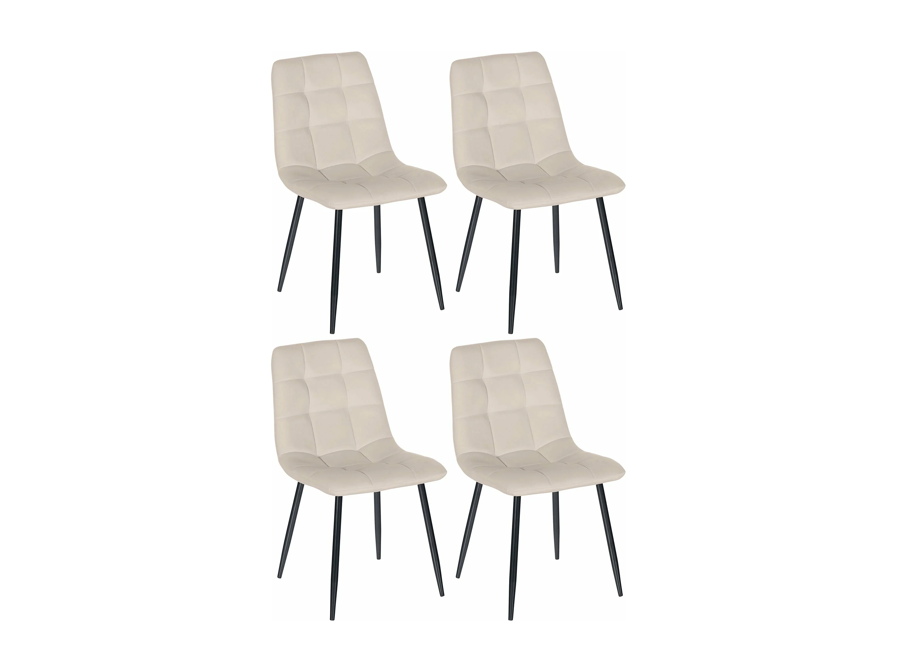 Lot de 4 chaises de salle à manger style moderne et confortable en tissu velours crème et métal noir 10_0001794