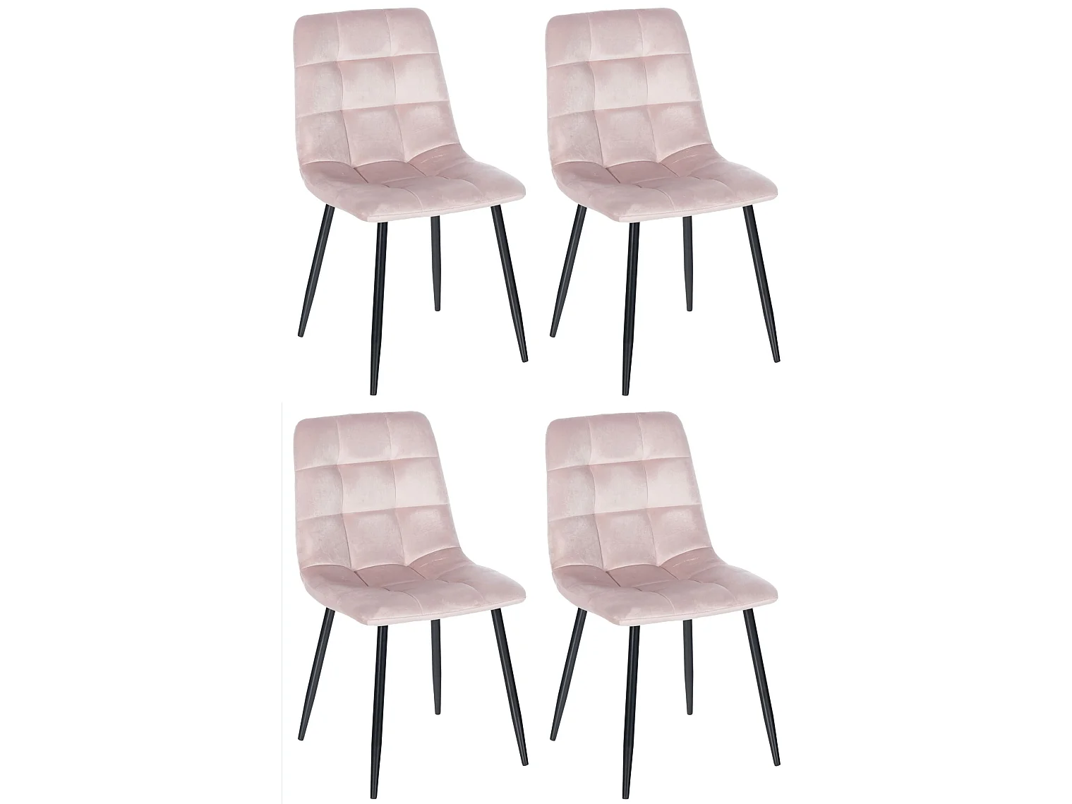 Lot de 4 chaises de salle à manger style moderne et confortable en tissu velours rose et métal noir 10_0001792