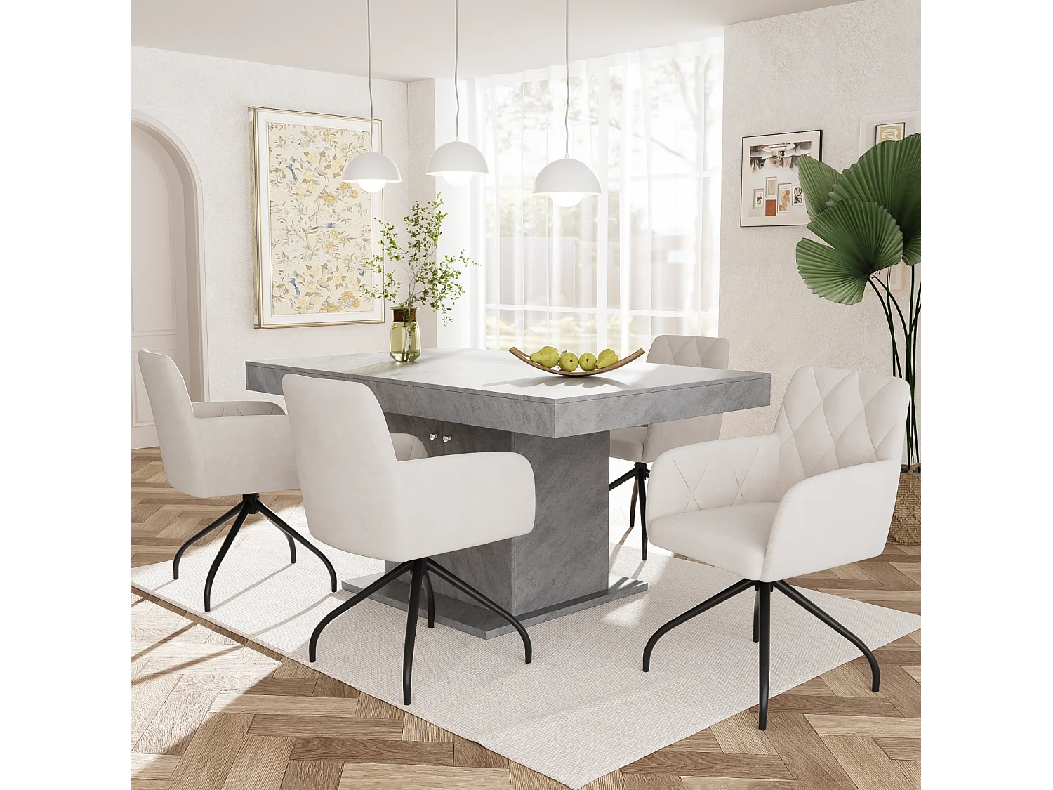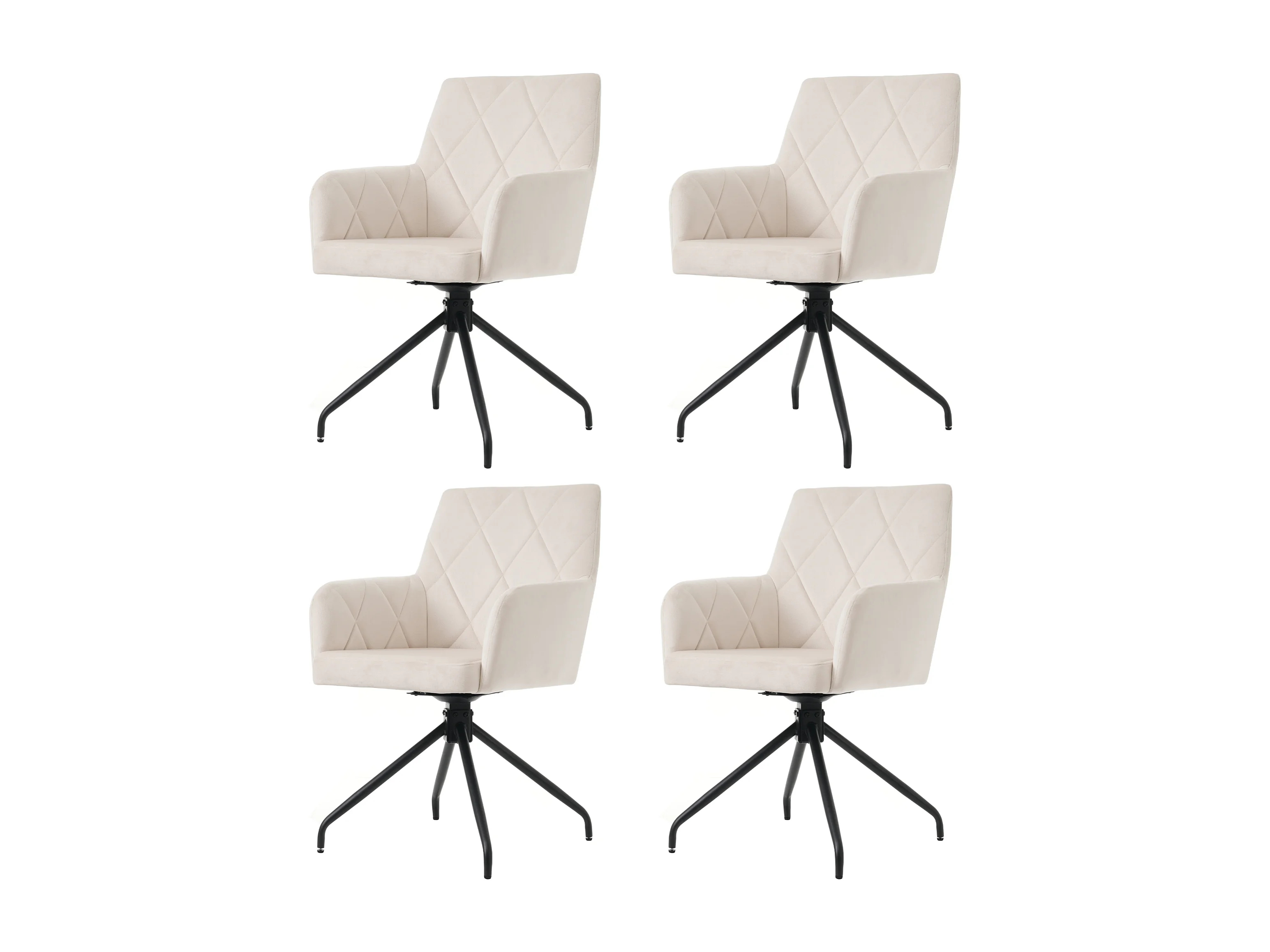 Lot de 4 chaises de salle à manger - velours beige - avec accoudoirs et fonction pivotante - pieds en métal