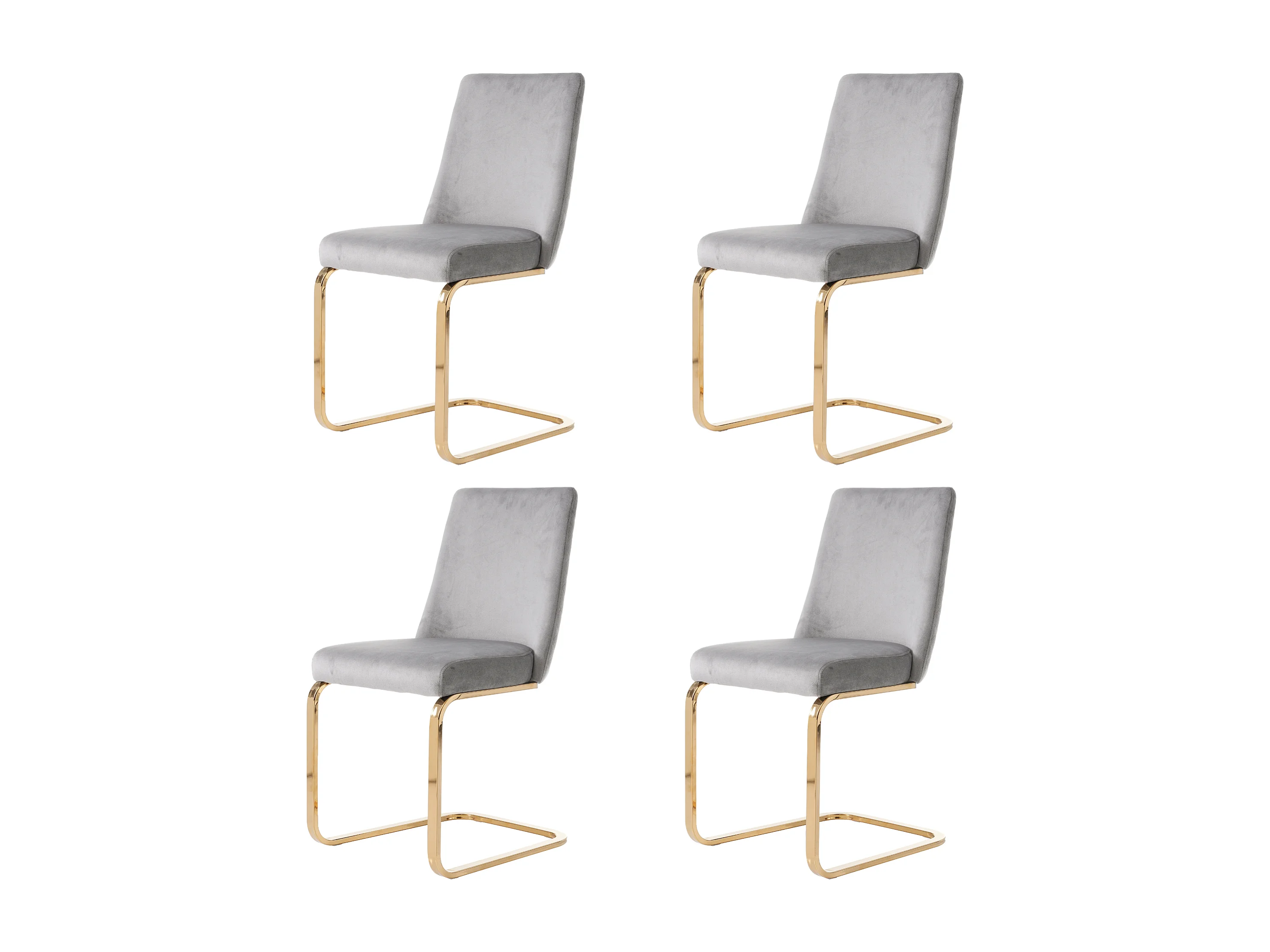 Lot de 4 chaises de salle à manger - velours gris - avec dossier rembourré et pieds en métal doré