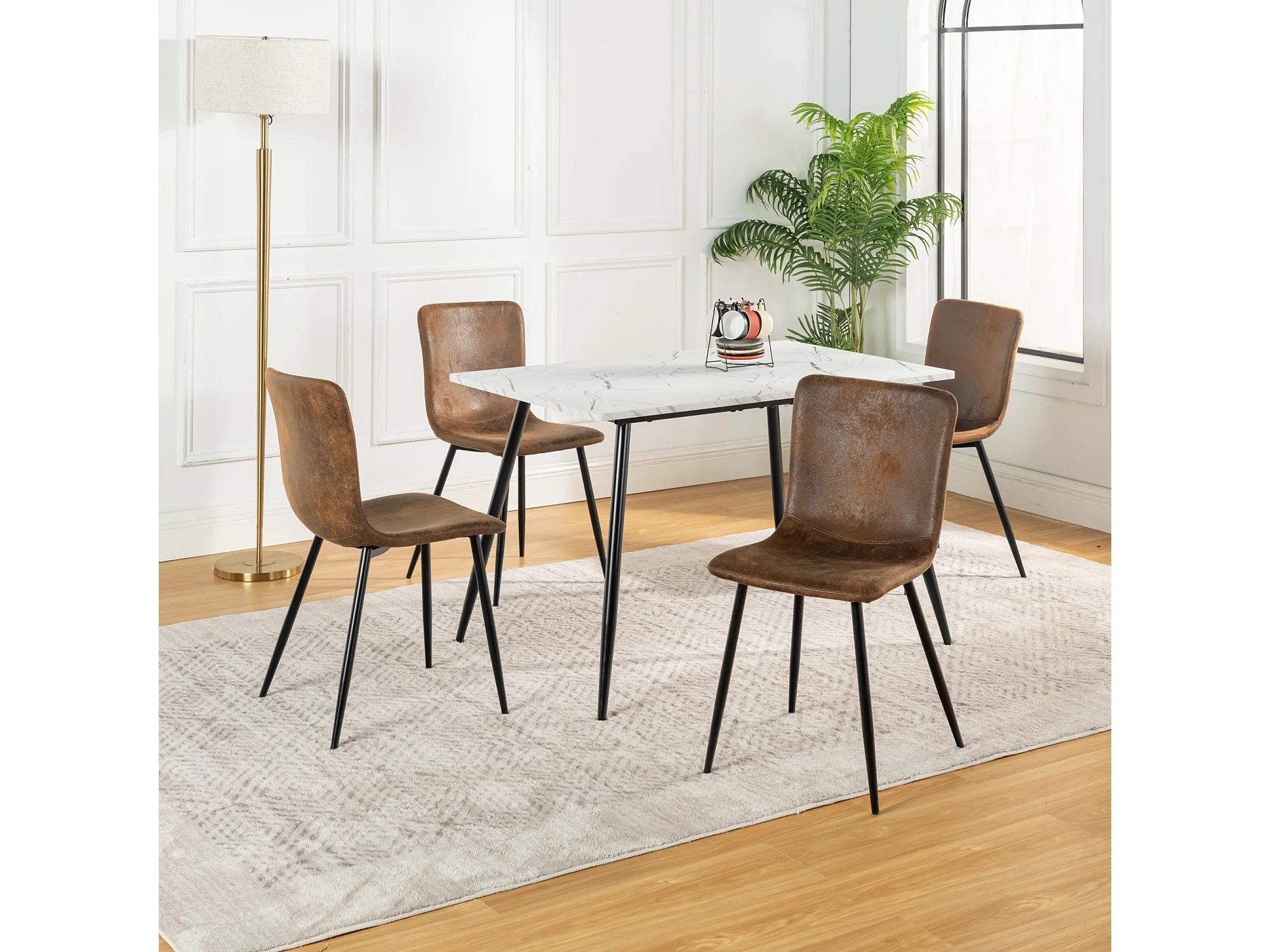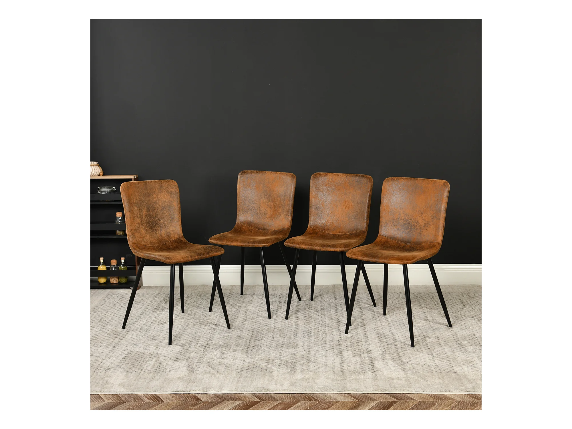 URBAN MEUBLE Lot de 4 chaises de salle à manger vintage marron suède pied noir
