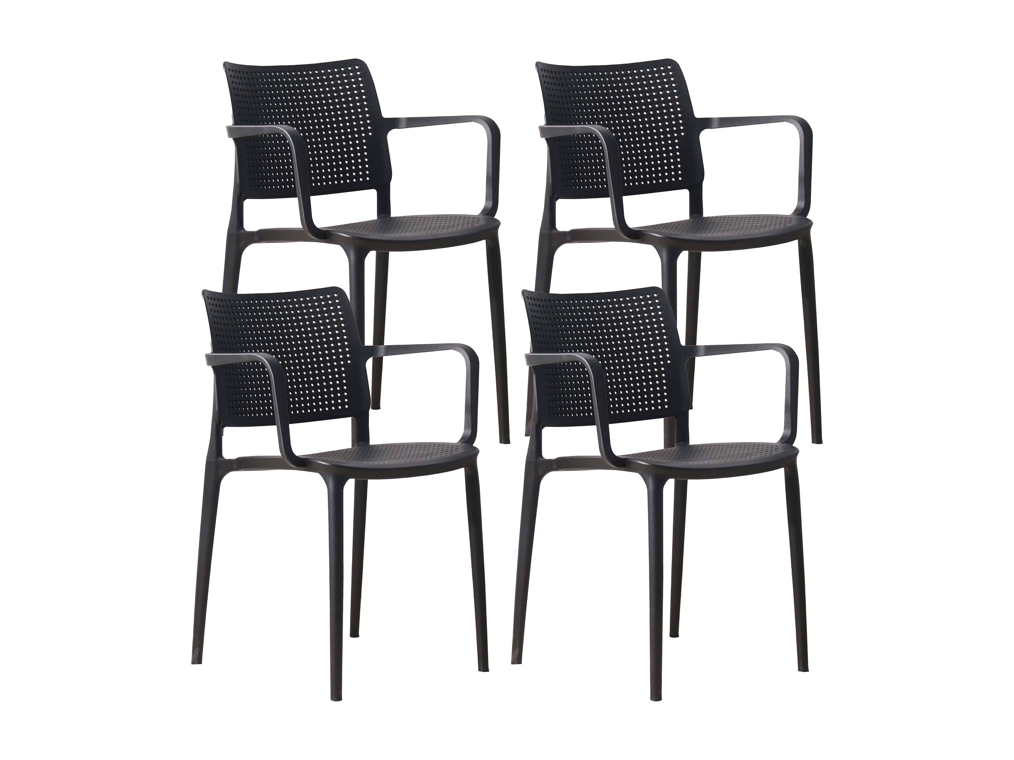 Lot de 4 chaises de terrasse en plastique noir
