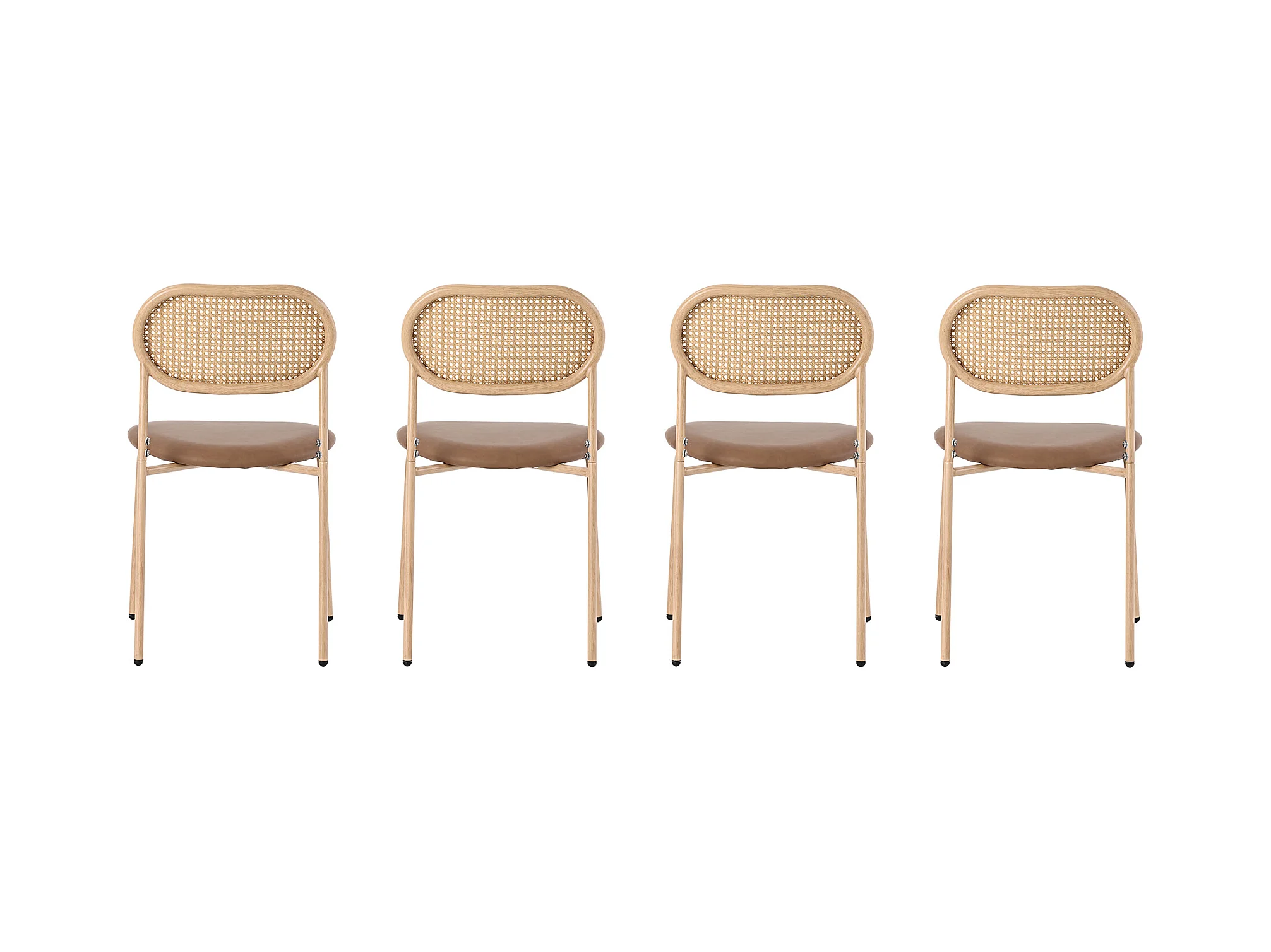 Lot de 4 chaises en rotin et Assise rembourrée en PU, marron