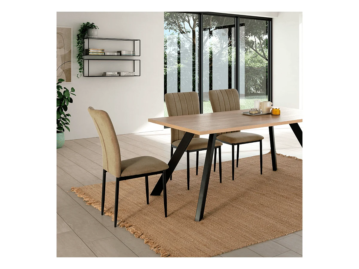Lot de 4 chaises en tissu avec pieds en métal noir L43 cm - HOLLY