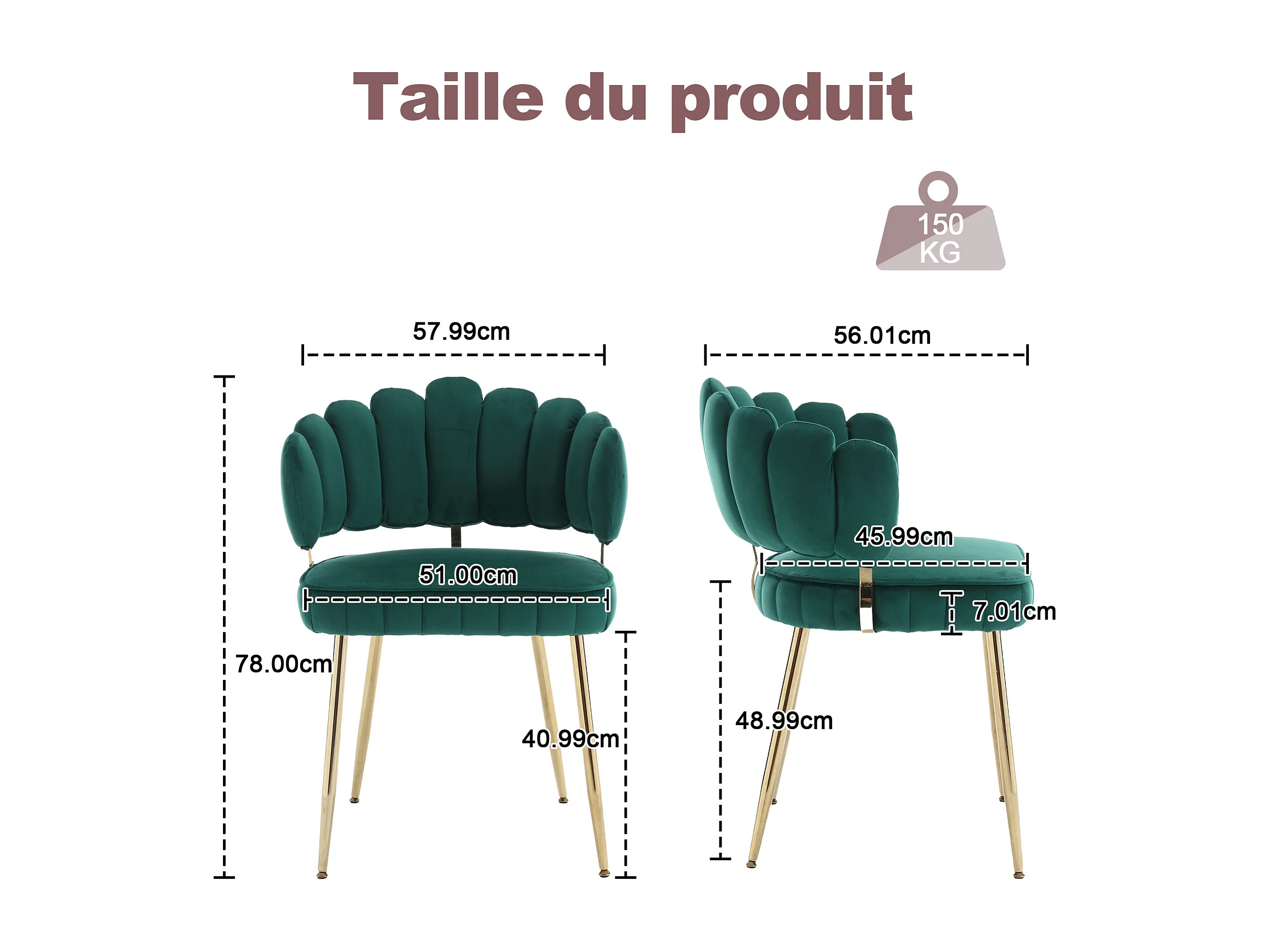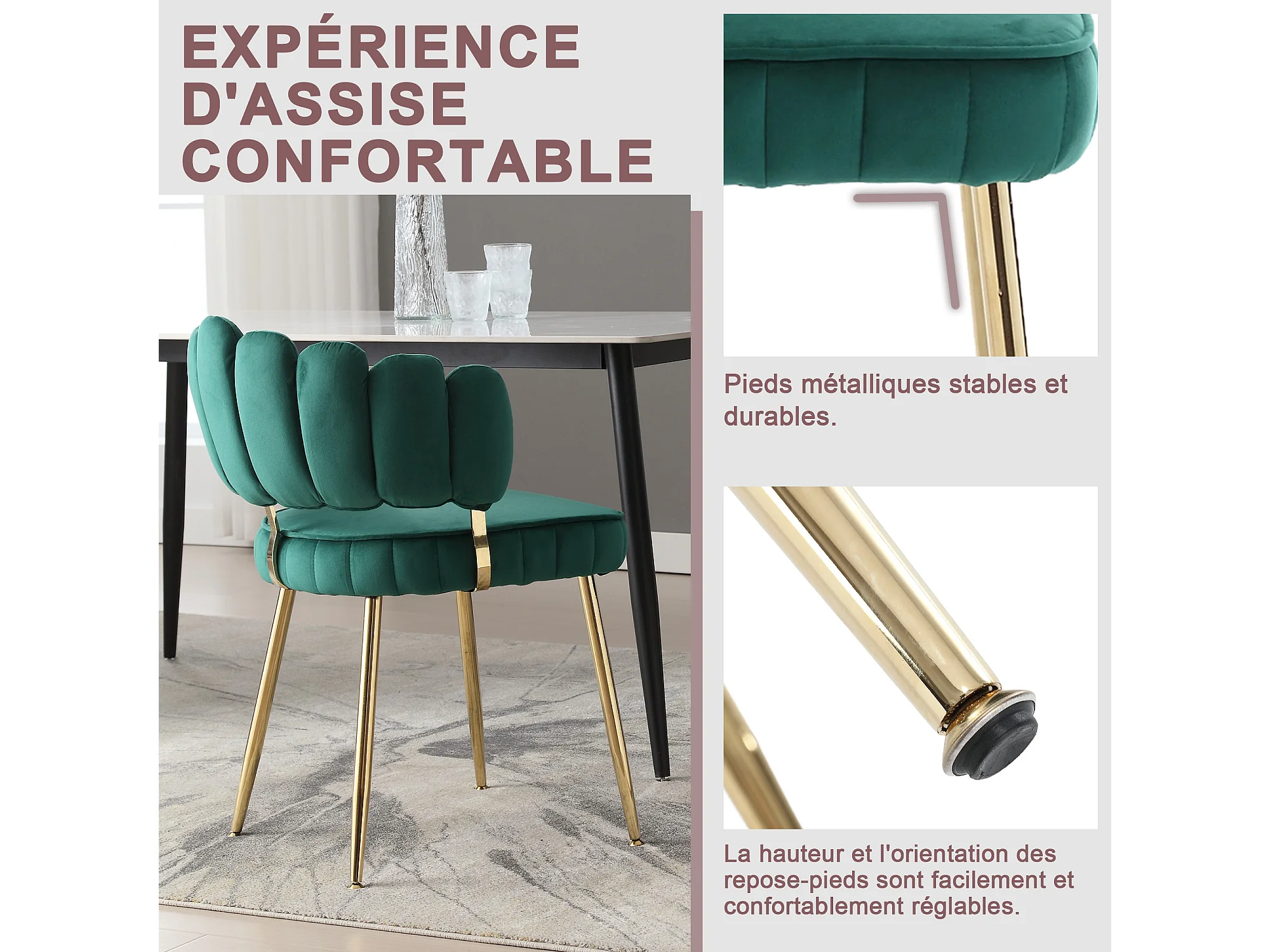 Lot de 4 chaises en velours vert - dossier avec motif pétale découpé - idéal pour salle à manger ou salon moderne