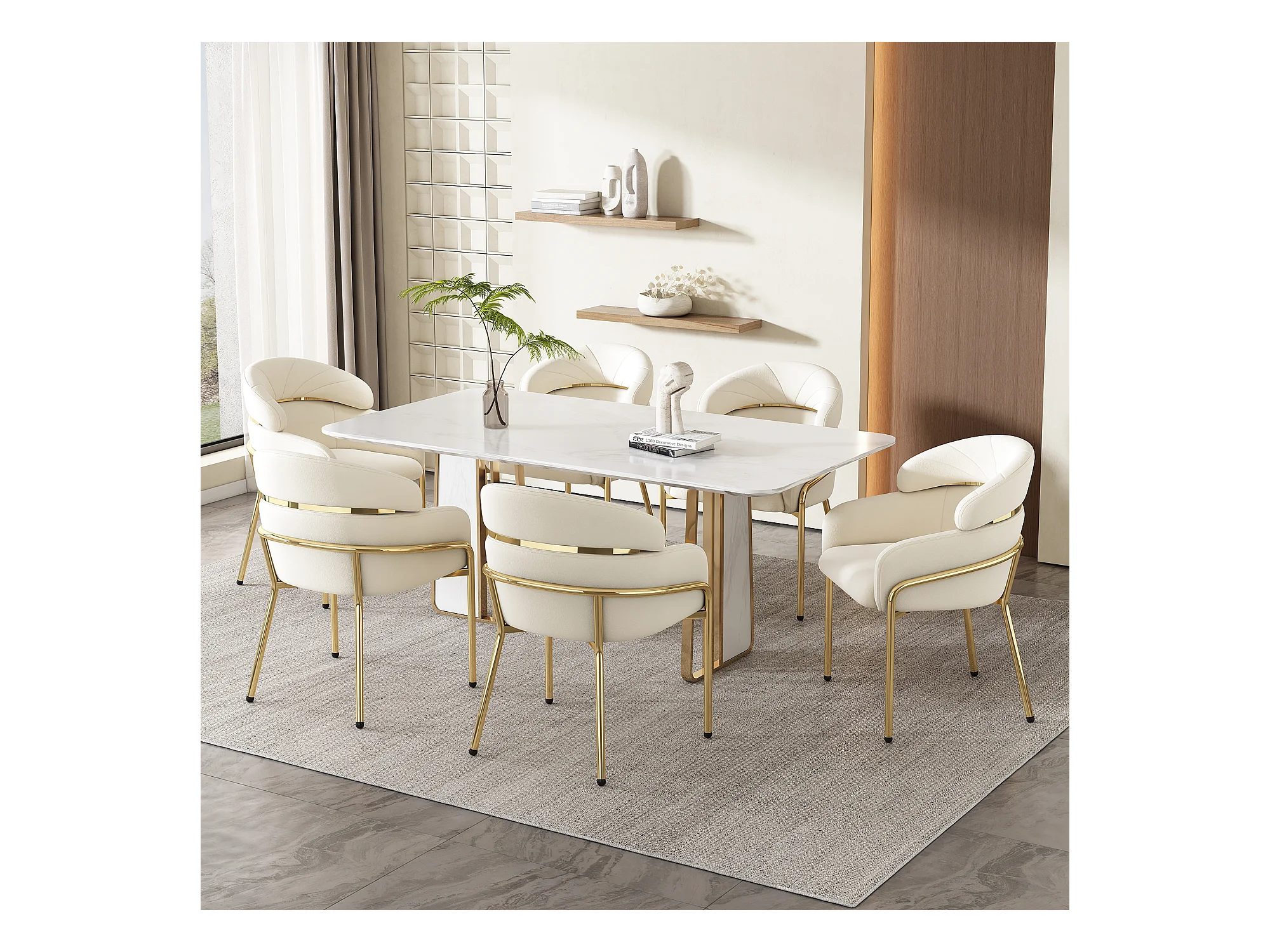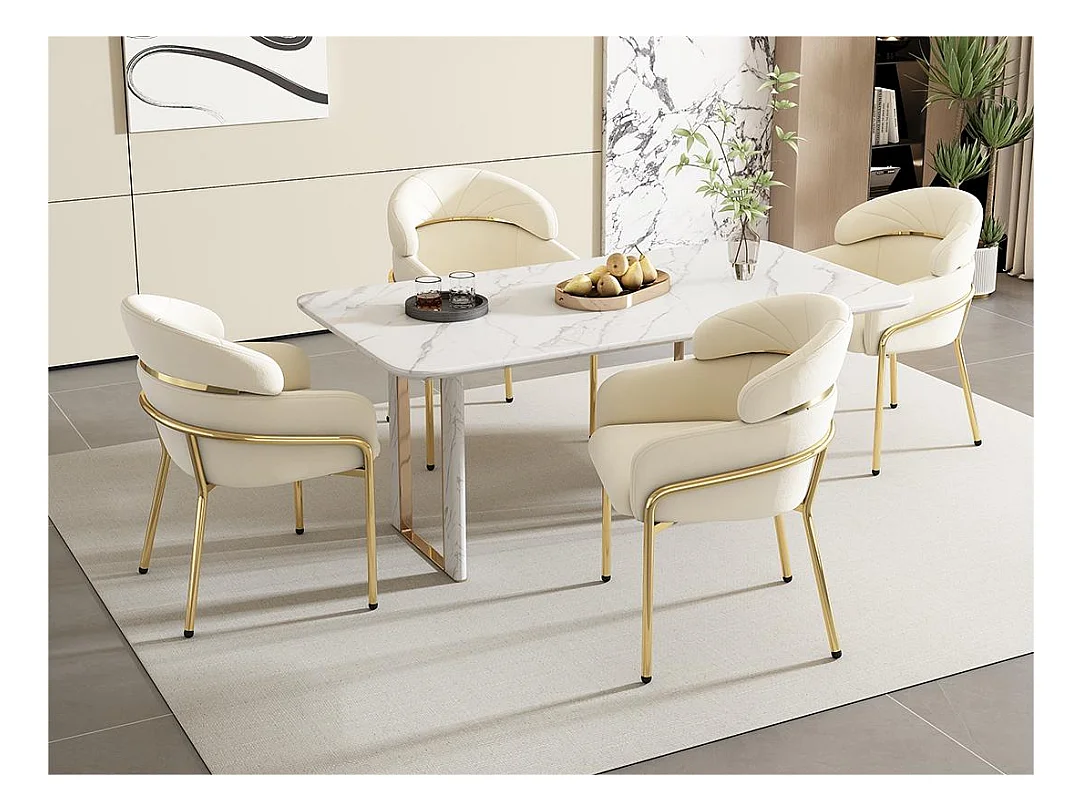 Lot de 4 Chaises longues en velours - avec 4 pieds dorés en métal - Beige