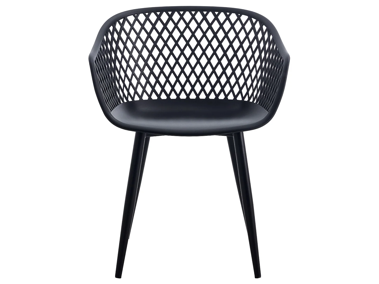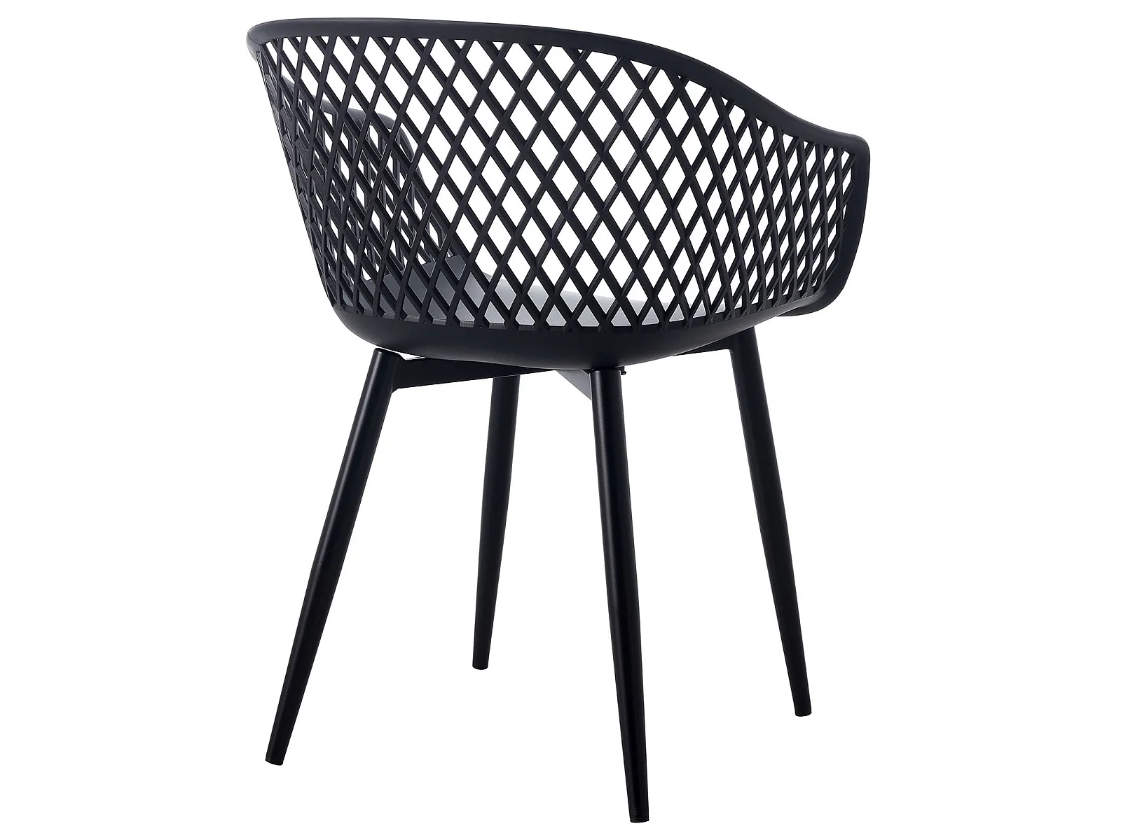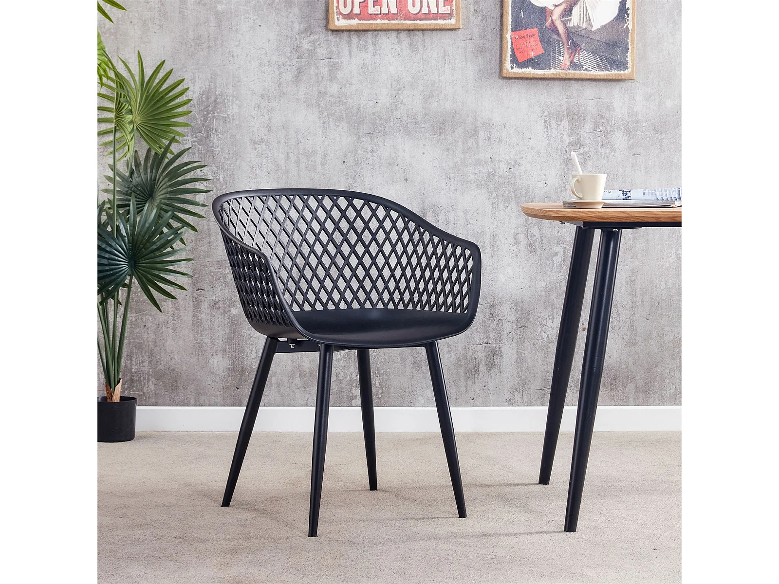 Lot de 4 chaises MADEIRA pour salle à manger ou cuisine au design retro avec accoudoirs, coque en plastique noir et 4 pieds en métal