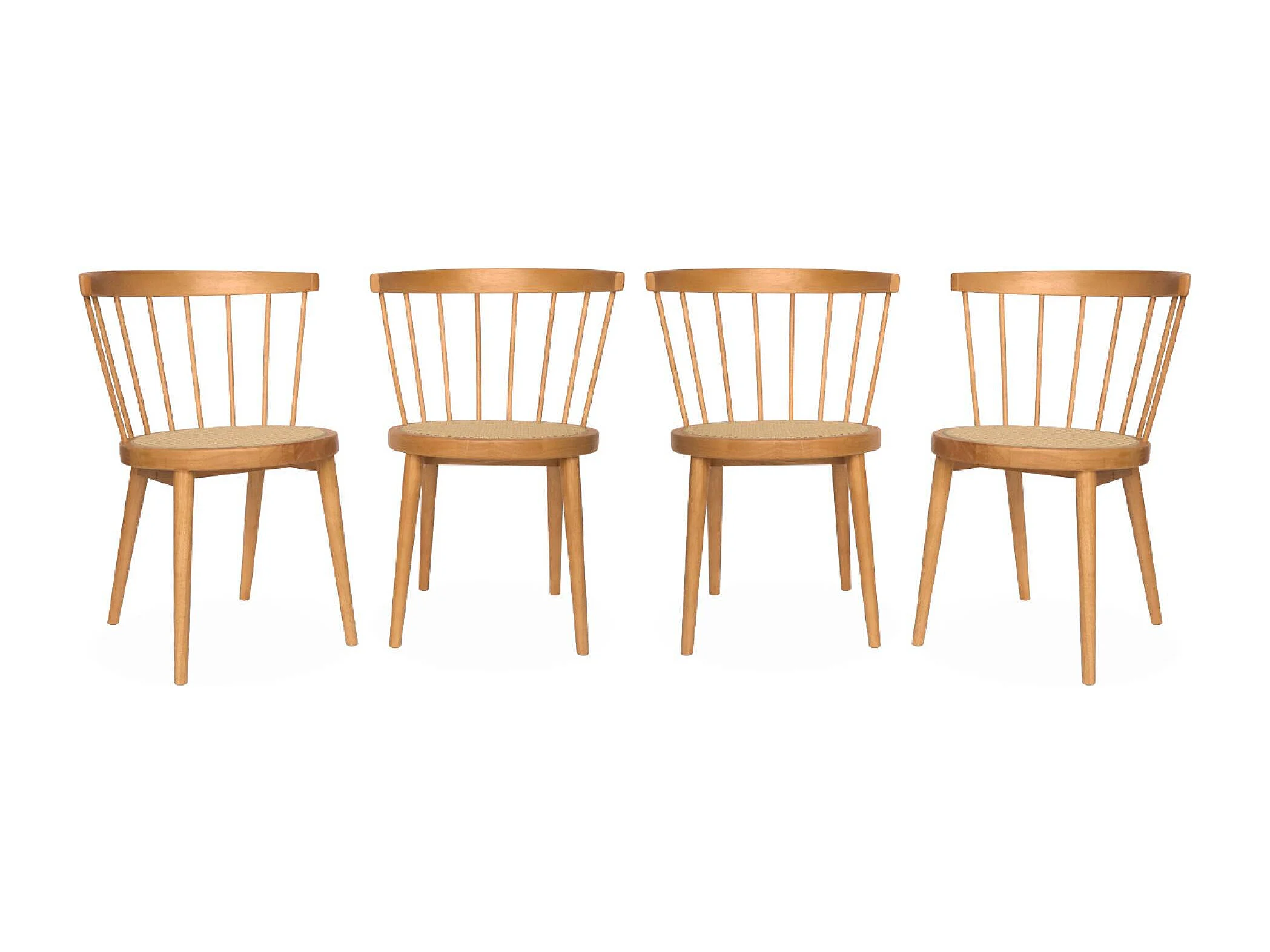 Lot de 4 chaises naturelles en bois et cannage. Nora. L 53 x P 53.5 x H 76cm