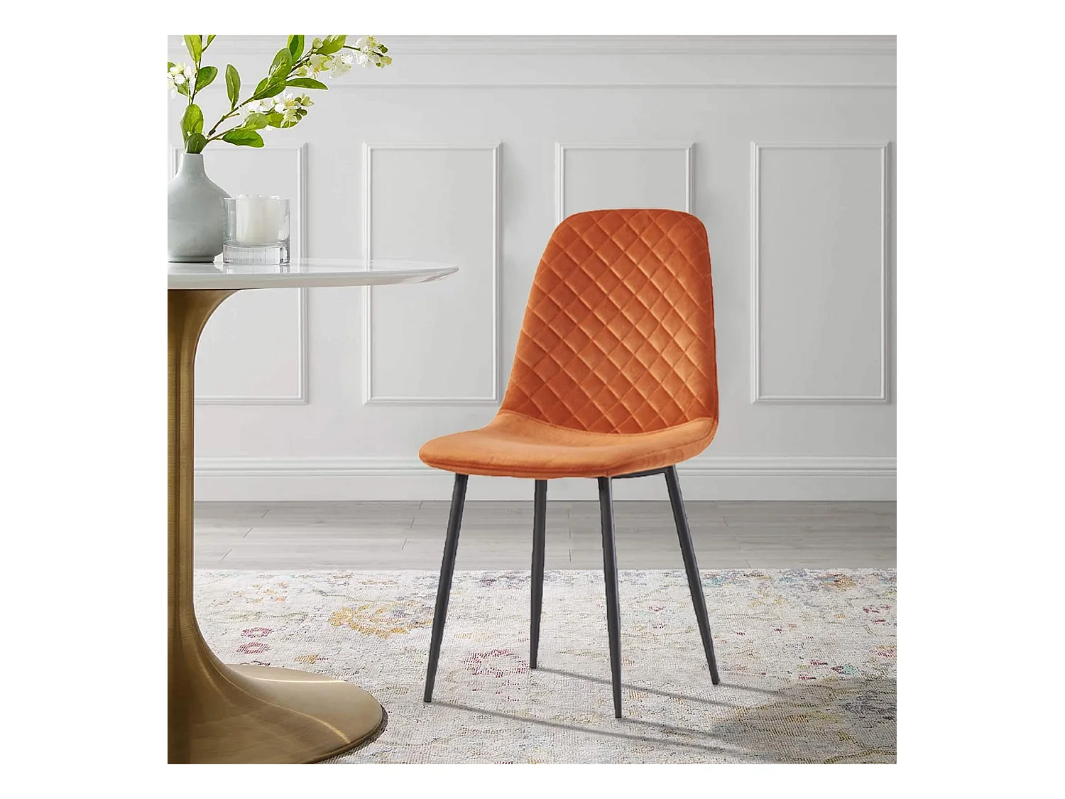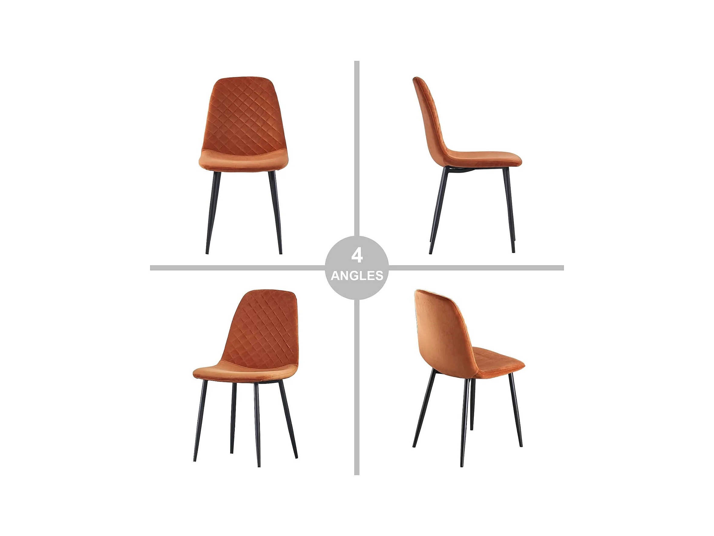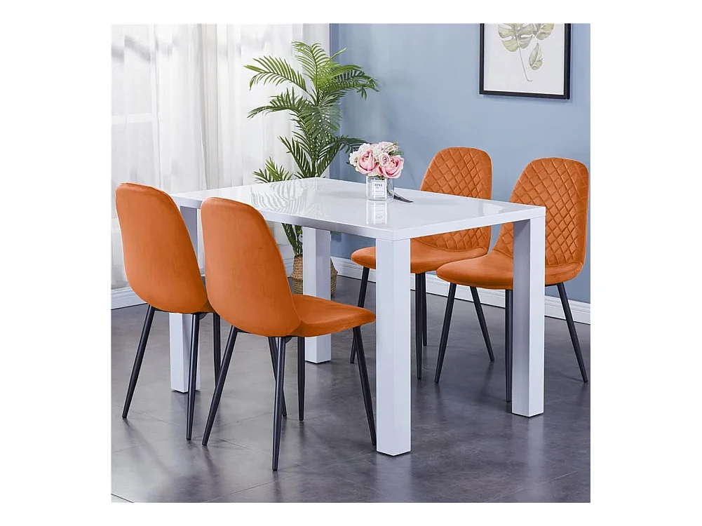 Lot de 4 Chaises Oranges Scandinaves, Chaises de Salle à Manger avec Dossier, Siège en Velours, Pieds en Métal pour Salon,Salle de Cuisine (4, Orange Velours)