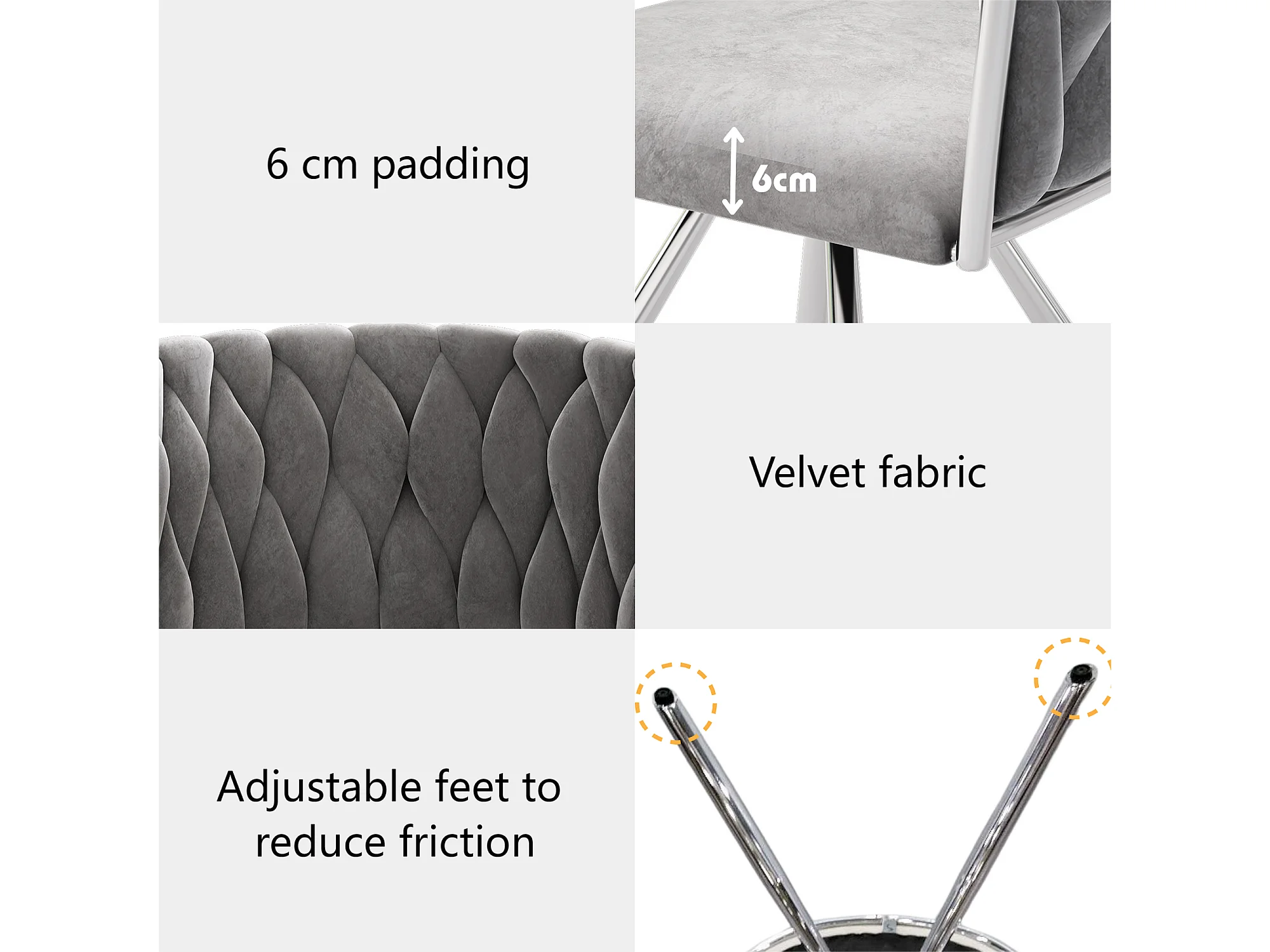 Lot de 4 chaises pivotantes en velours avec accoudoirs - pieds en métal argenté - Gris