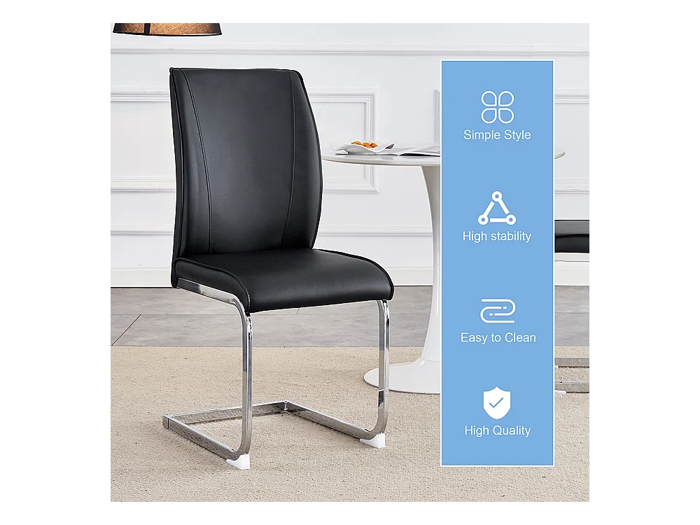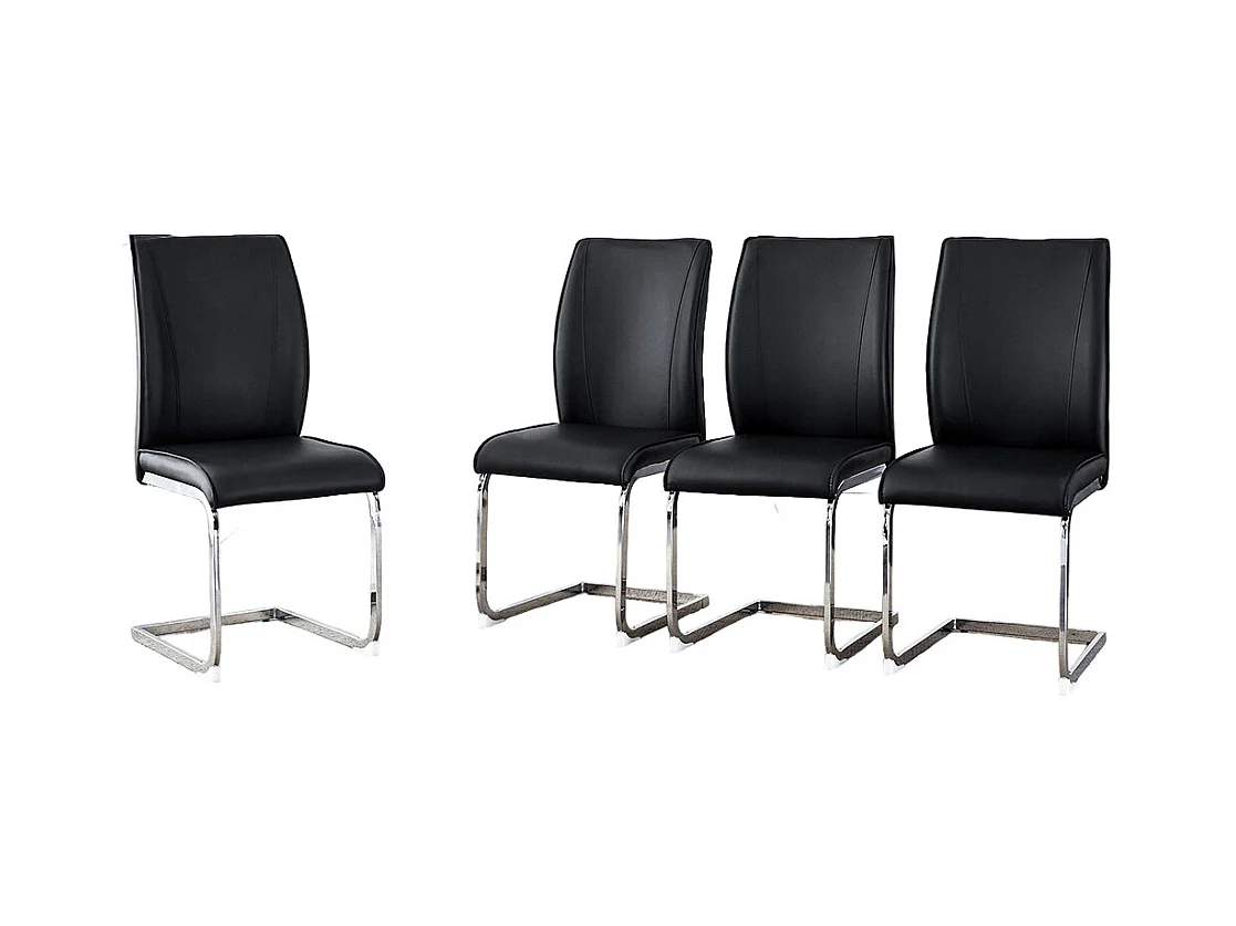 Lot de 4 chaises PU noir confortables pieds métal argenté élégance design moderne