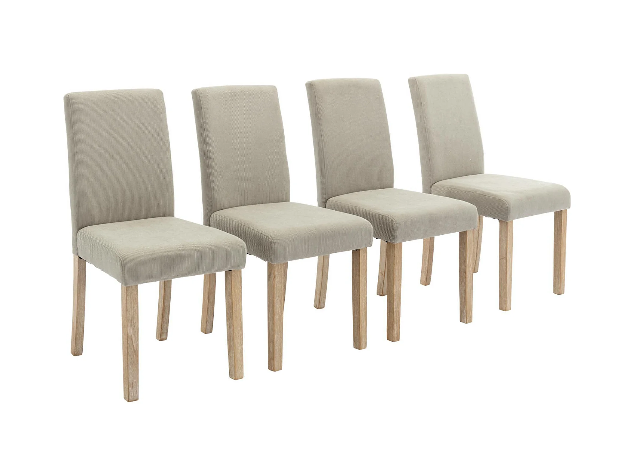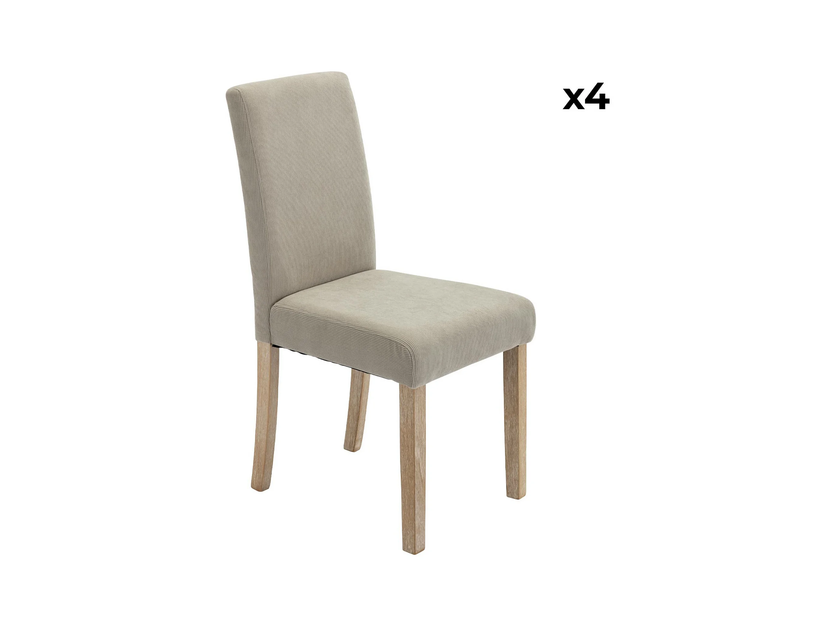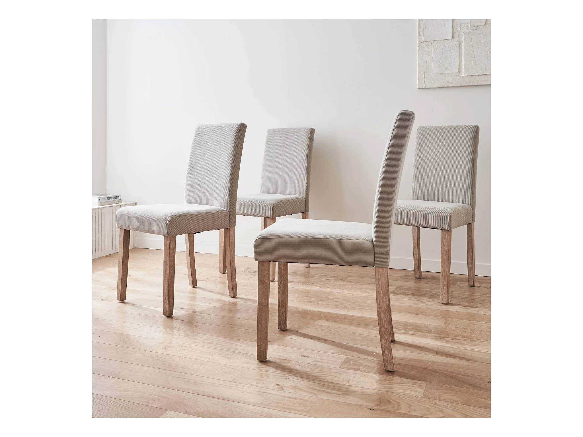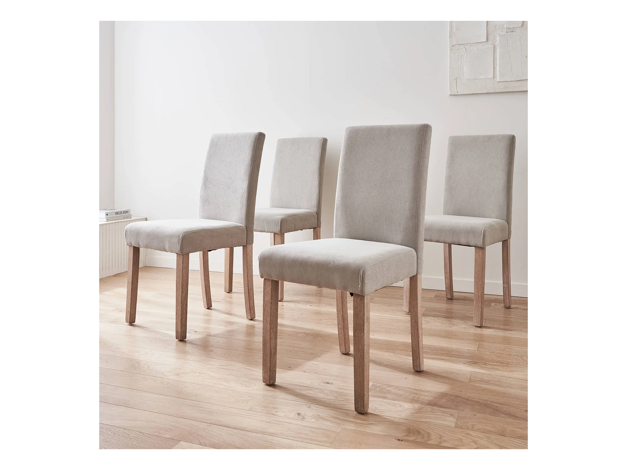 Lot de 4 chaises RITA velours côtelé pieds en bois d'hévéa cérusé