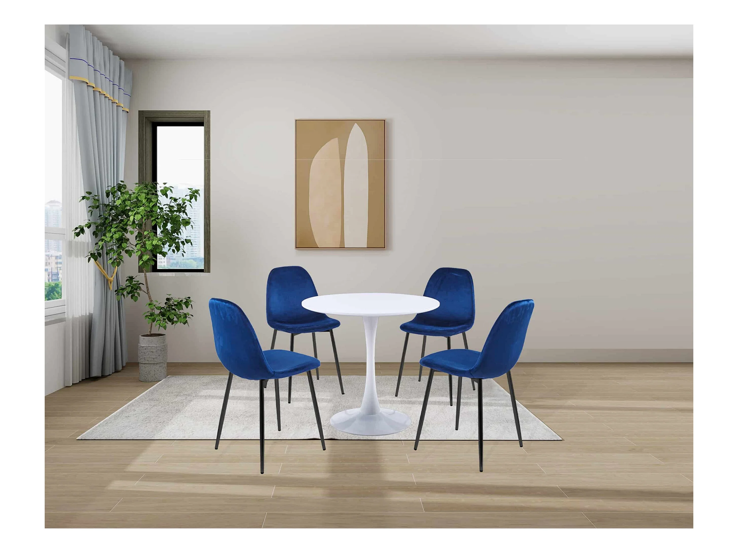 Lot de 4 chaises en velours bleu canard avec pieds métal noir – BIBA 2