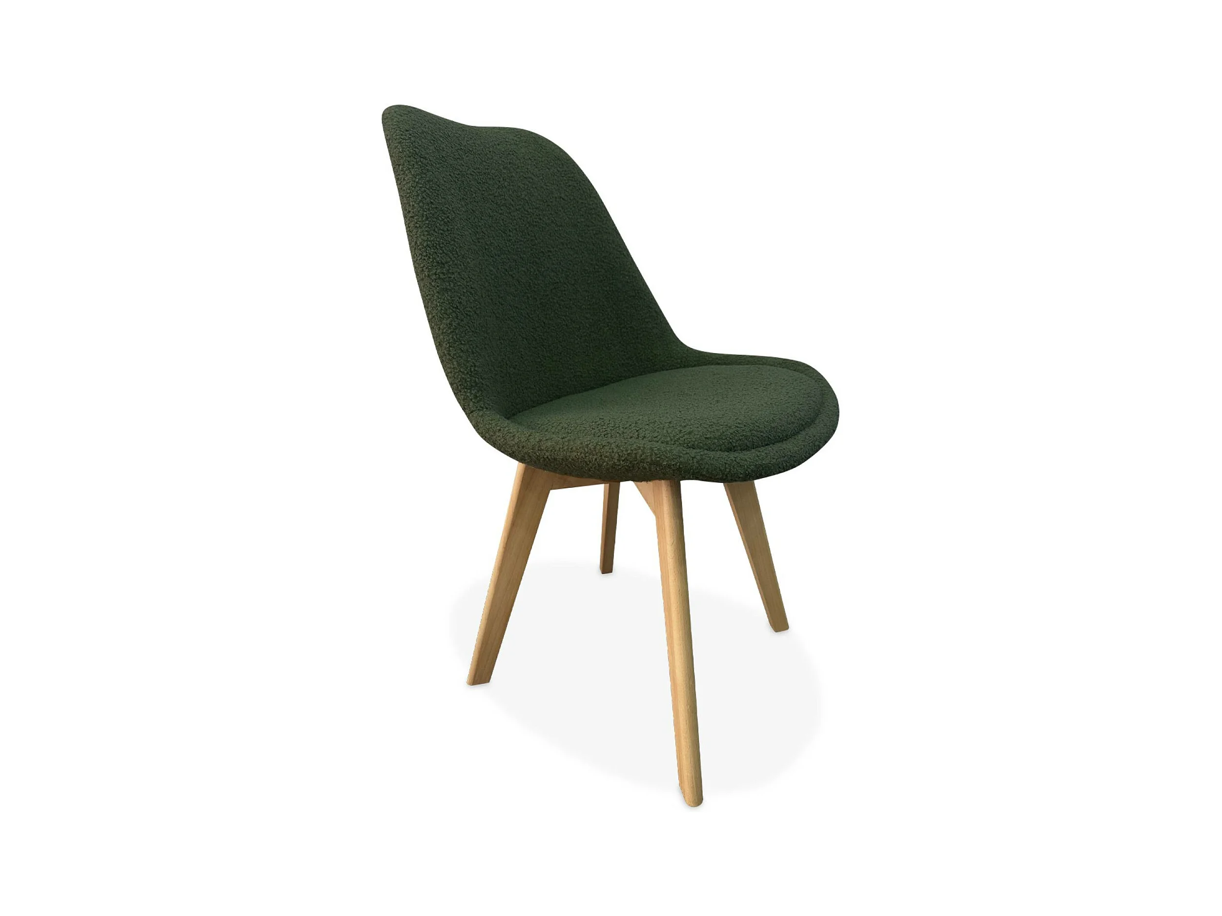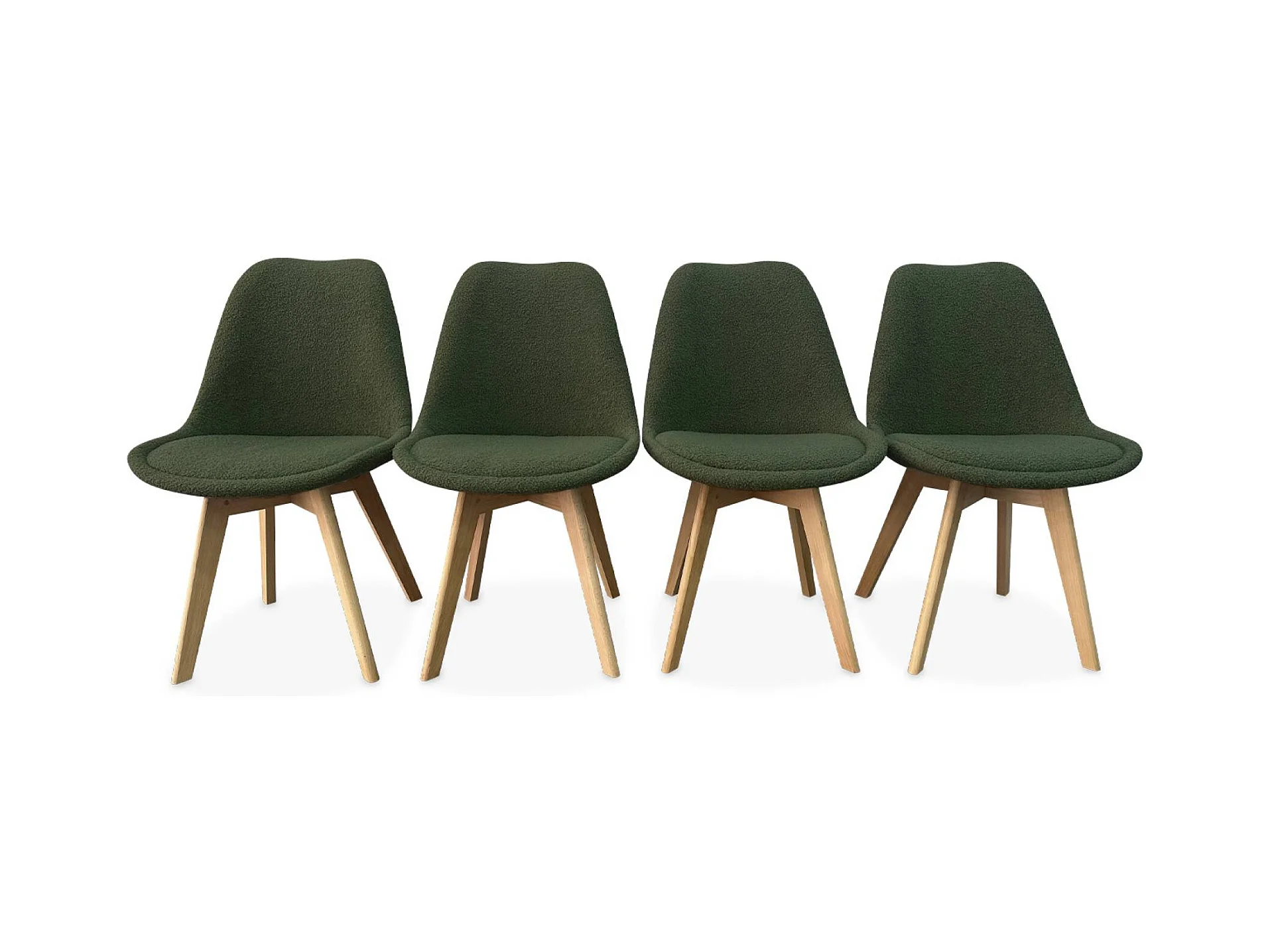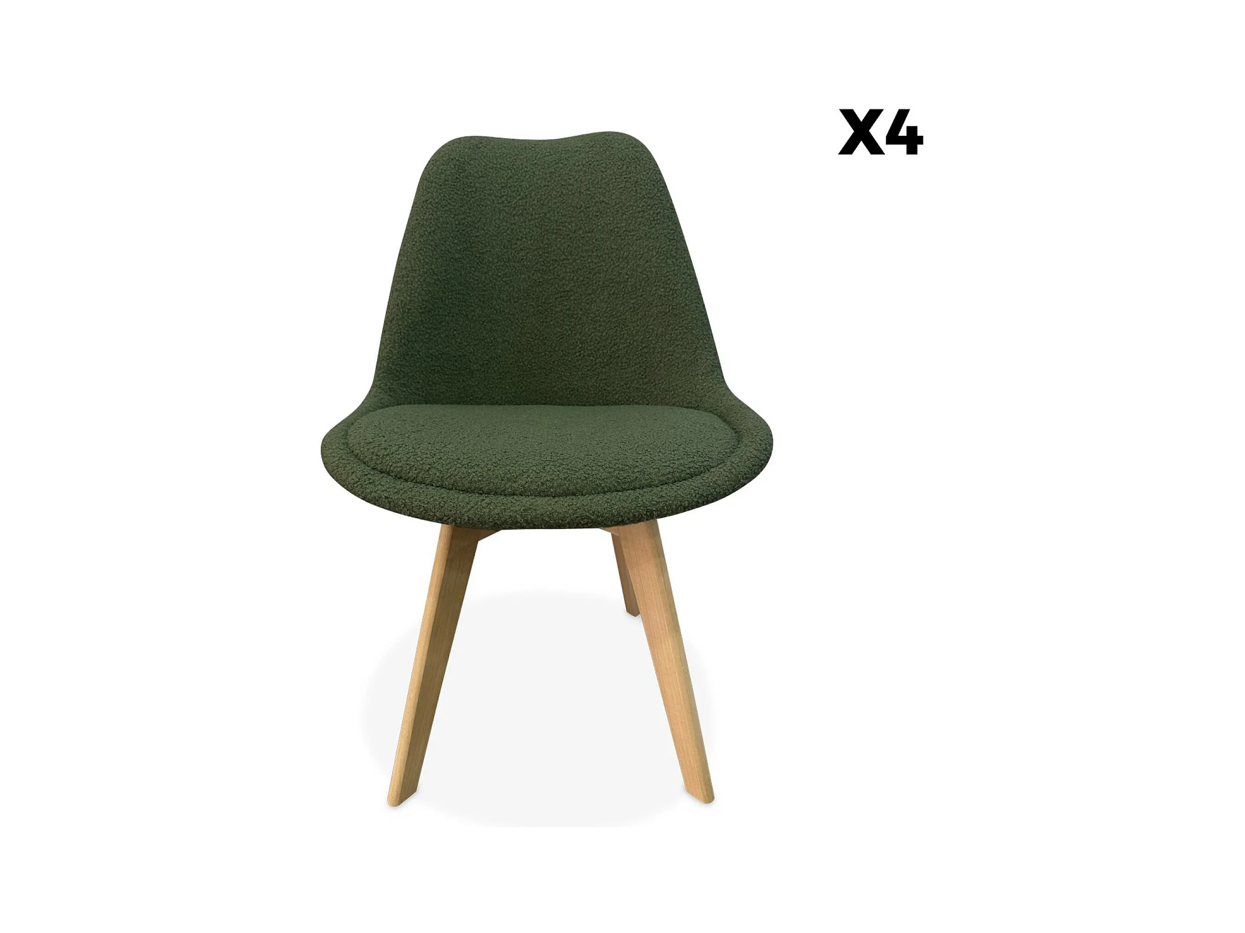 Lot de 4 chaises scandinaves NILS revêtement bouclette kaki. pieds bois de hêtre. chaise 1 place