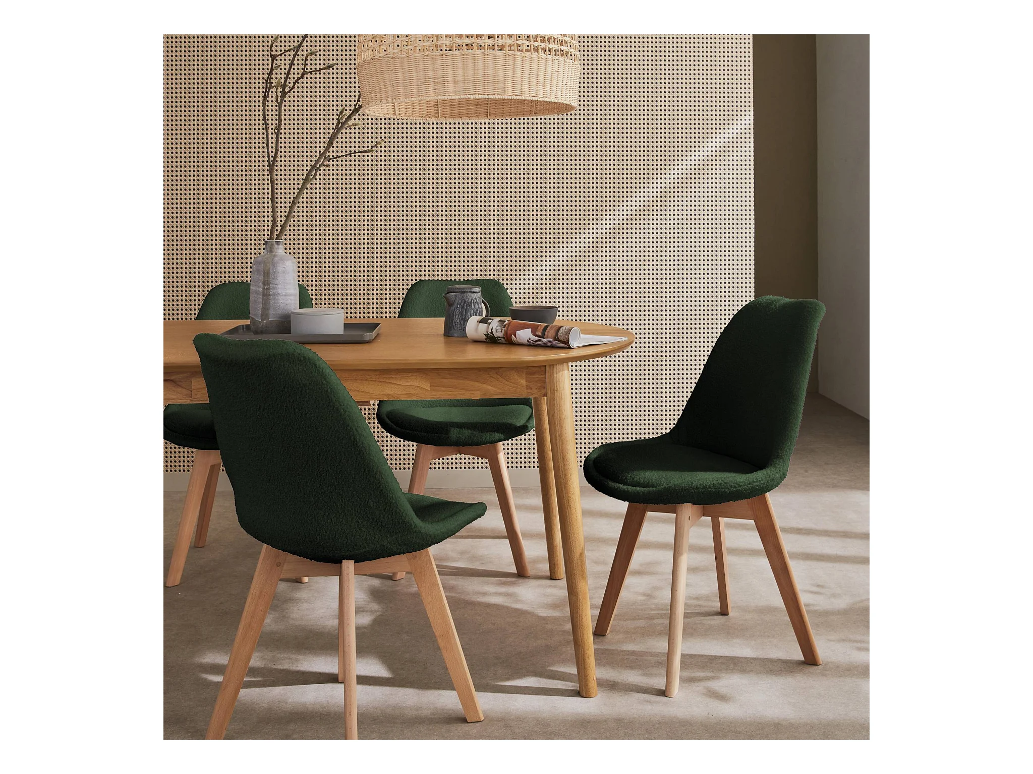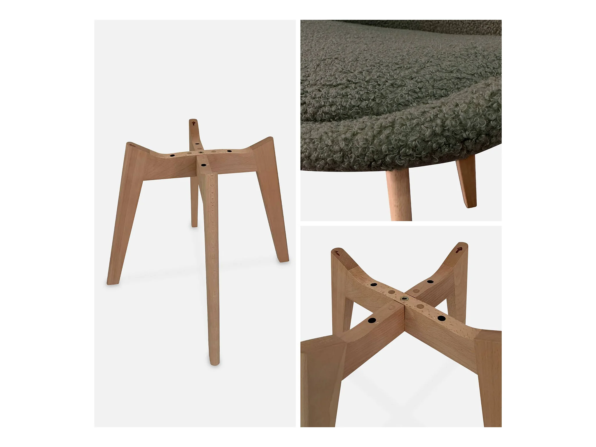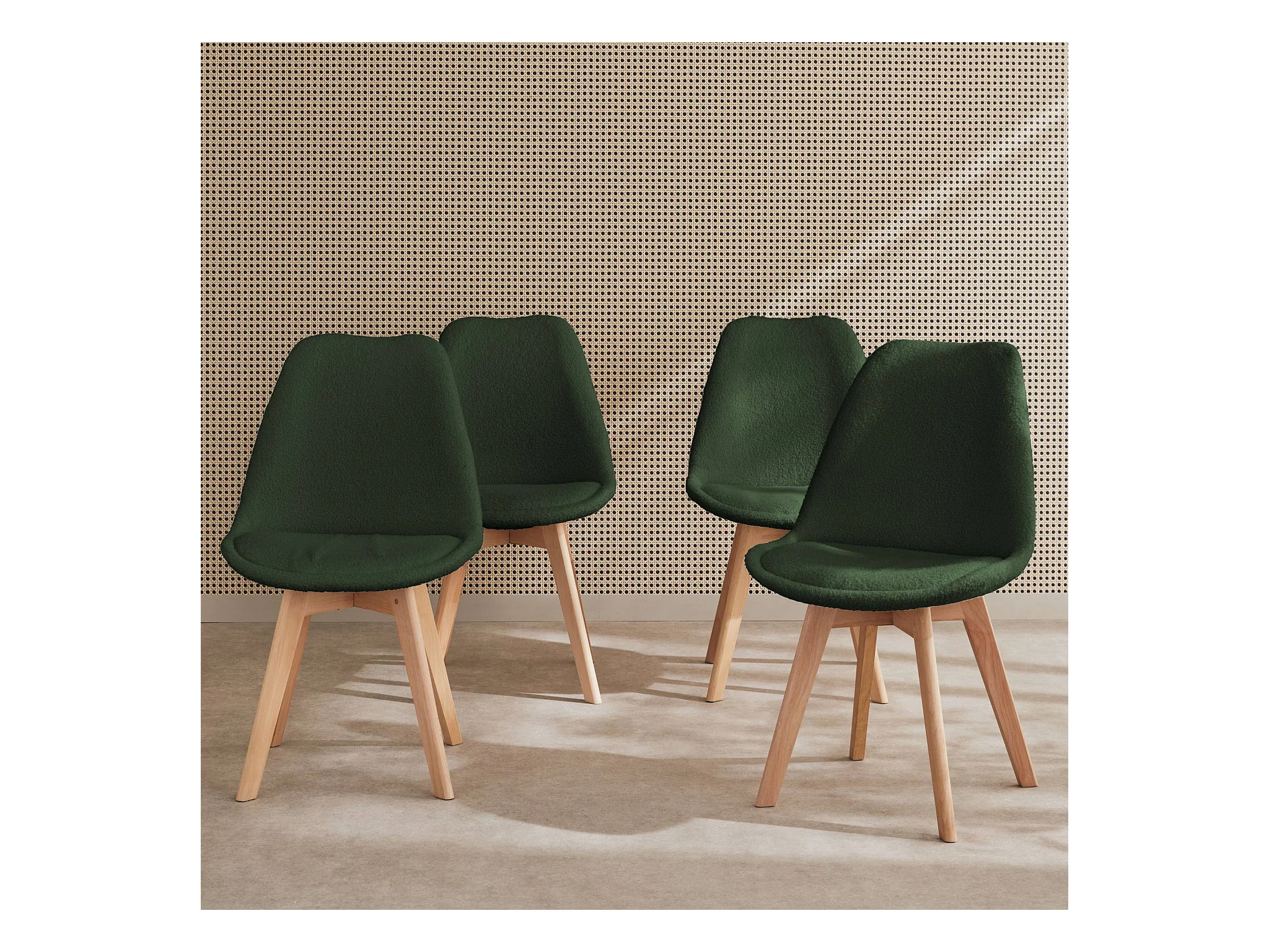 Lot de 4 chaises scandinaves NILS revêtement bouclette kaki. pieds bois de hêtre. chaise 1 place