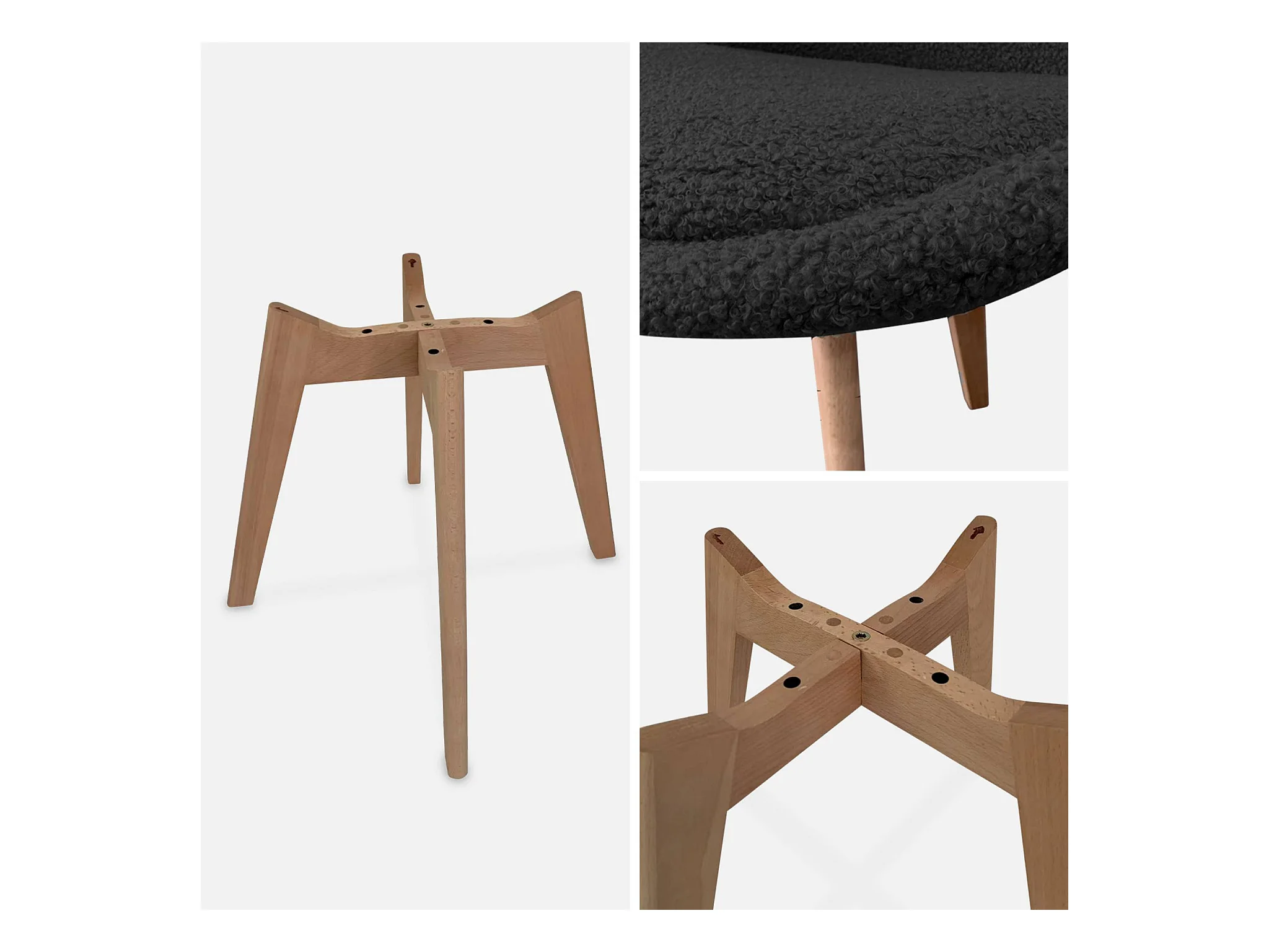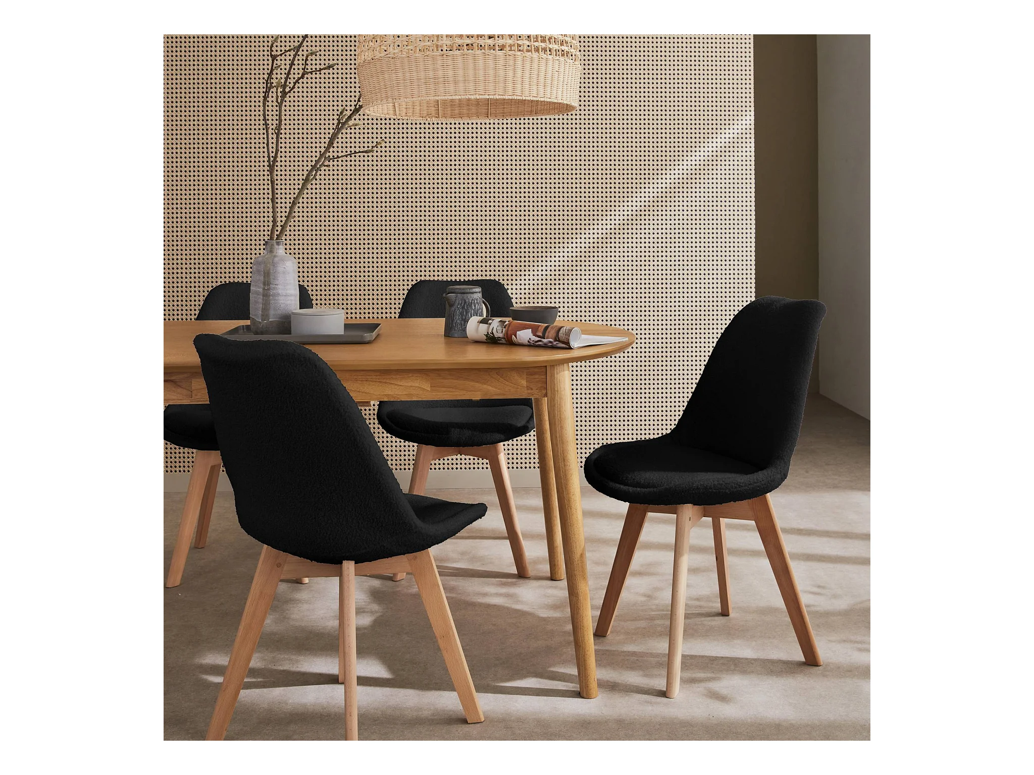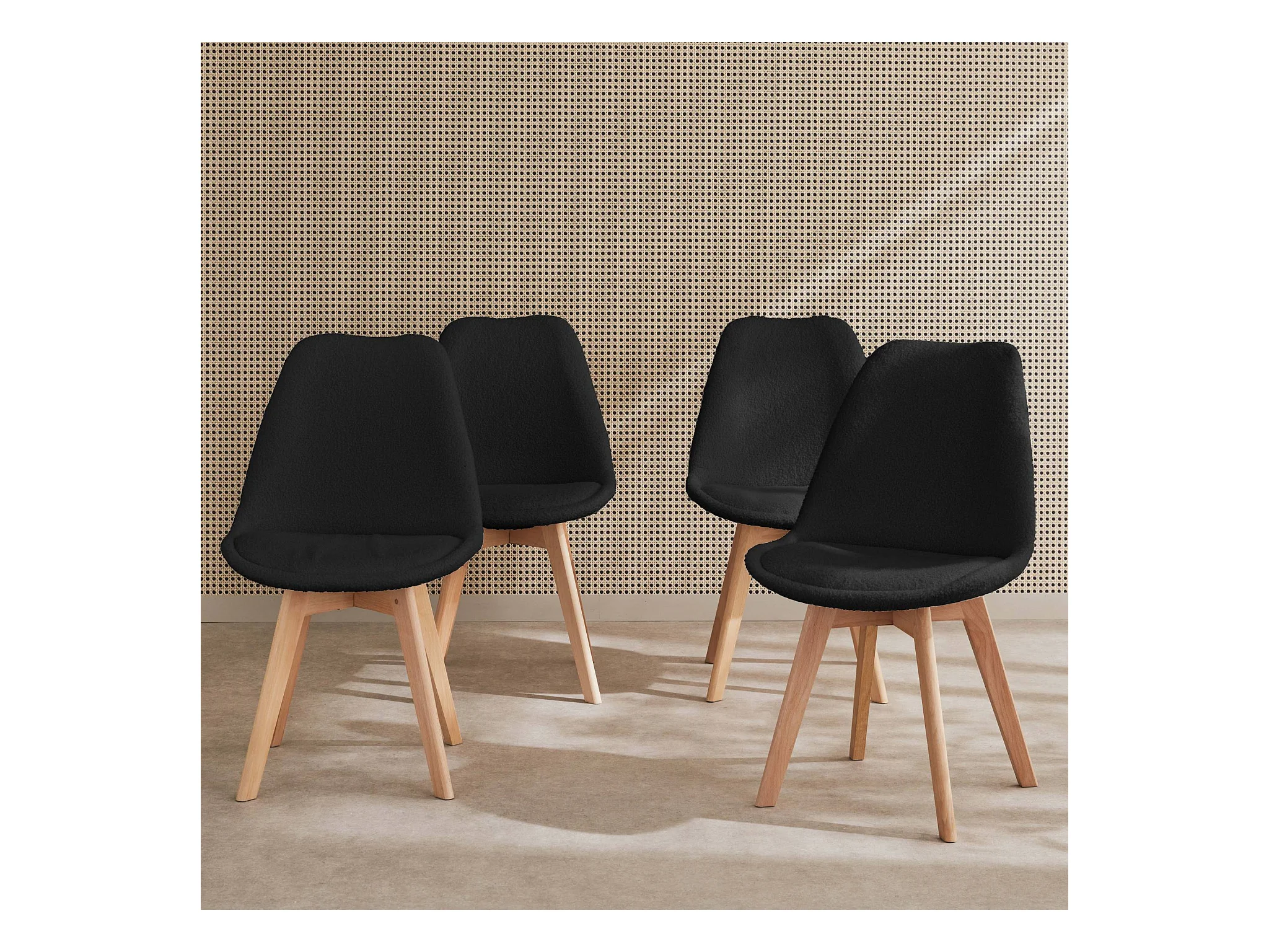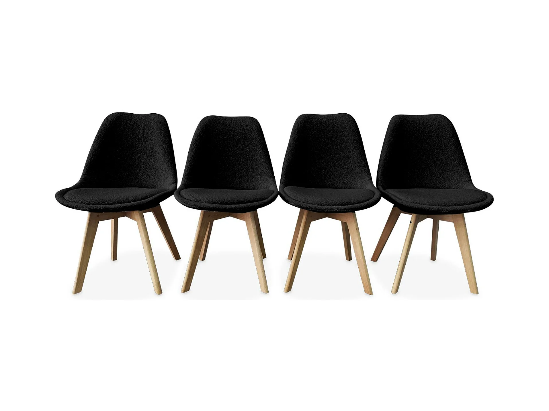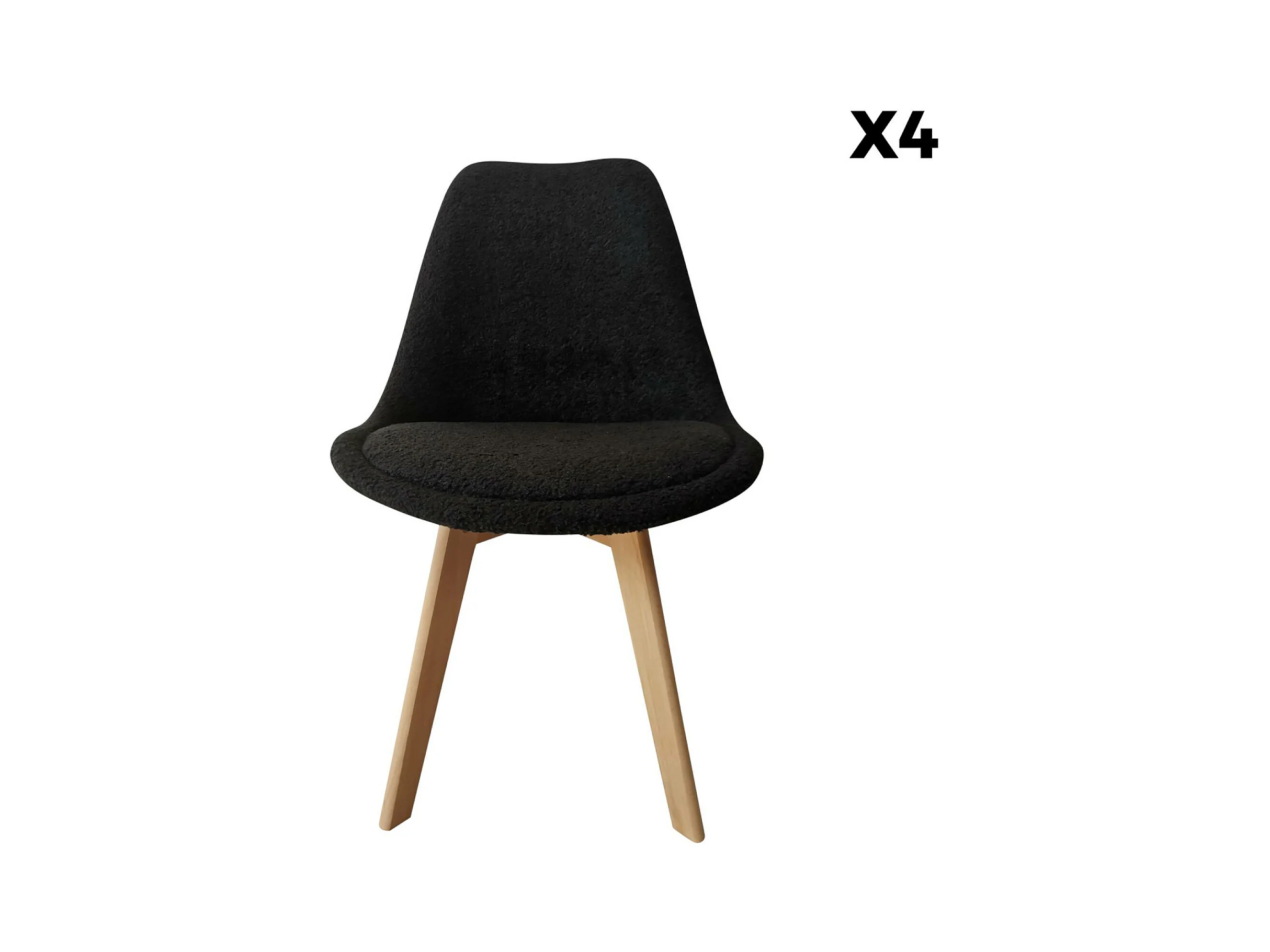 Lot de 4 chaises scandinaves NILS revêtement bouclette noire. pieds bois de hêtre. chaise 1 place