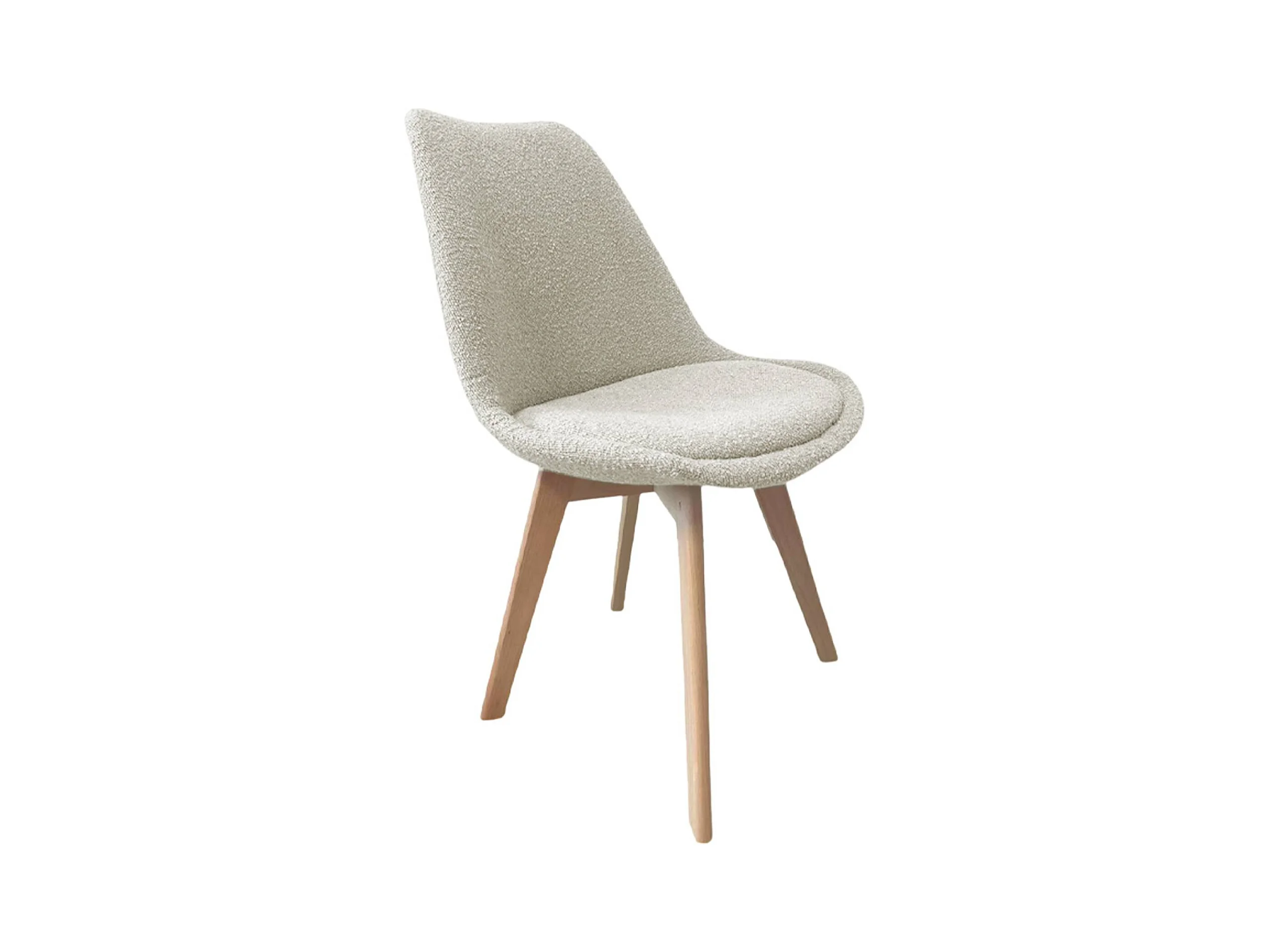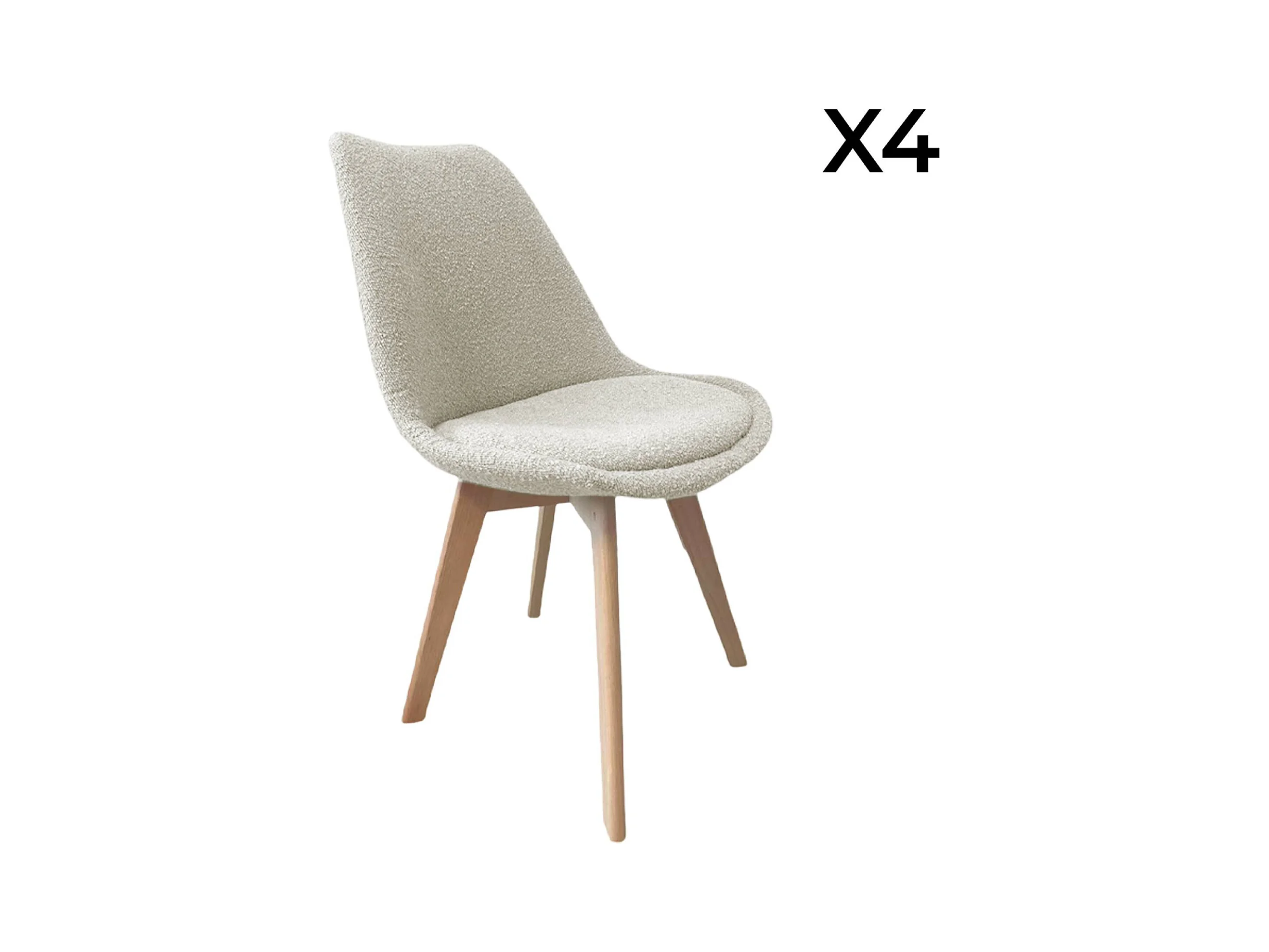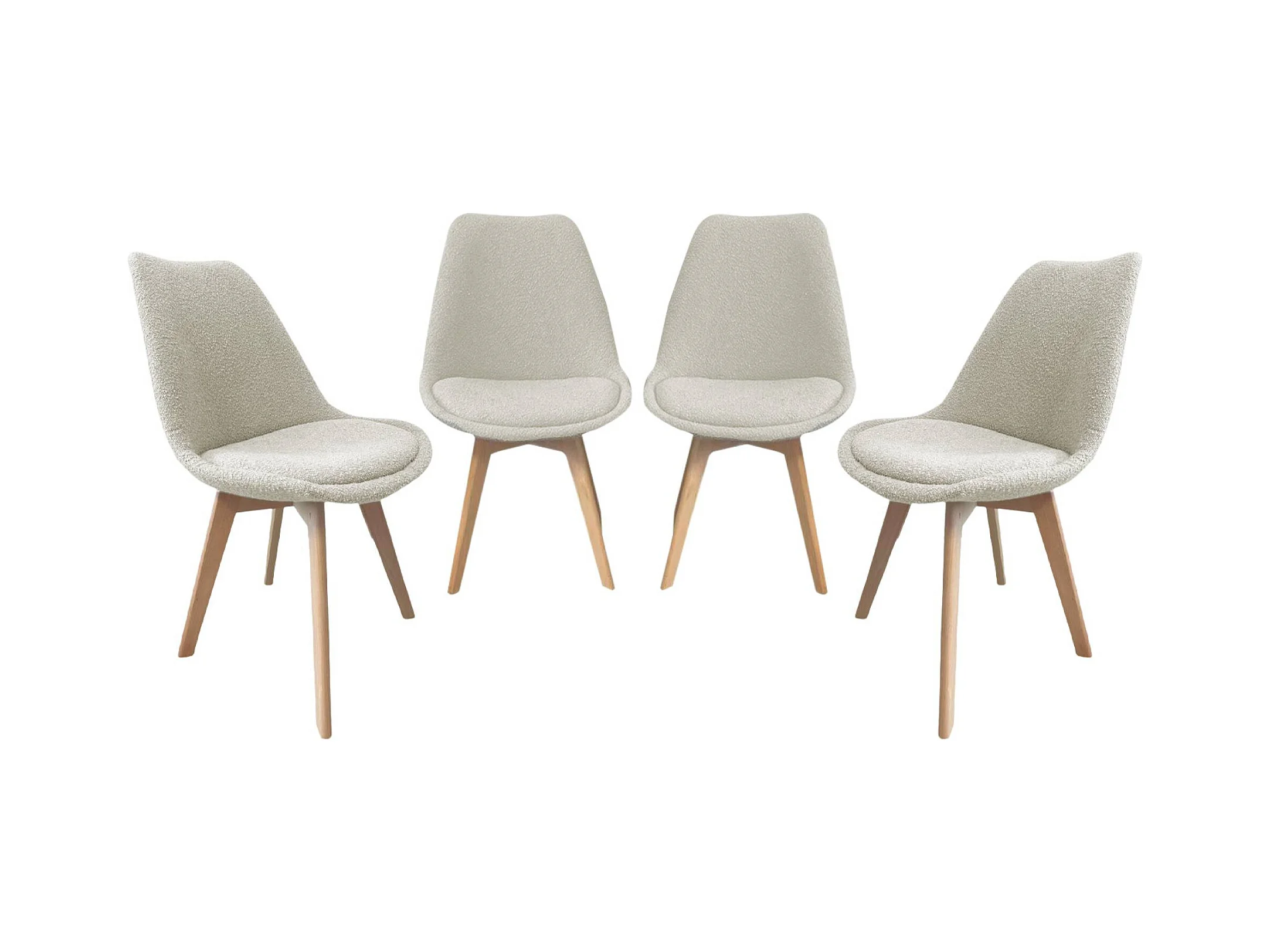 Lot de 4 chaises scandinaves revêtement bouclette texturée blanc. pieds bois de hêtre - Nils
