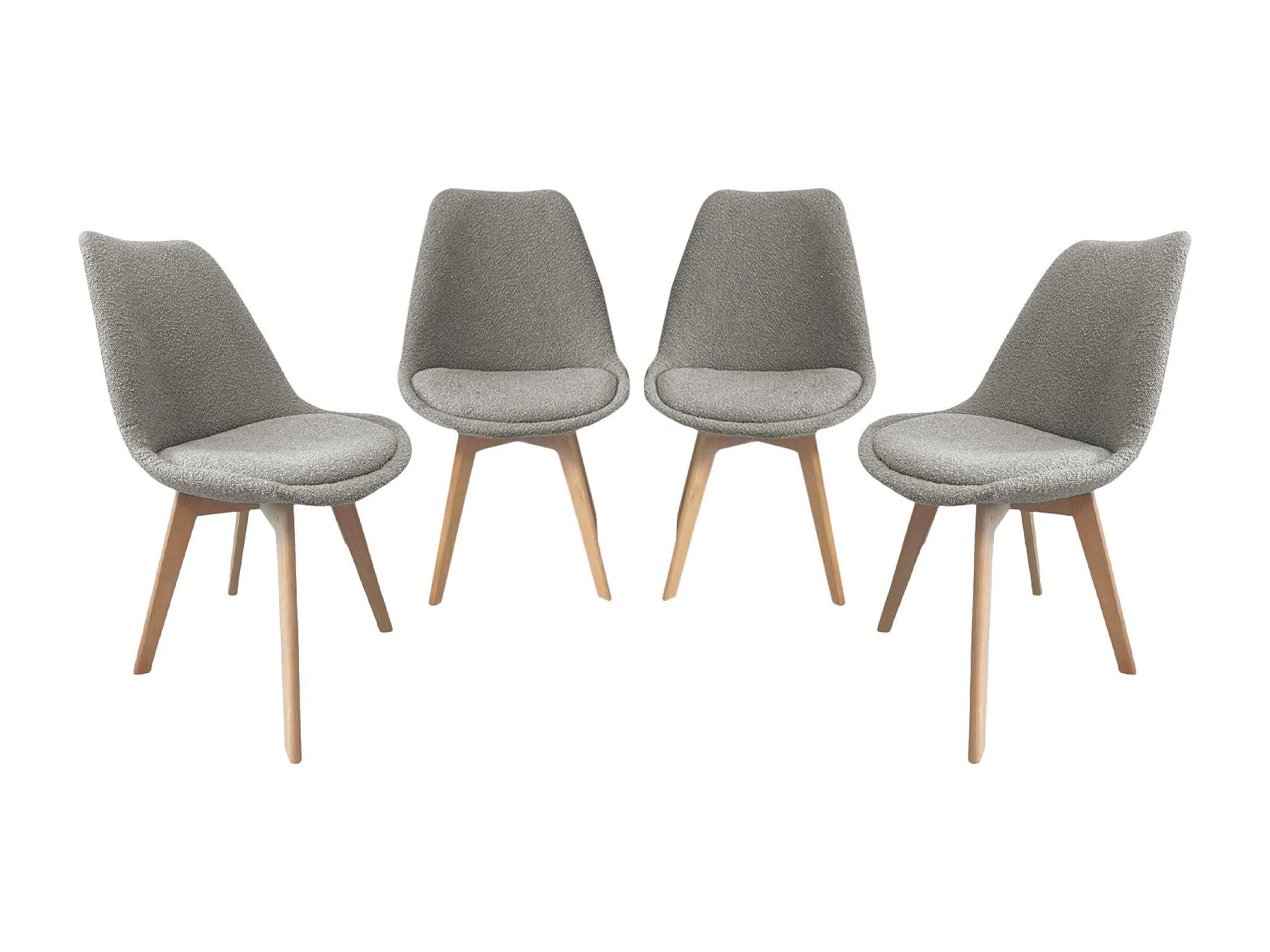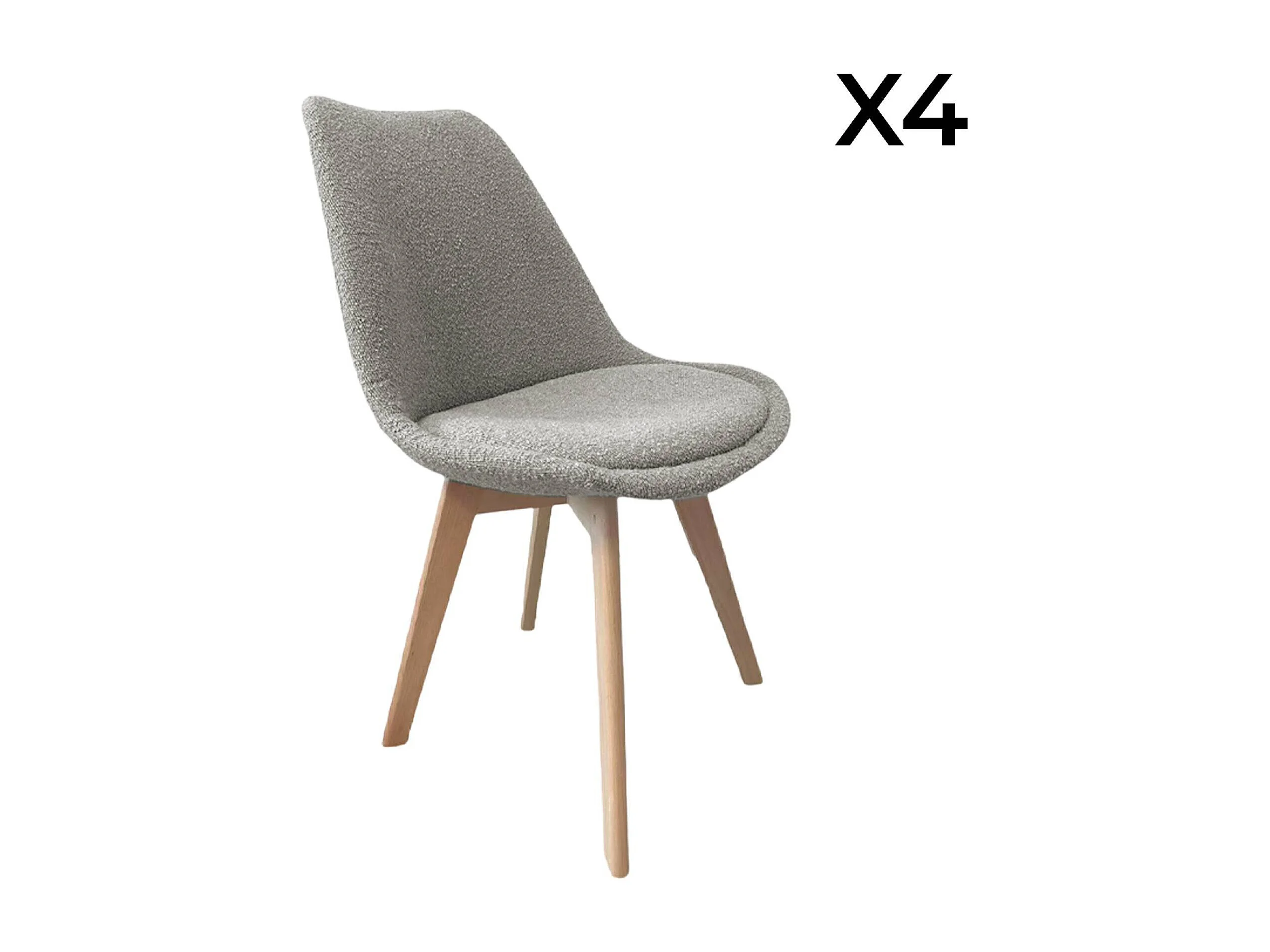 Lot de 4 chaises scandinaves revêtement bouclette texturée gris clair. pieds bois de hêtre - Nils