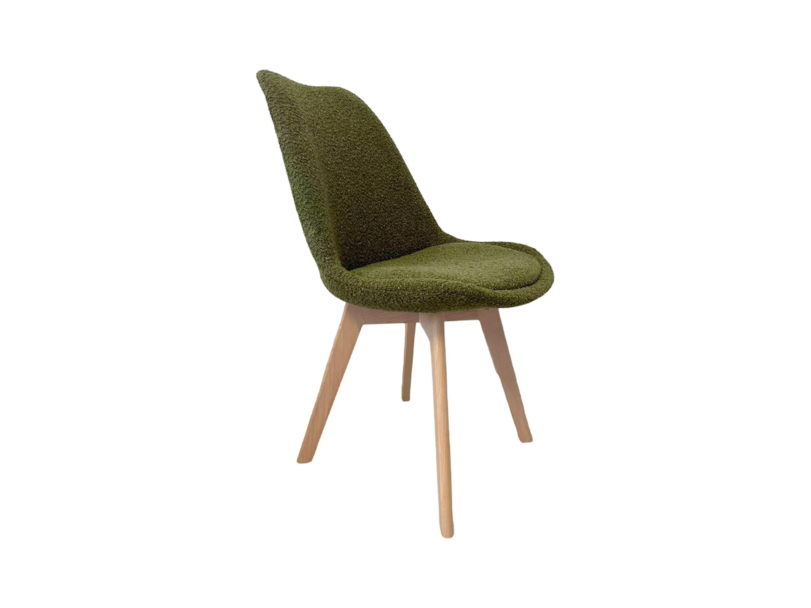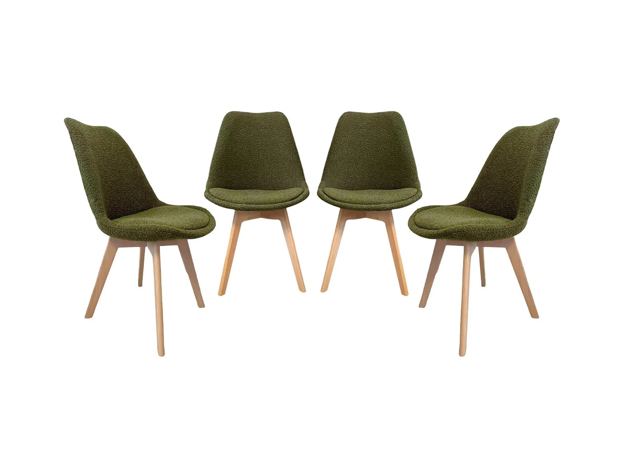 Lot de 4 chaises scandinaves revêtement bouclette texturée kaki. pieds bois de hêtre - Nils