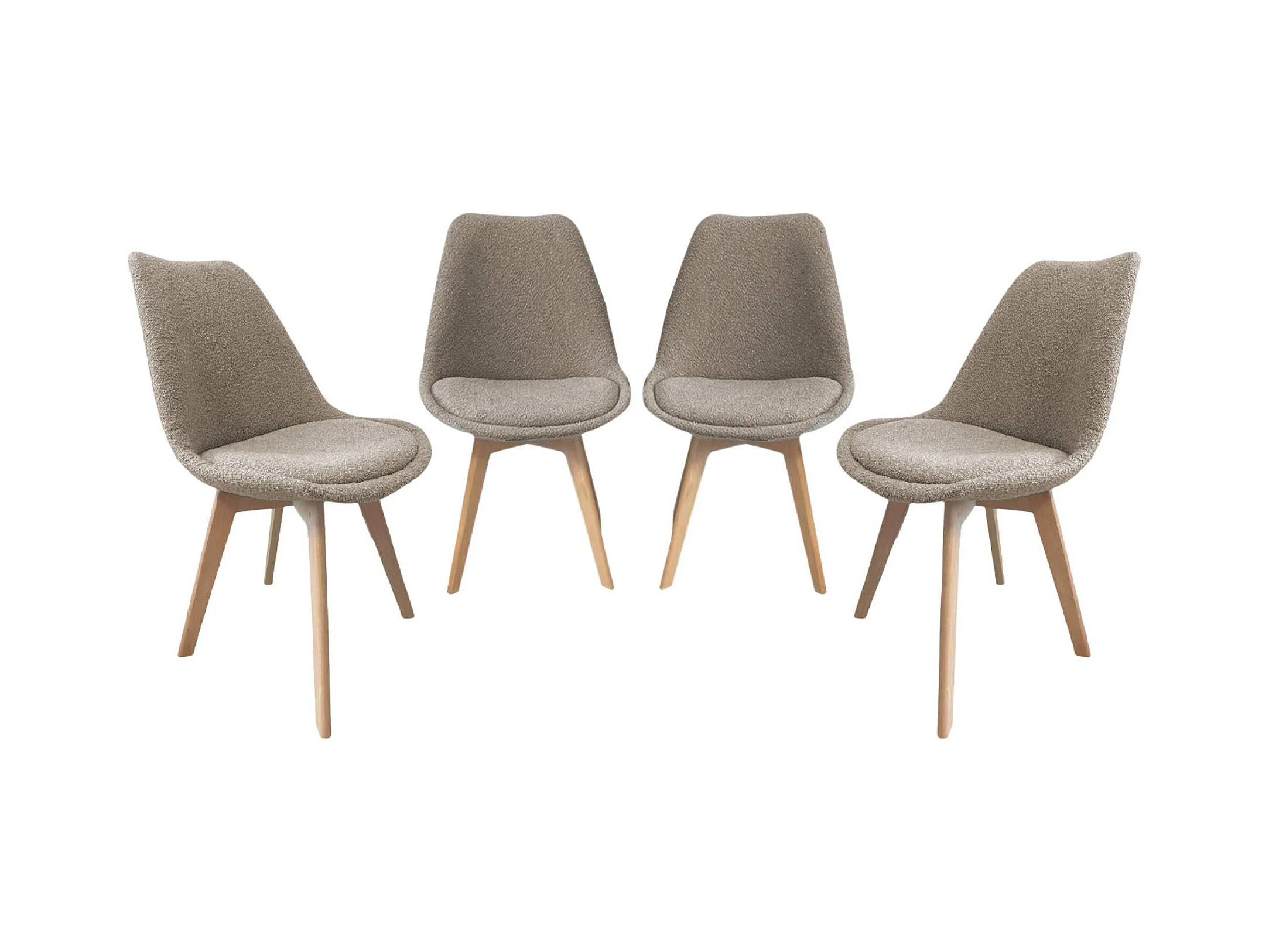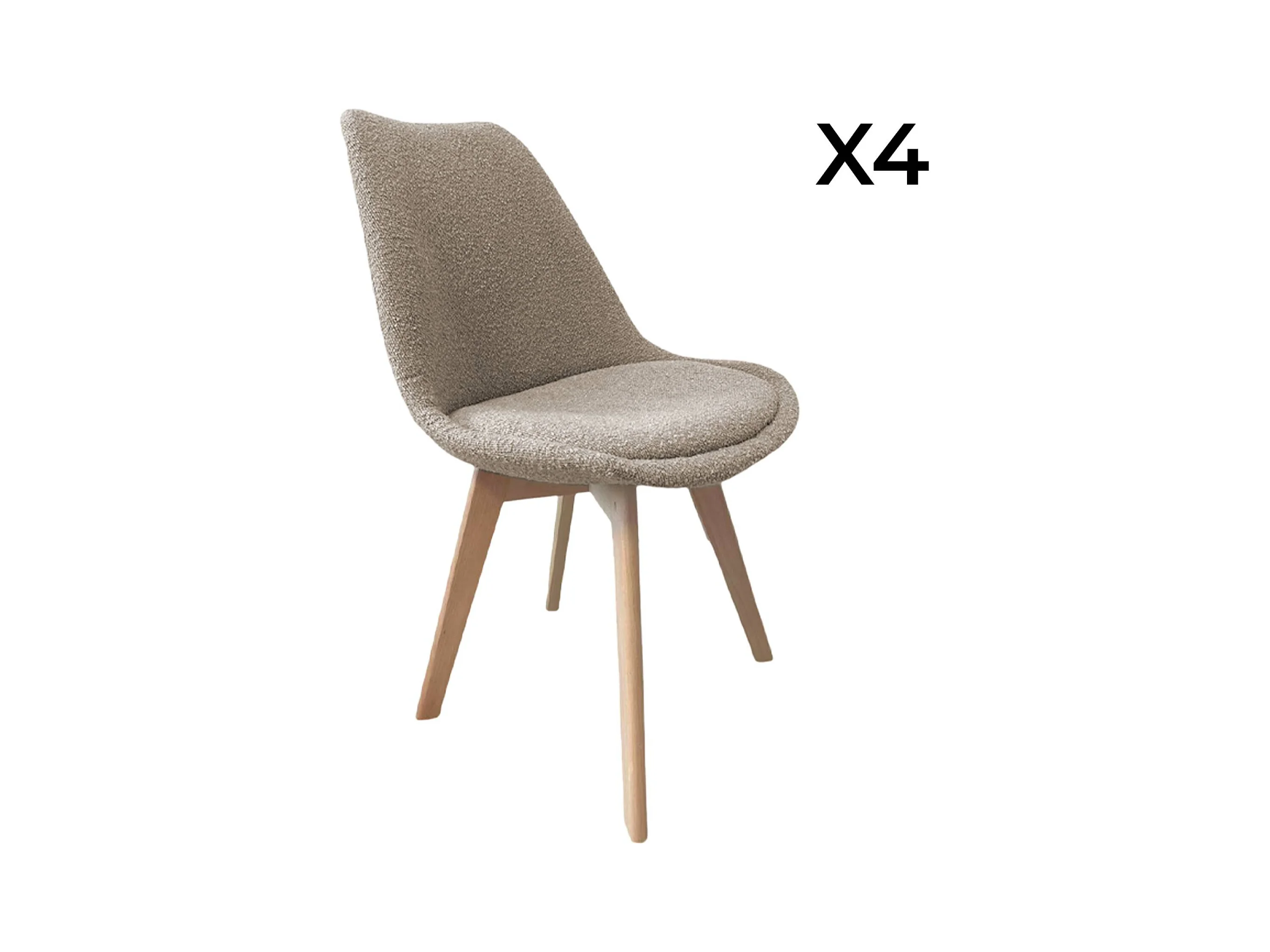Lot de 4 chaises scandinaves revêtement bouclette texturée taupe. pieds bois de hêtre - Nils