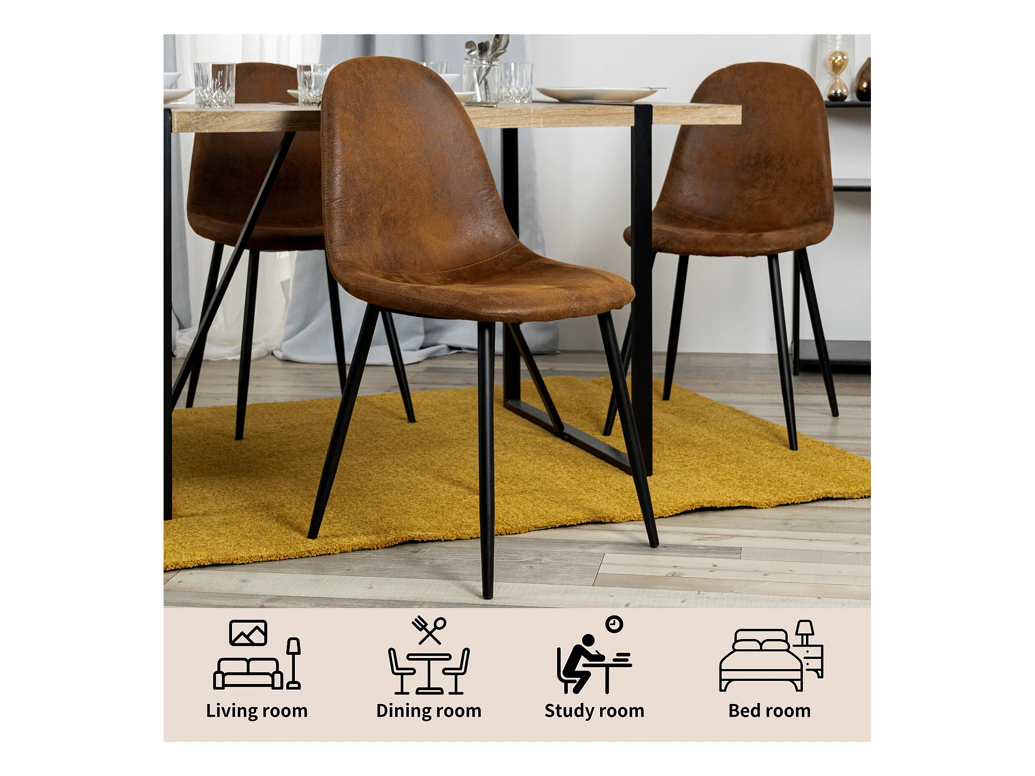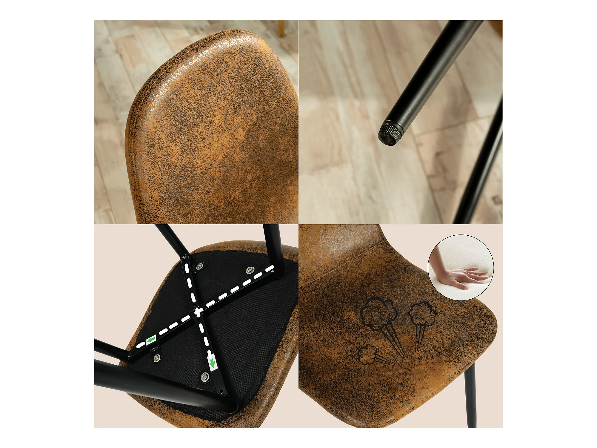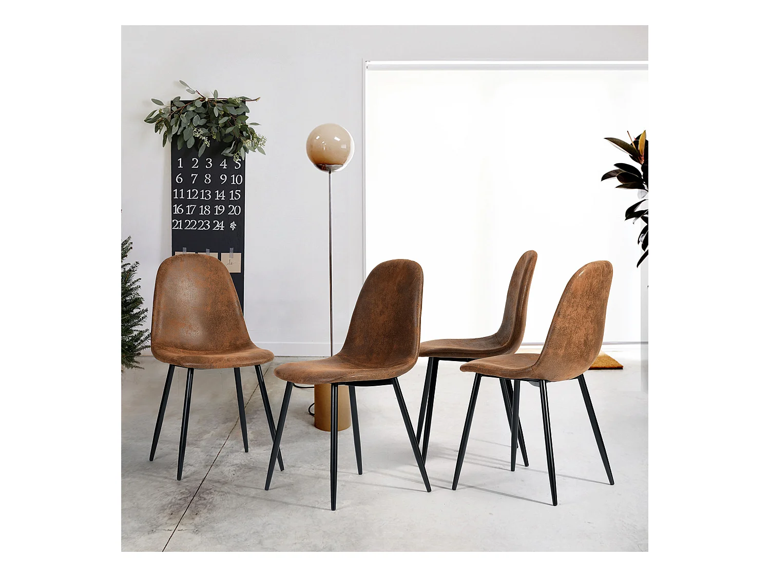 Lot de 4 chaises - Style vintage et design scandinave - En faux daim - Idéales pour cuisine - Marron