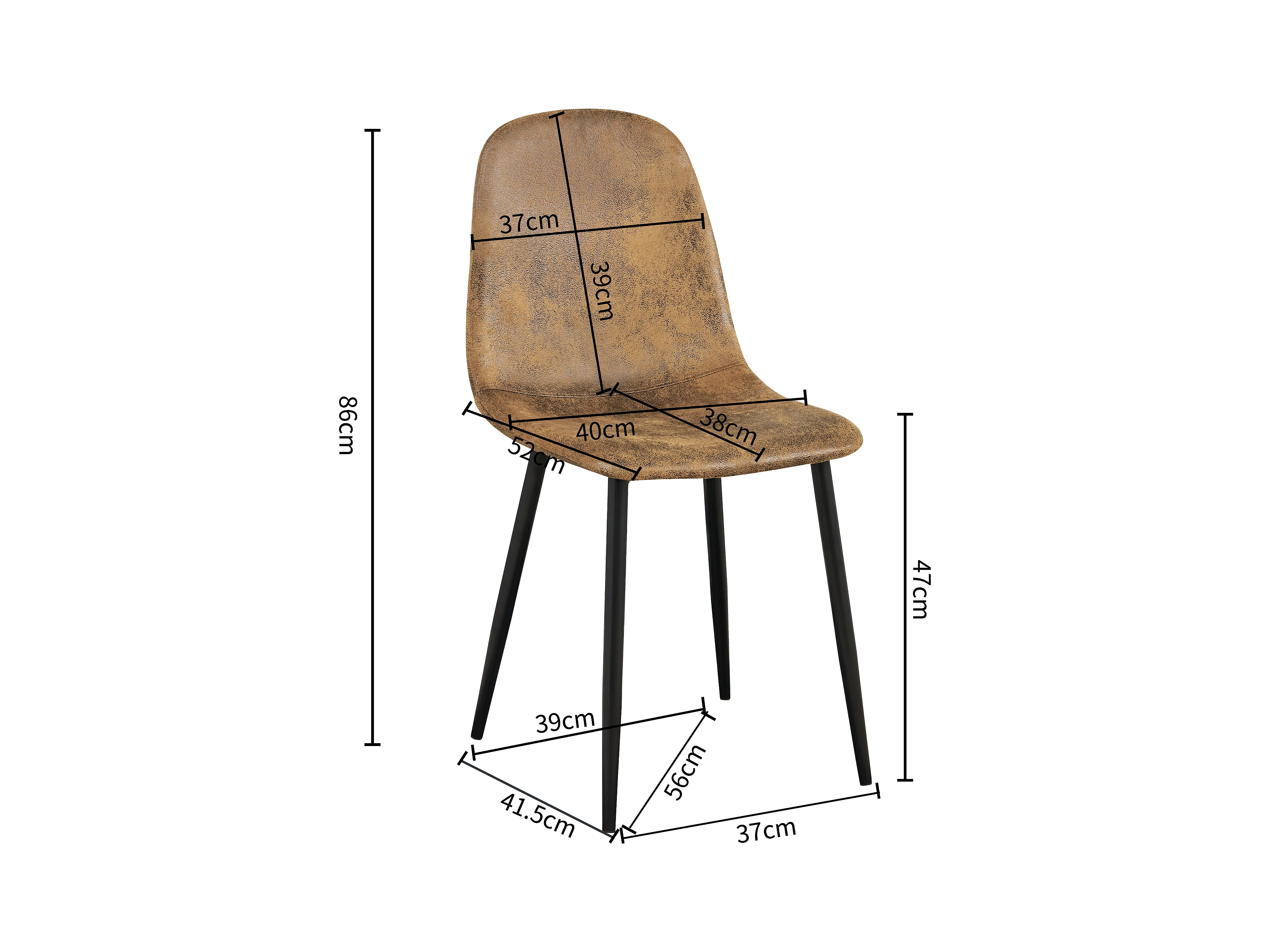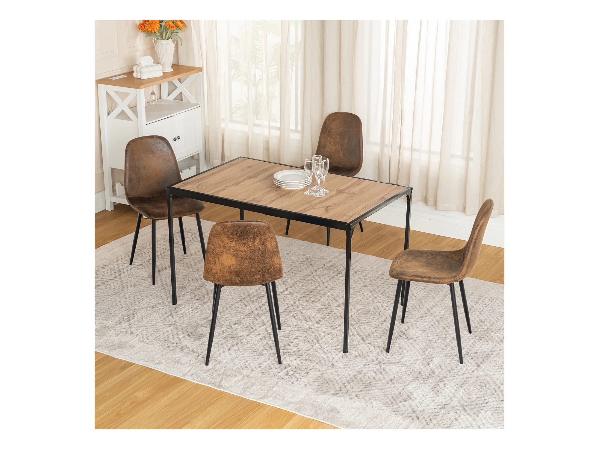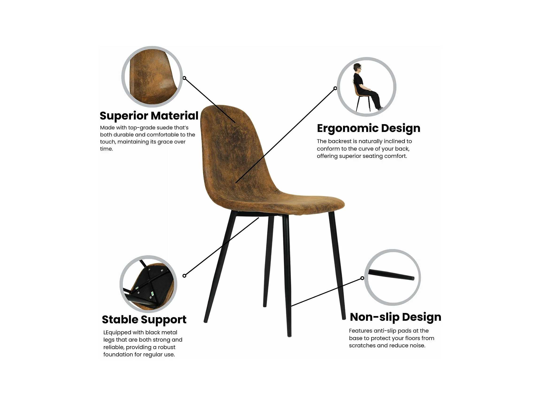 Lot de 4 chaises - Style vintage et design scandinave - En faux daim - Idéales pour cuisine - Marron
