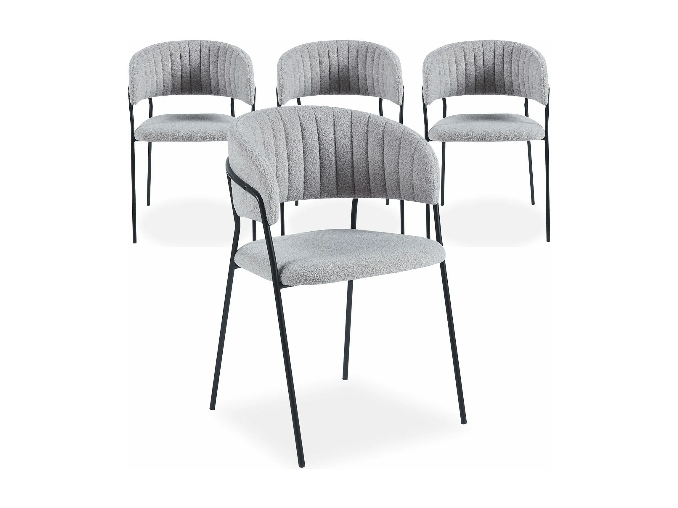 Lot de 4 chaises Tabata Métal Noir et Tissu bouclette Gris