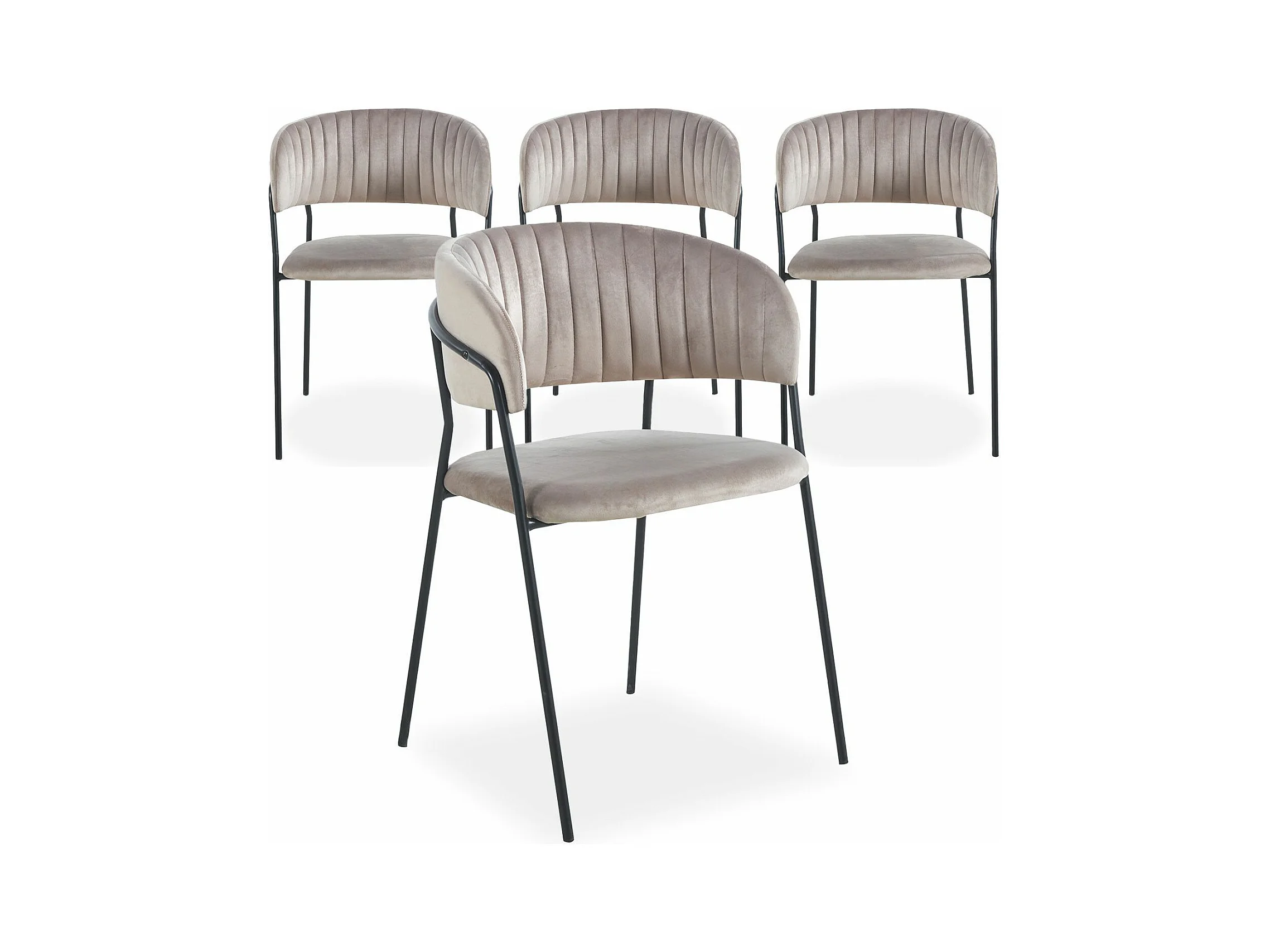 Lot de 4 chaises Tabata Métal Noir et Velours Taupe