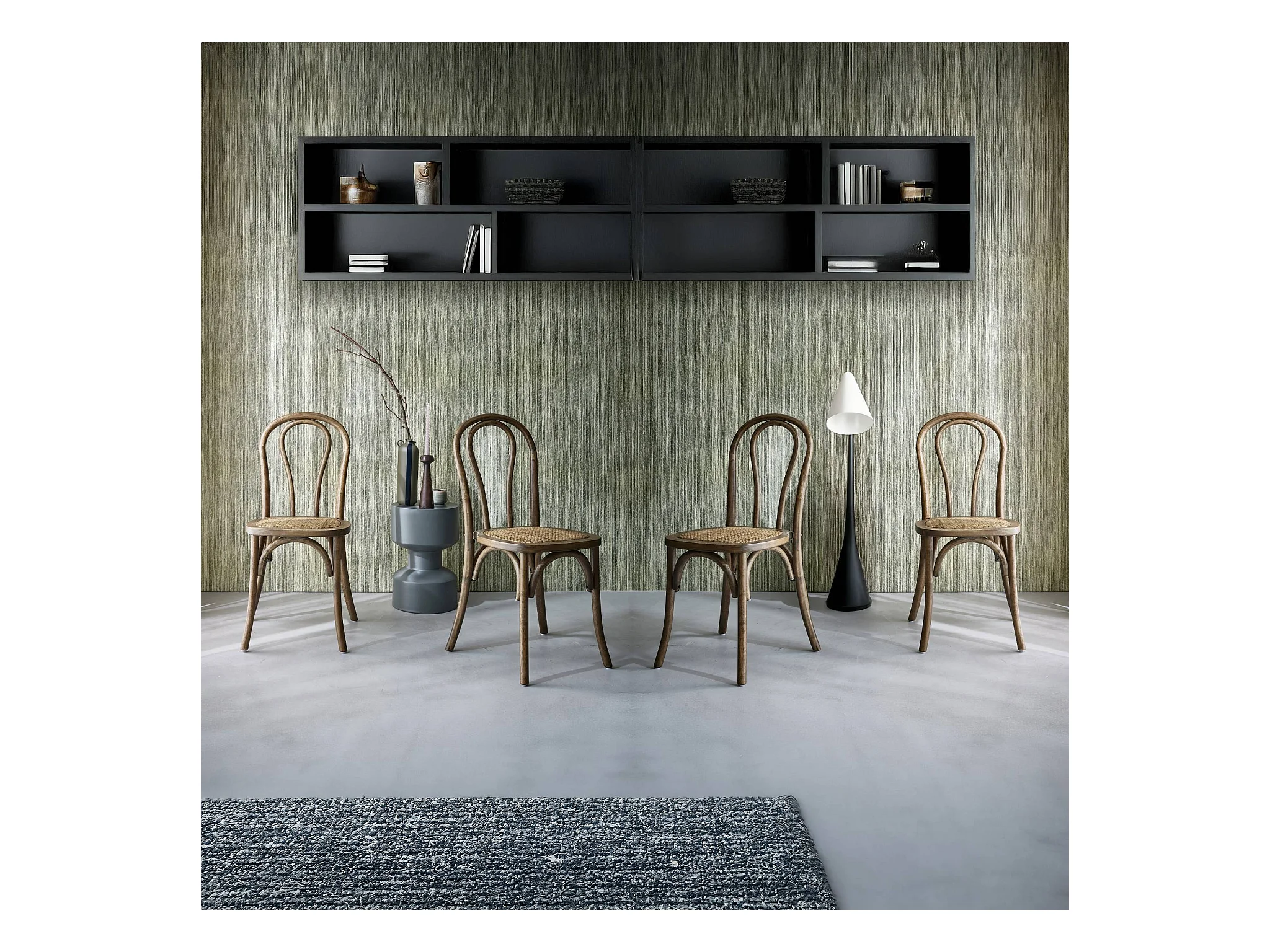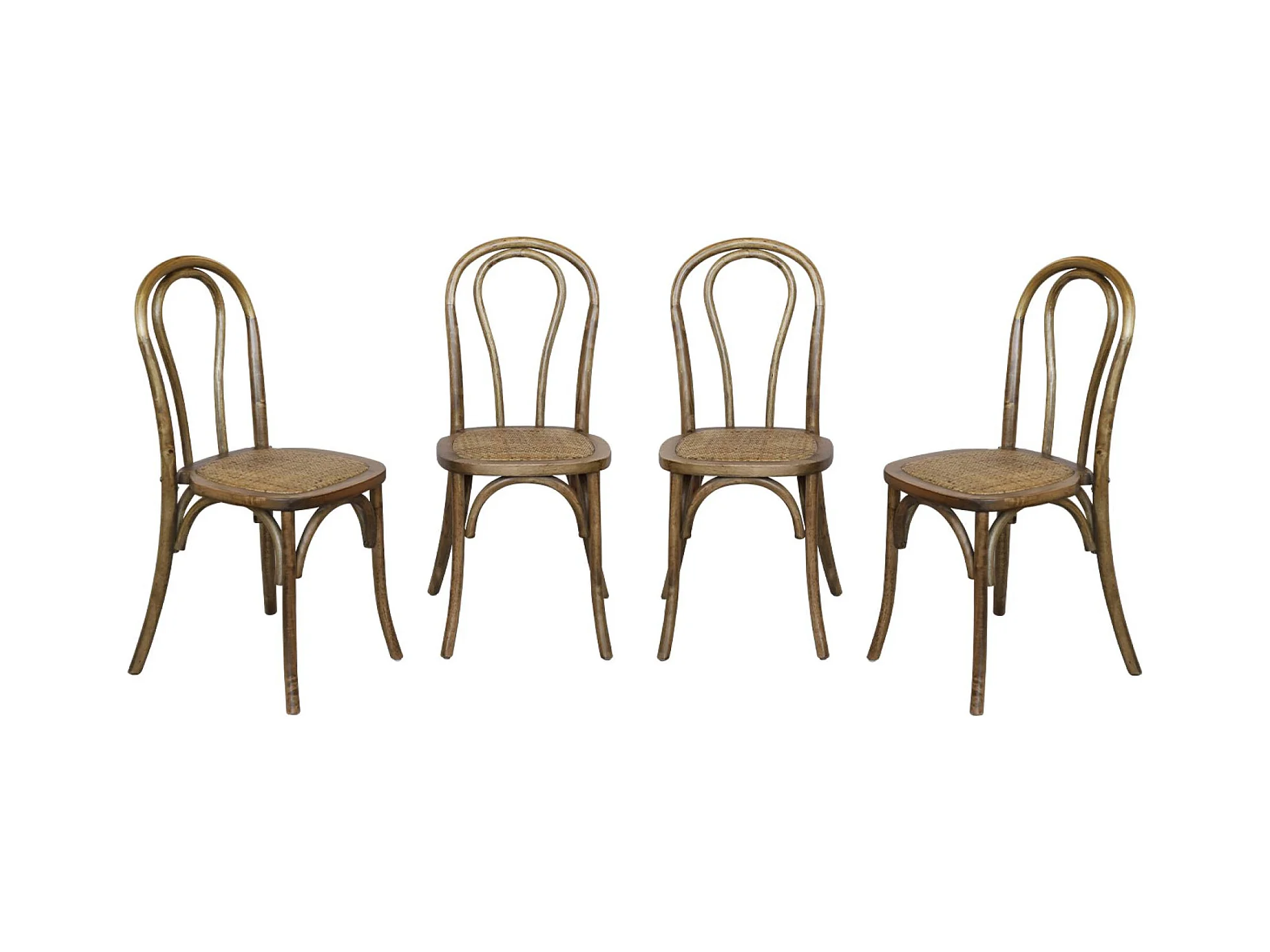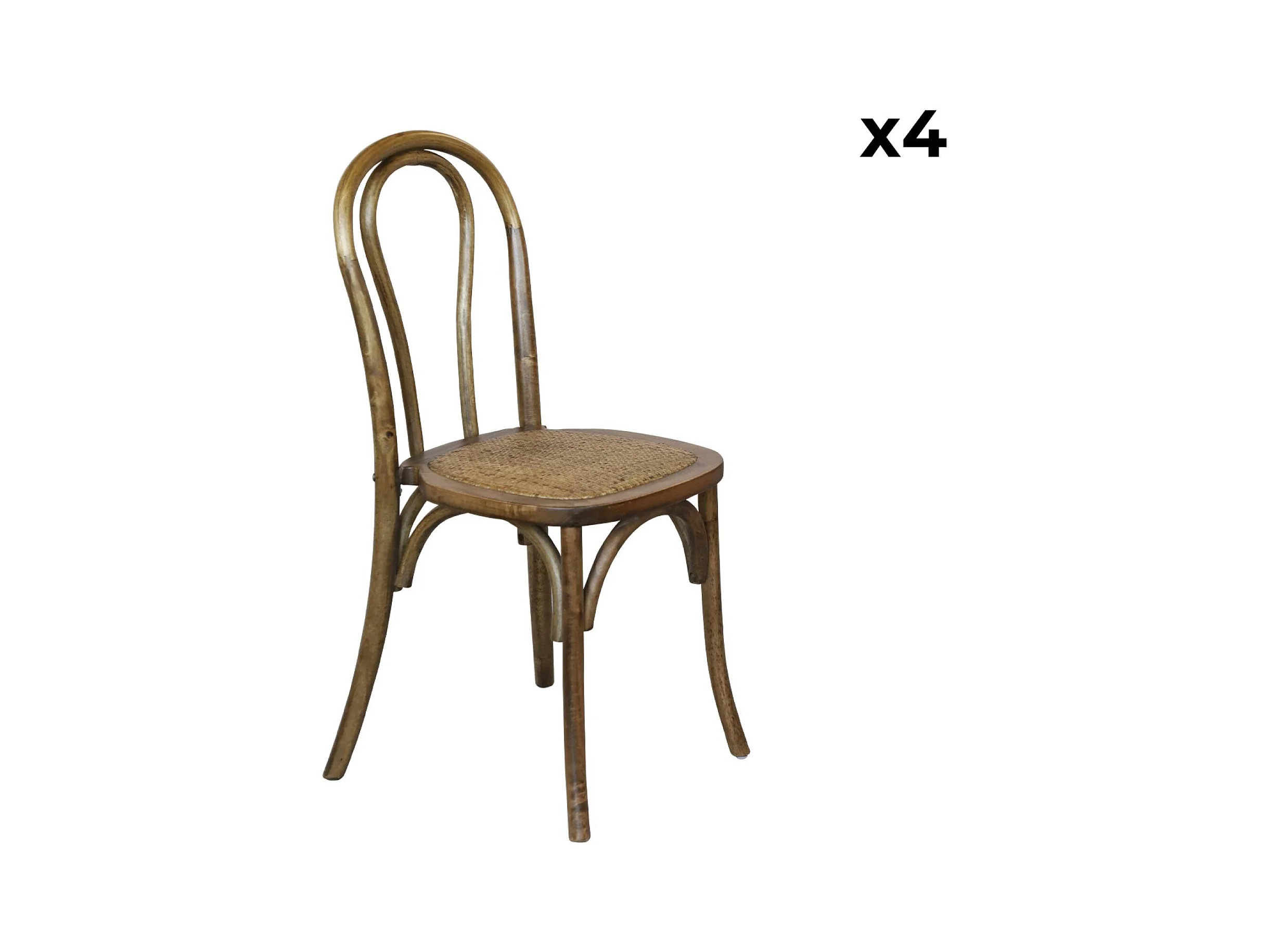 Lot de 4 chaises vintage en bois avec assise en rotin et dossier arrondi. coloris marron vieilli. L 48 x P 49.5 x H 90cm