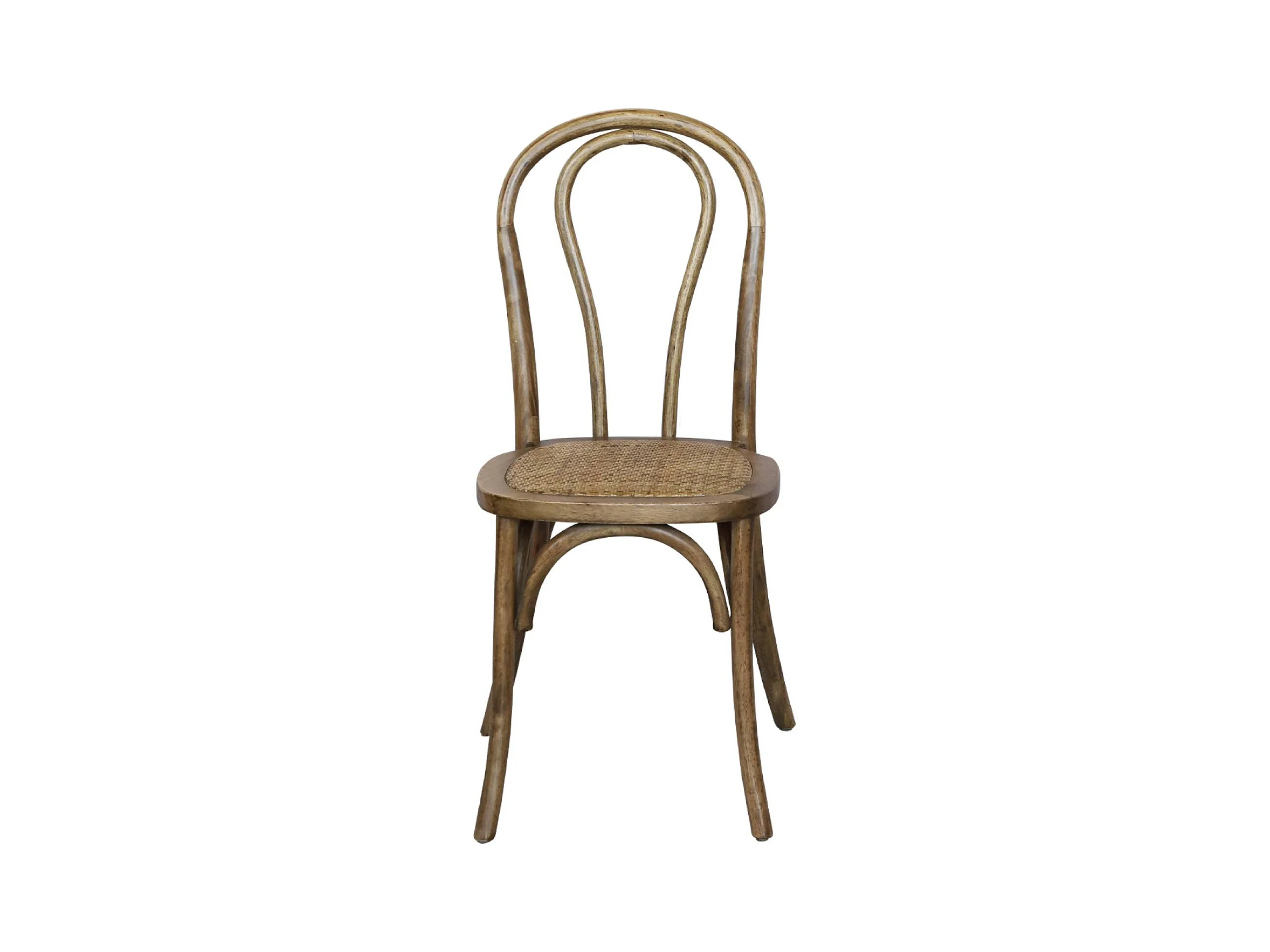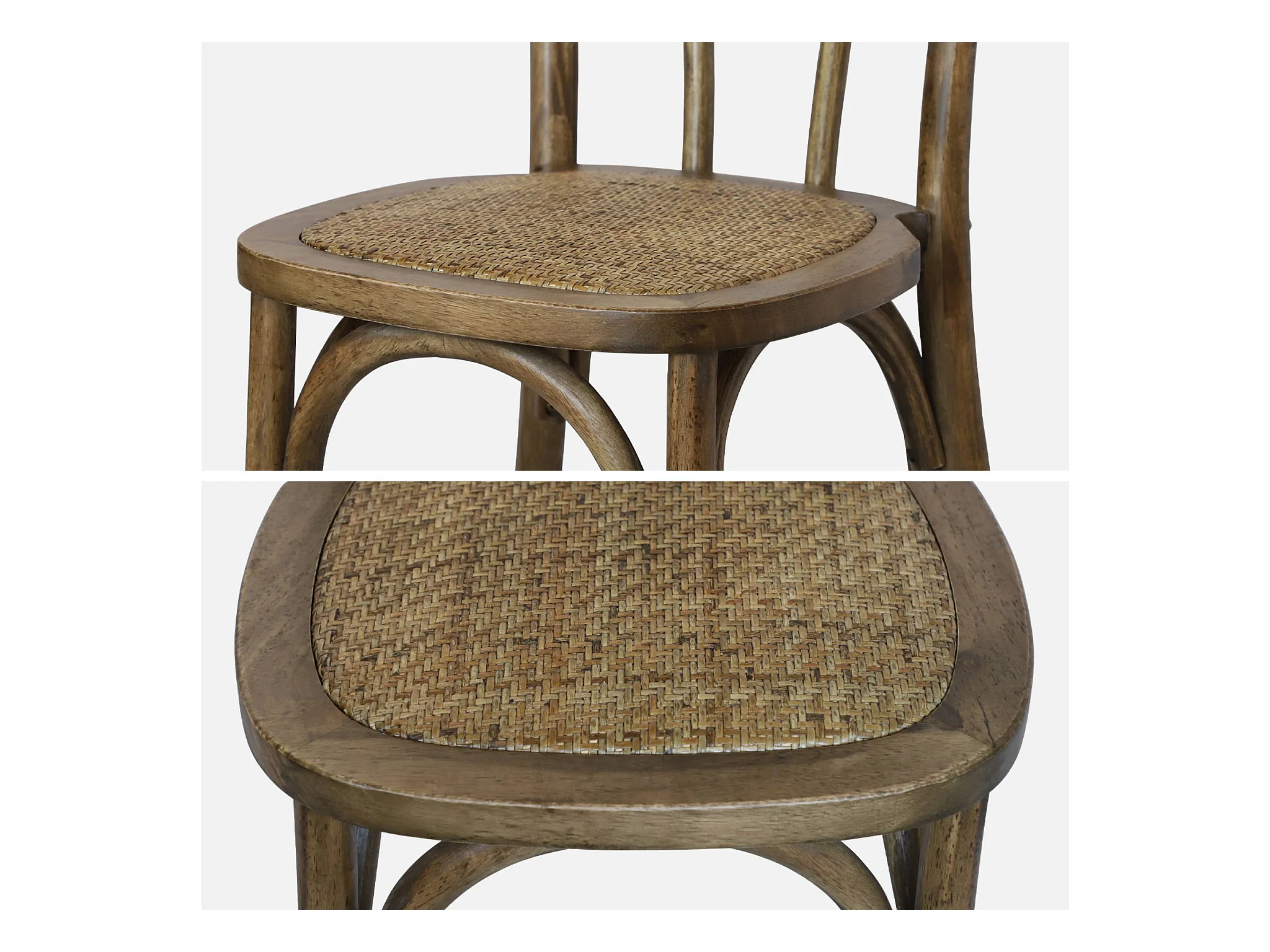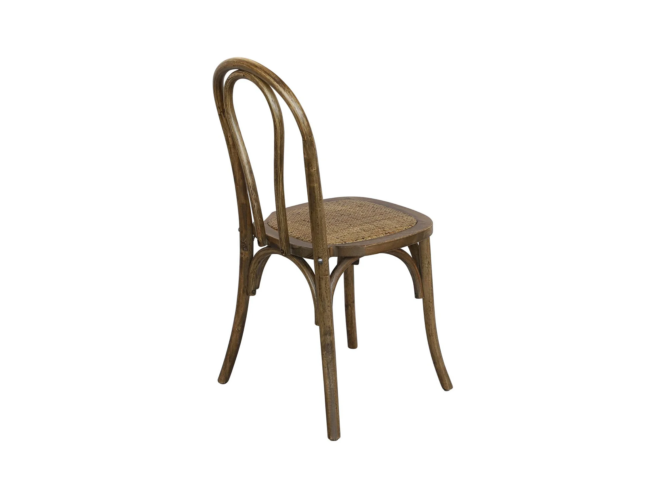 Lot de 4 chaises vintage en bois avec assise en rotin et dossier arrondi. coloris marron vieilli. L 48 x P 49.5 x H 90cm
