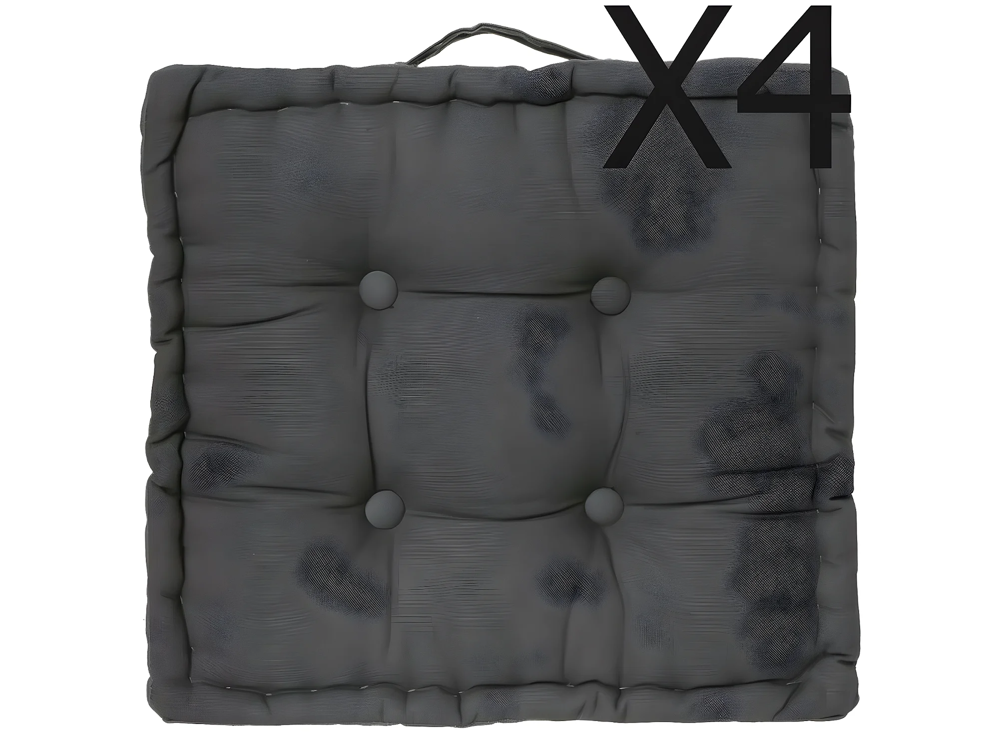 Lot de 4 Coussins de sol en coton très tendance, Coloris Gris Foncé , 40 x 40 x H8 cm