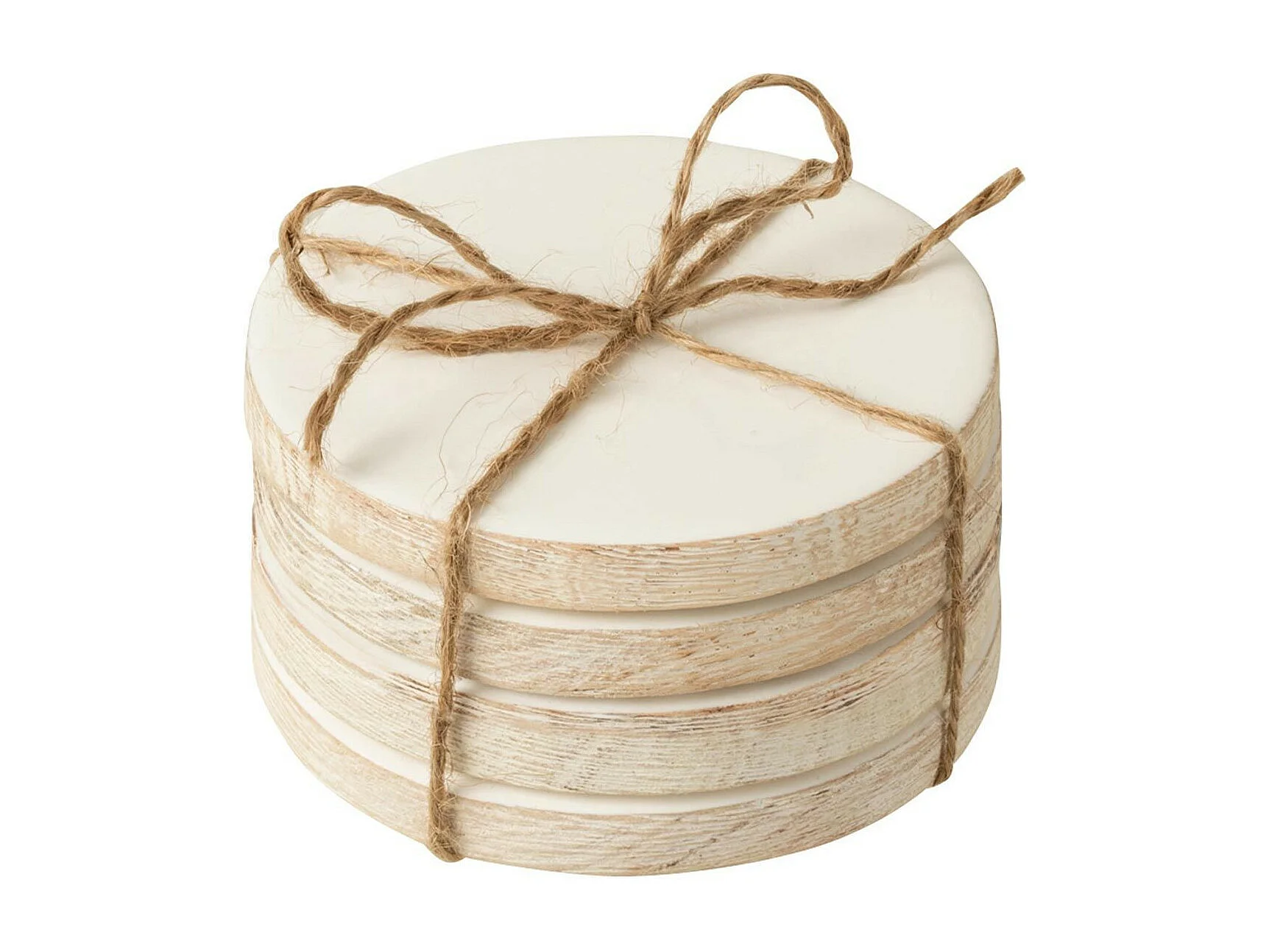 Lot de 4 Dessous de Verre "Manguier" 10cm Blanc