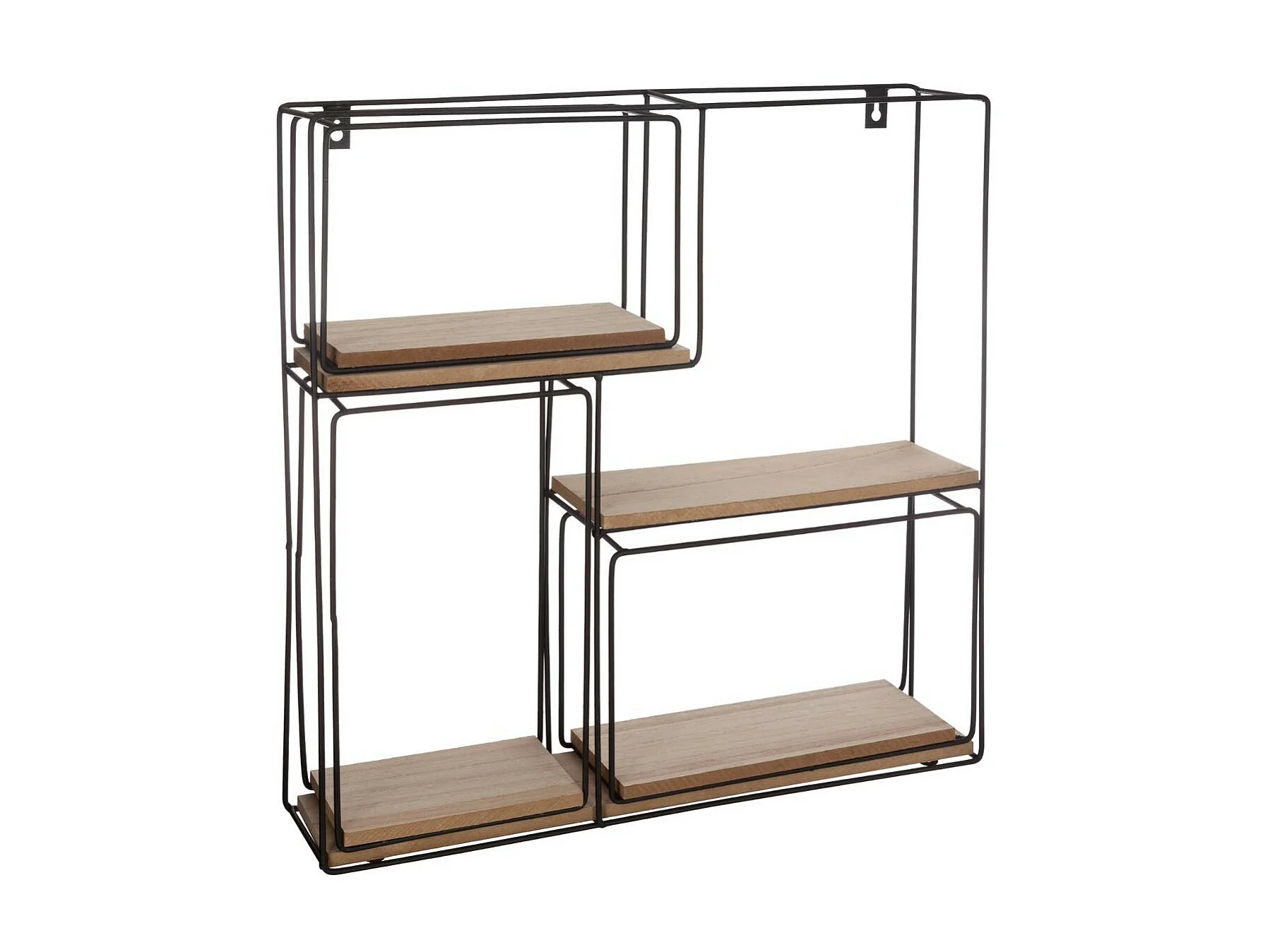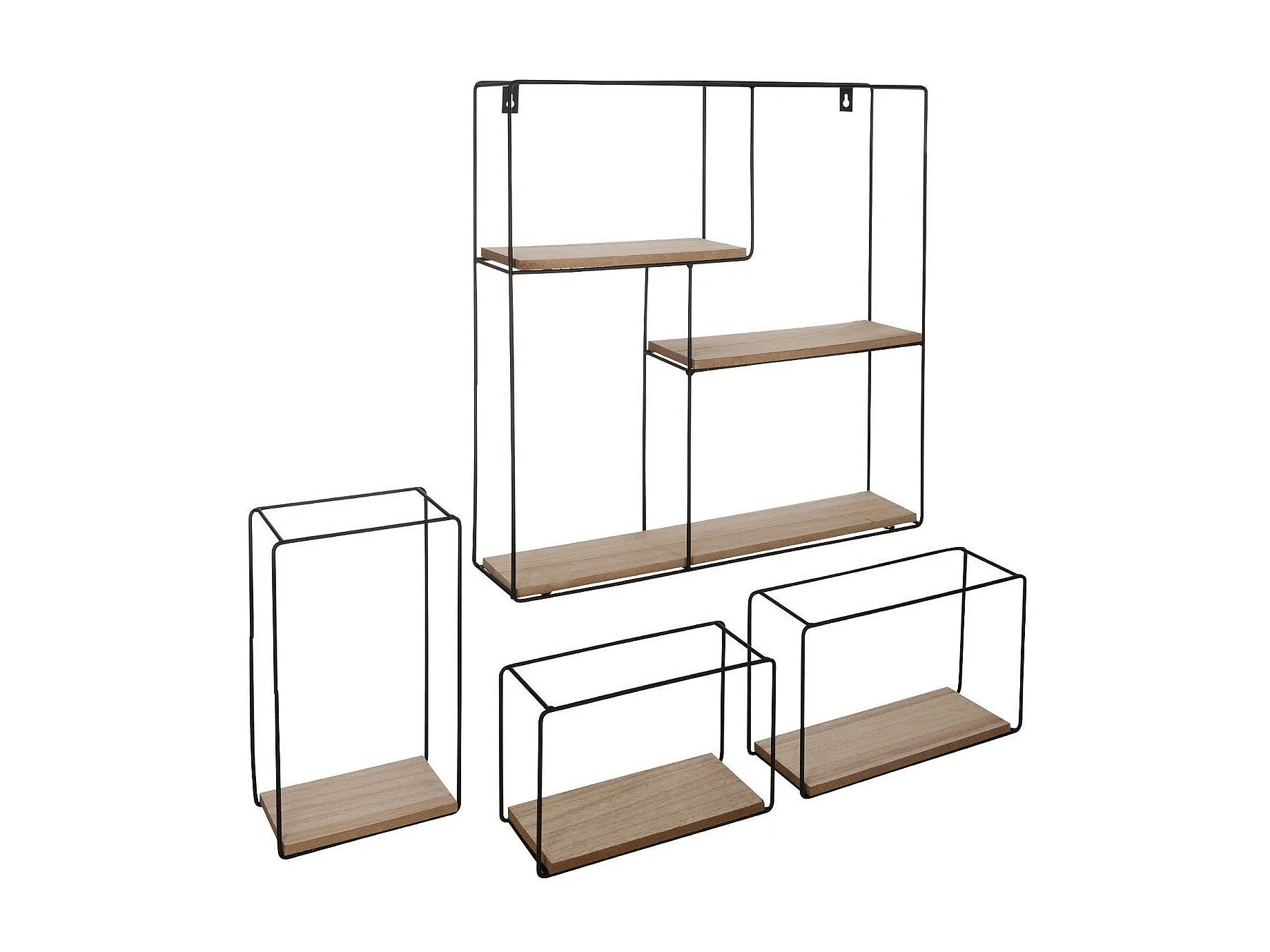 Lot de 4 Étagères murales en Bois et Métal Noir