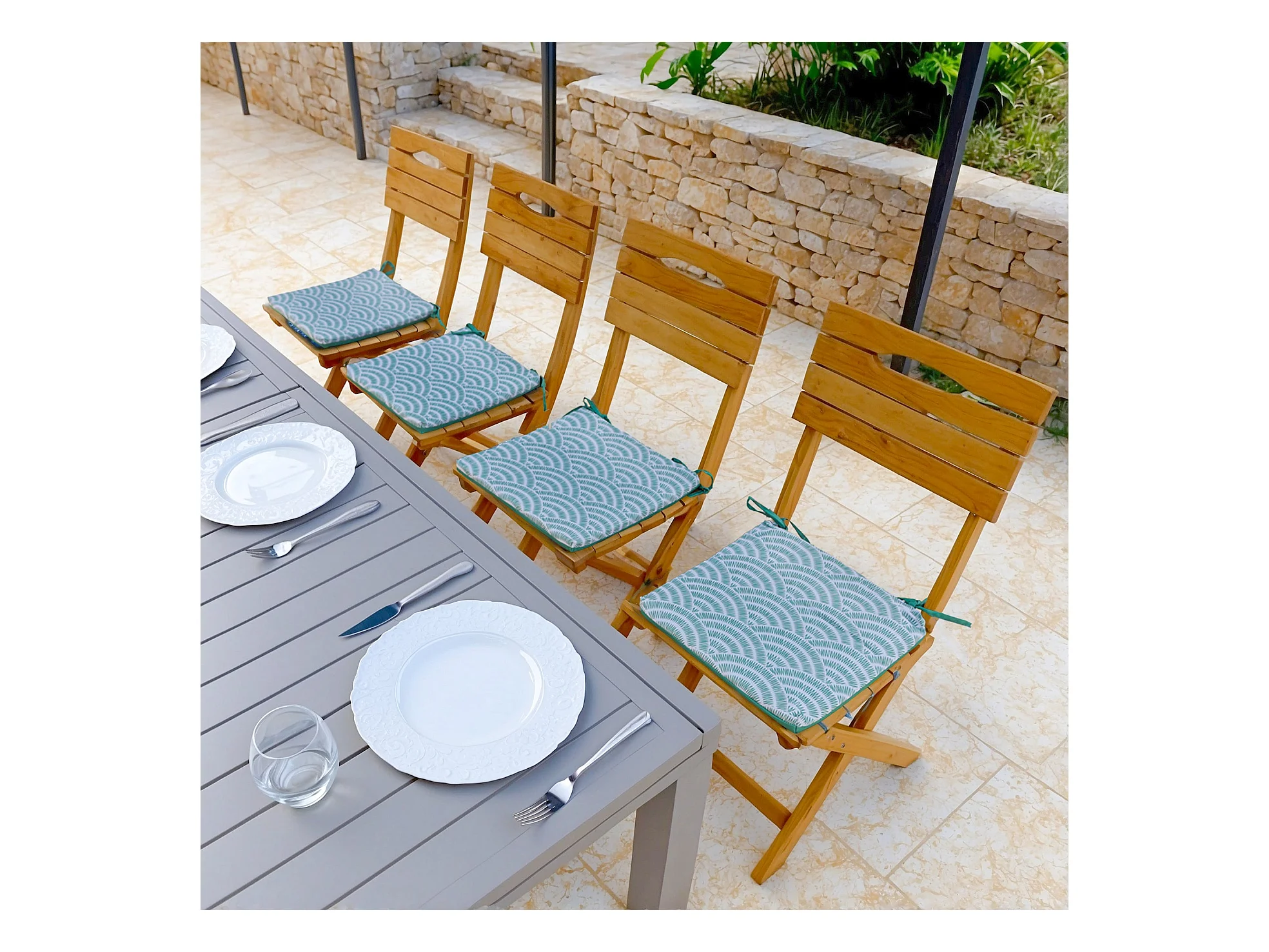 Lot de 4 Galettes de Chaise 35x35x3 cm motif Éventails Verts