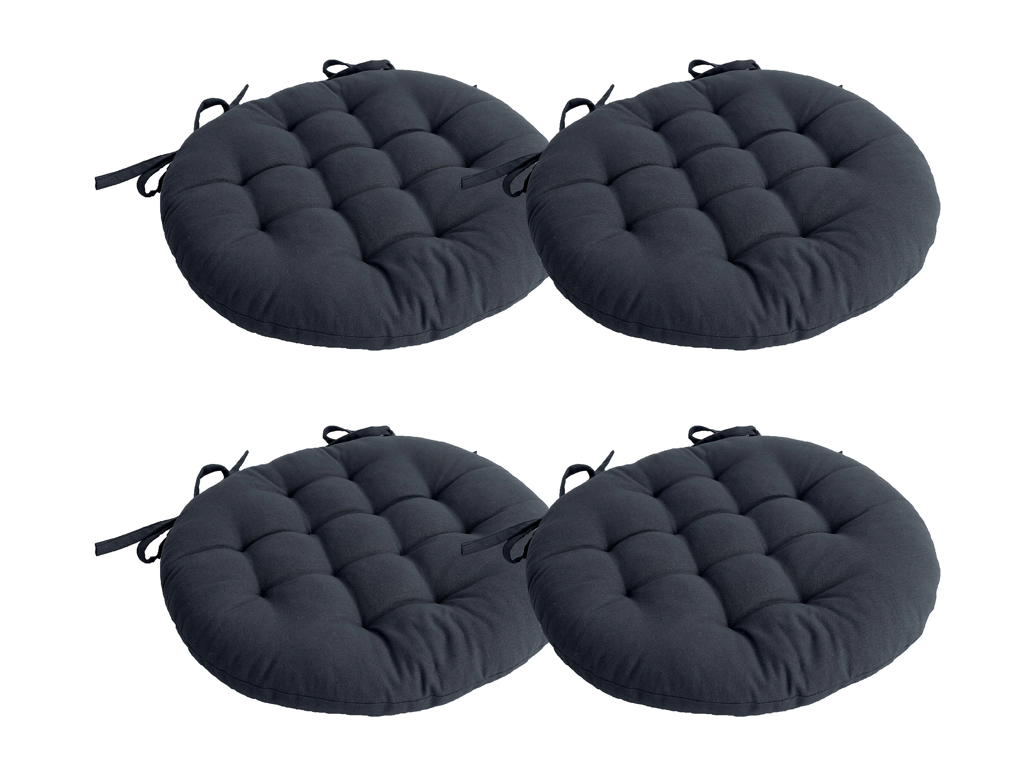 Lot de 4 galettes piquées, ronde 38cm, gris foncé, avec nouettes, 100% coton, collection Panama