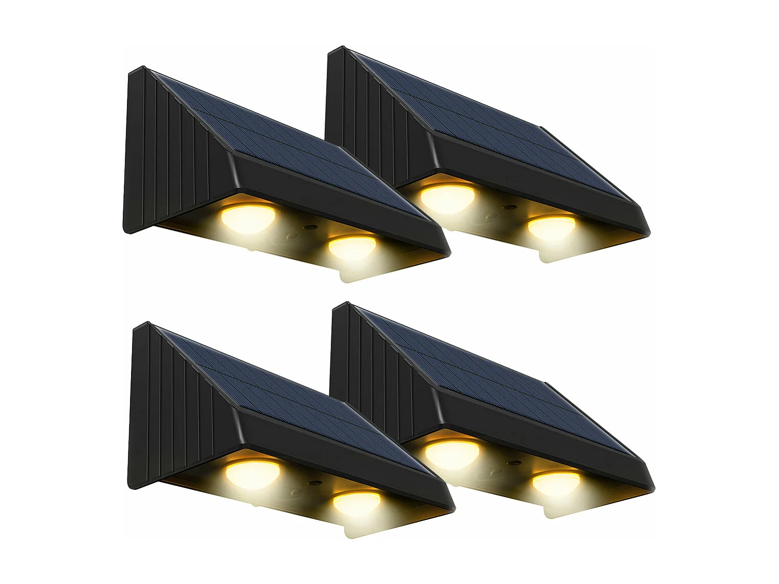 Lampes solaires d'extérieur NETTLIFE - 4 appliques murales solaires d'extérieur, éclairage extérieur, blanc chaud