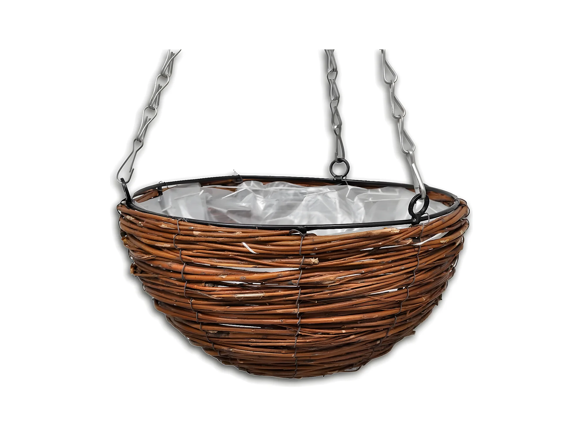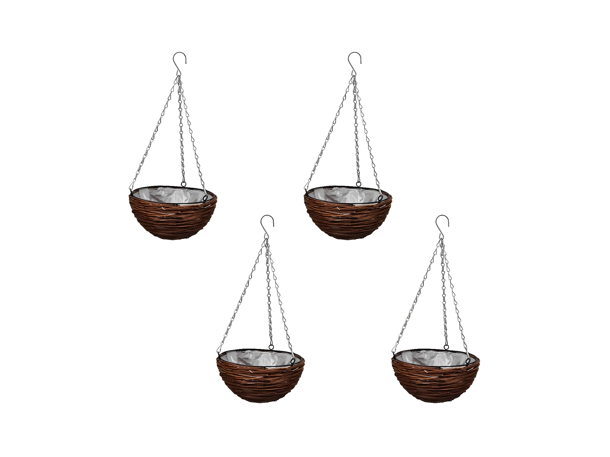 Lot de 4 Paniers Supsendus en Saule avec Fonds et Chaine Pendante